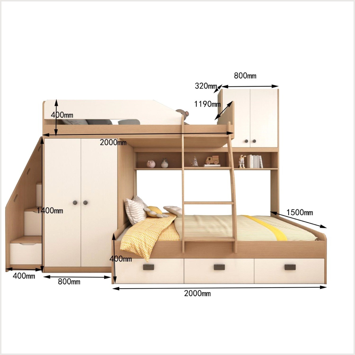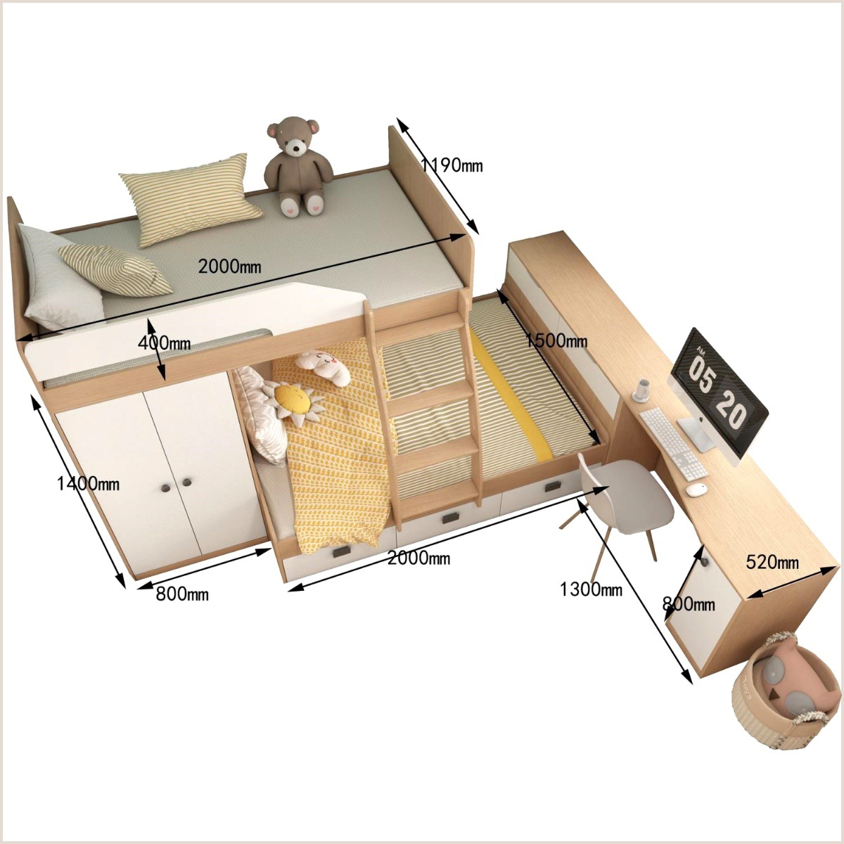 • 1.35*2.0/책상형 + 상하침대 E0등급 다층 원목판