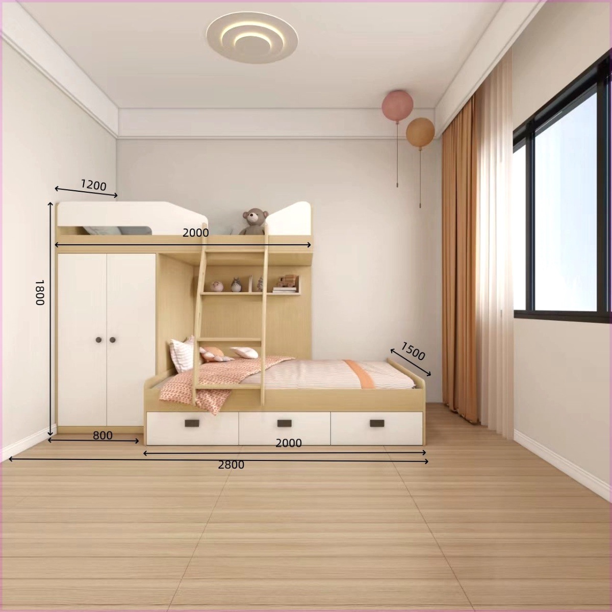 • 1.2*2.0/옷장 모델 + 상부 및 하부 침대 E0 등급 다층 원목 보드