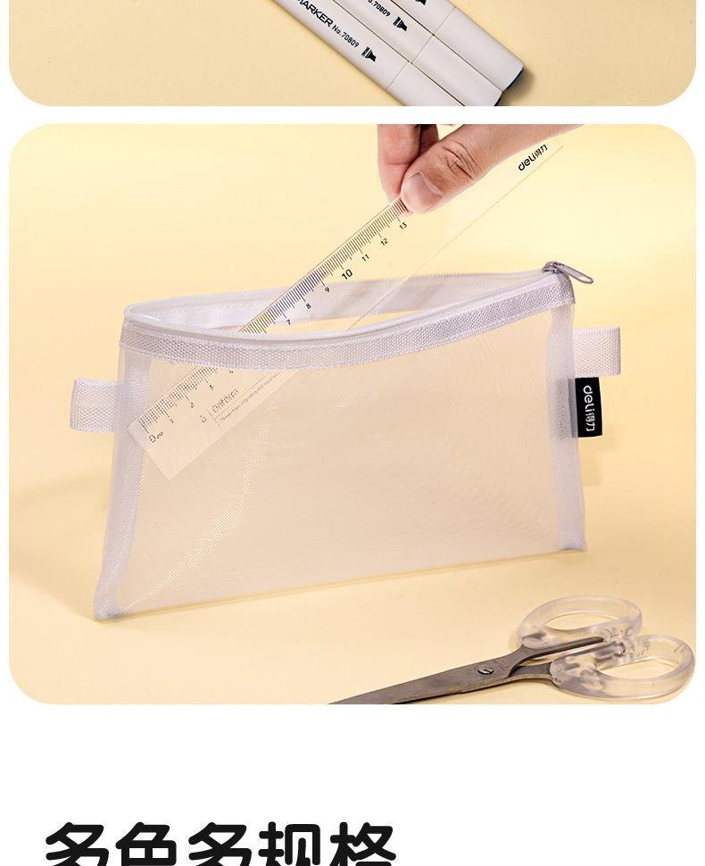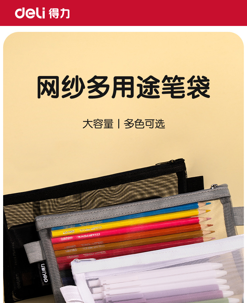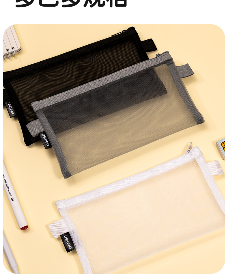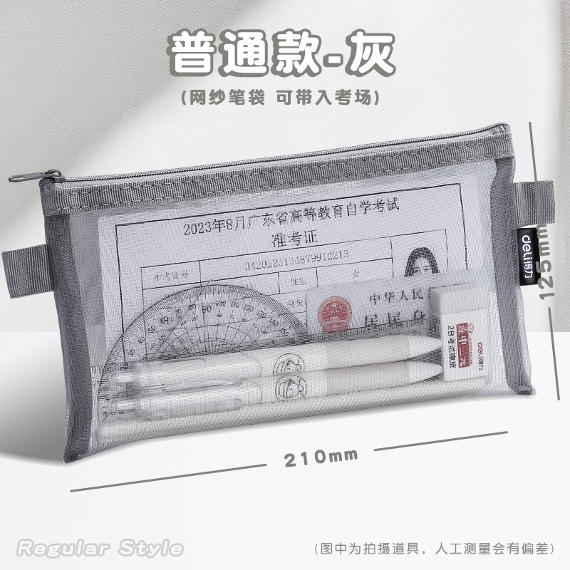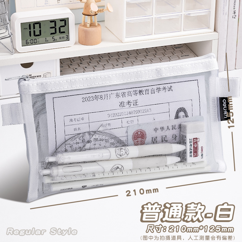 델리 연필 가방 투명 메쉬 학생 시험 특수 문구 가방 초등학교 연필 가방 중학교 고등학교 학생 대용량