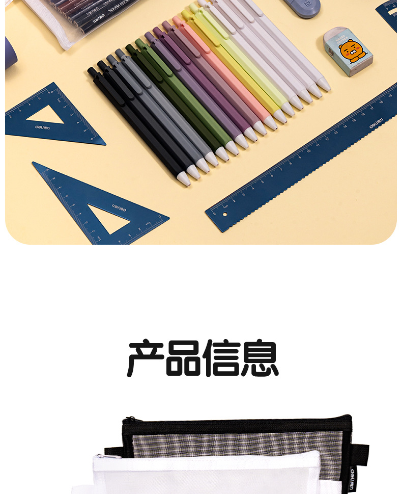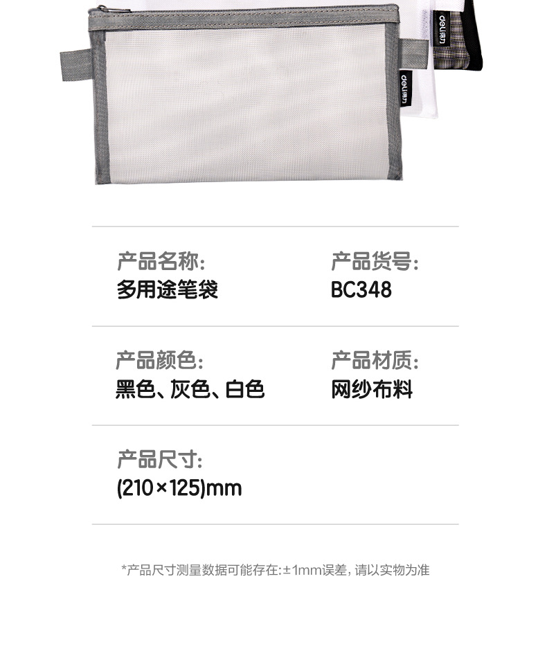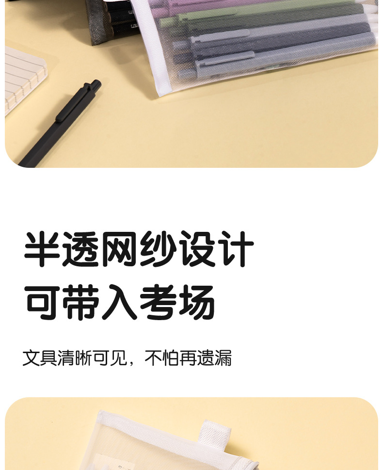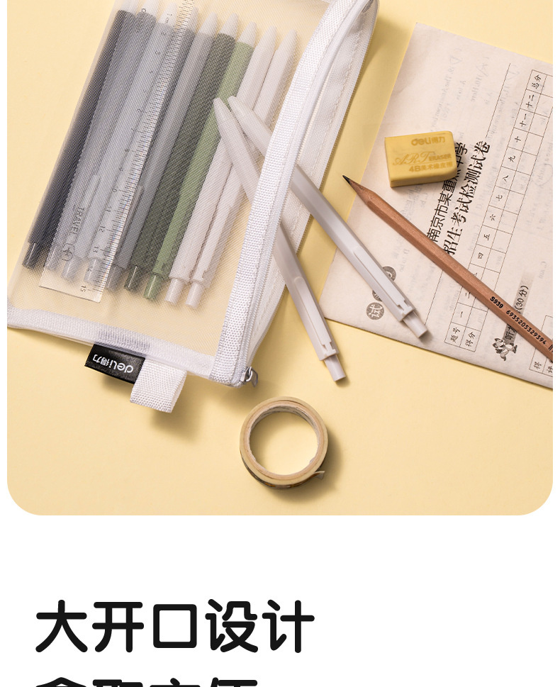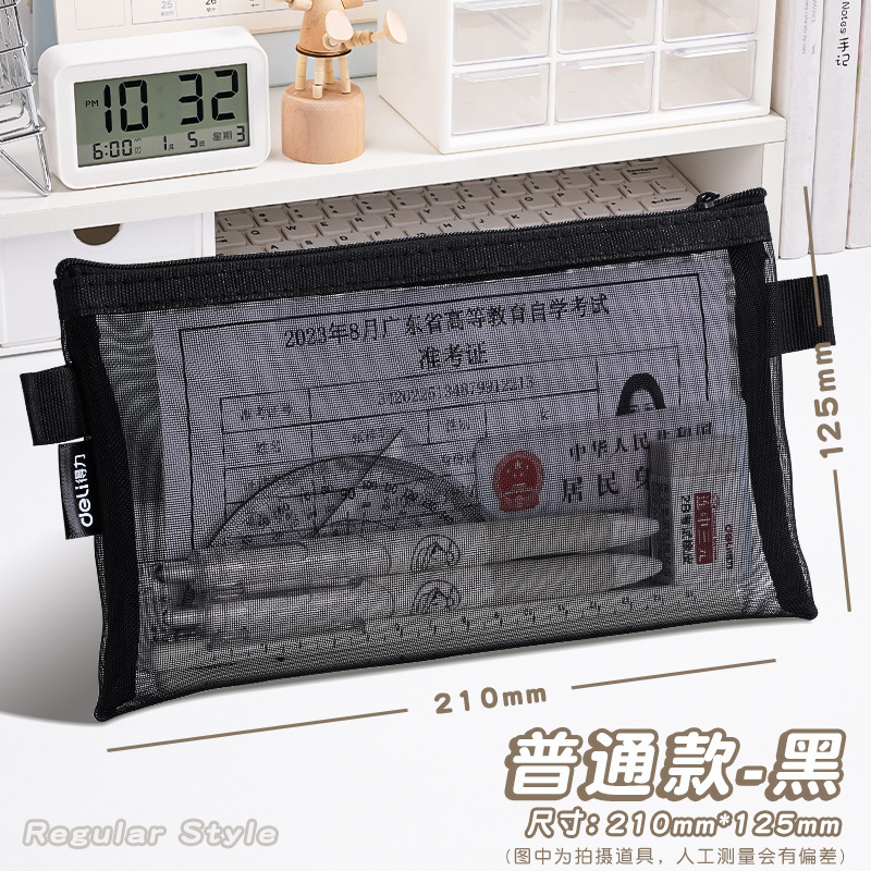 델리 연필 가방 투명 메쉬 학생 시험 특수 문구 가방 초등학교 연필 가방 중학교 고등학교 학생 대용량