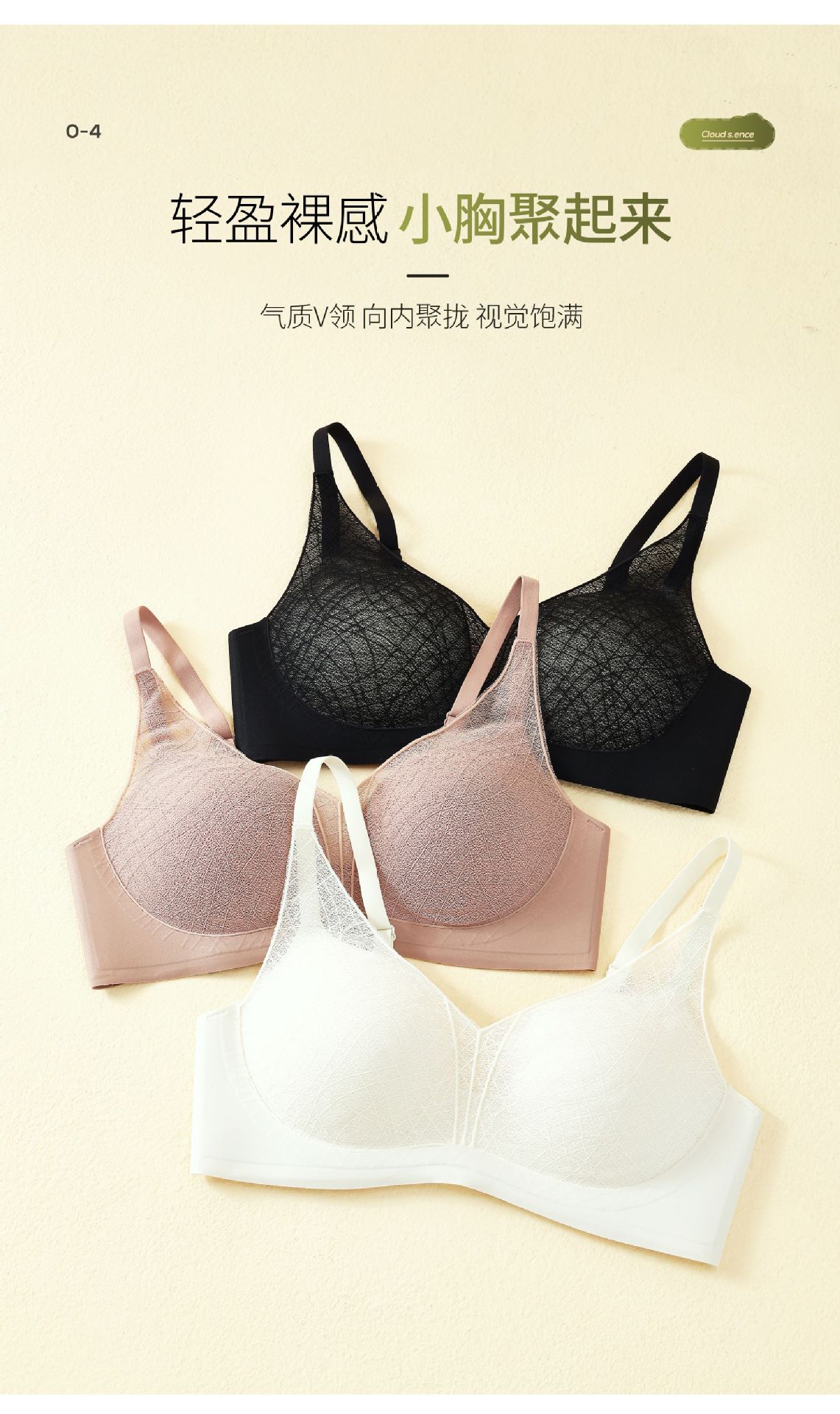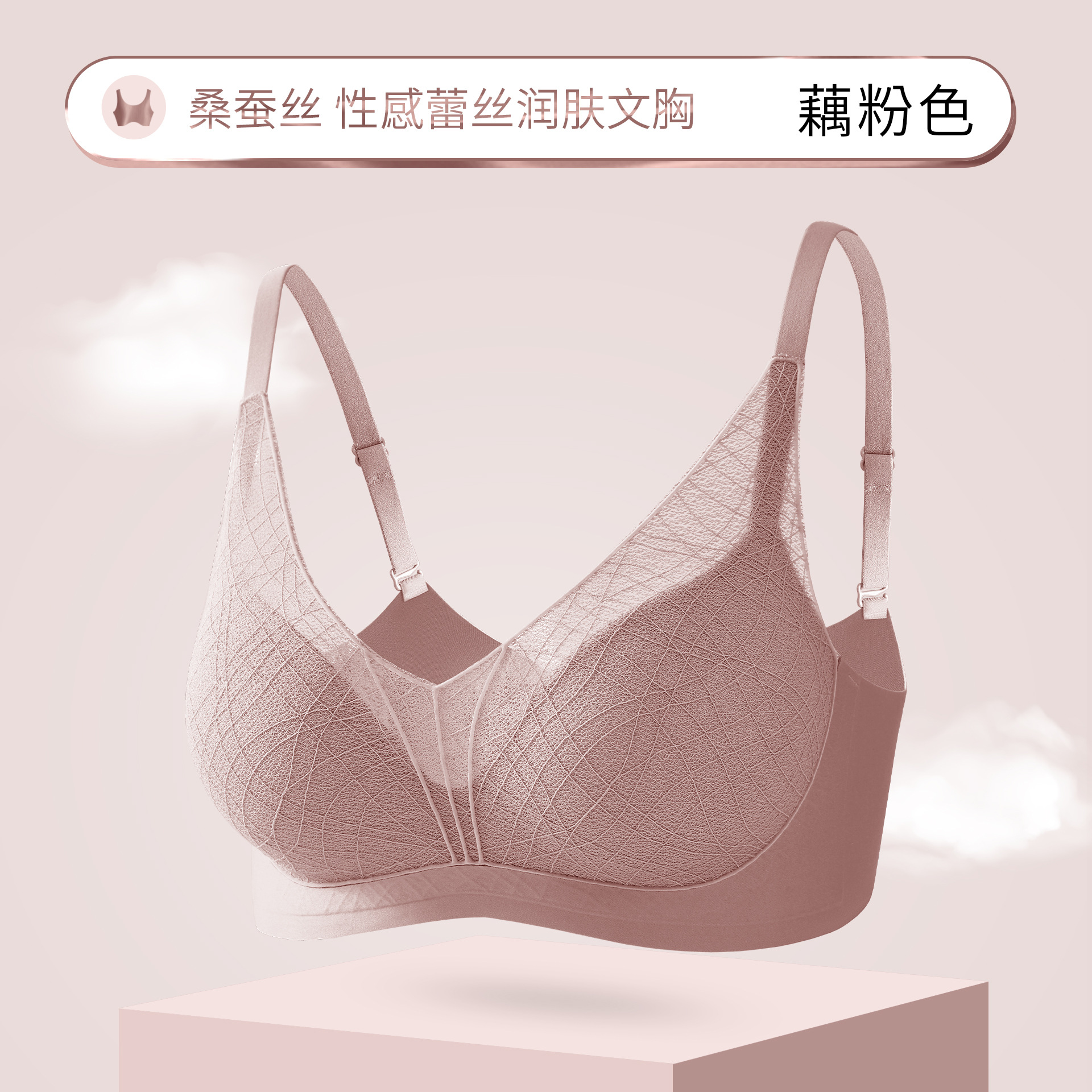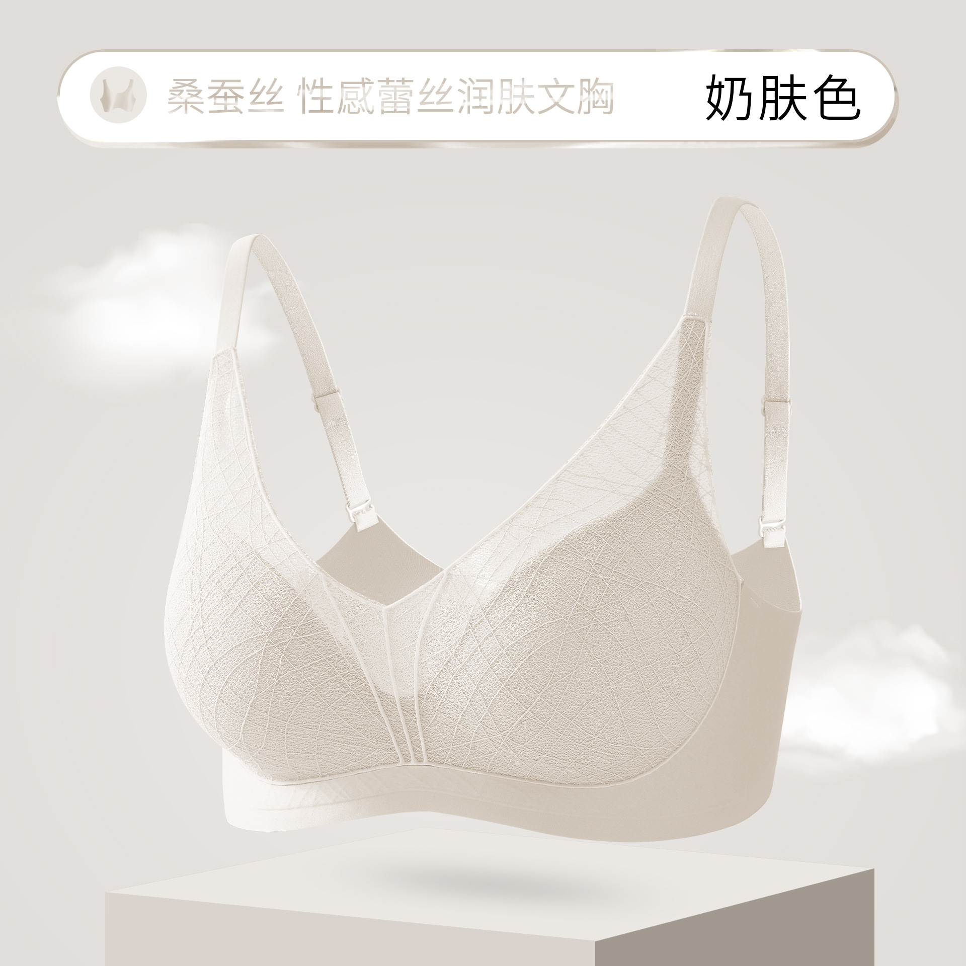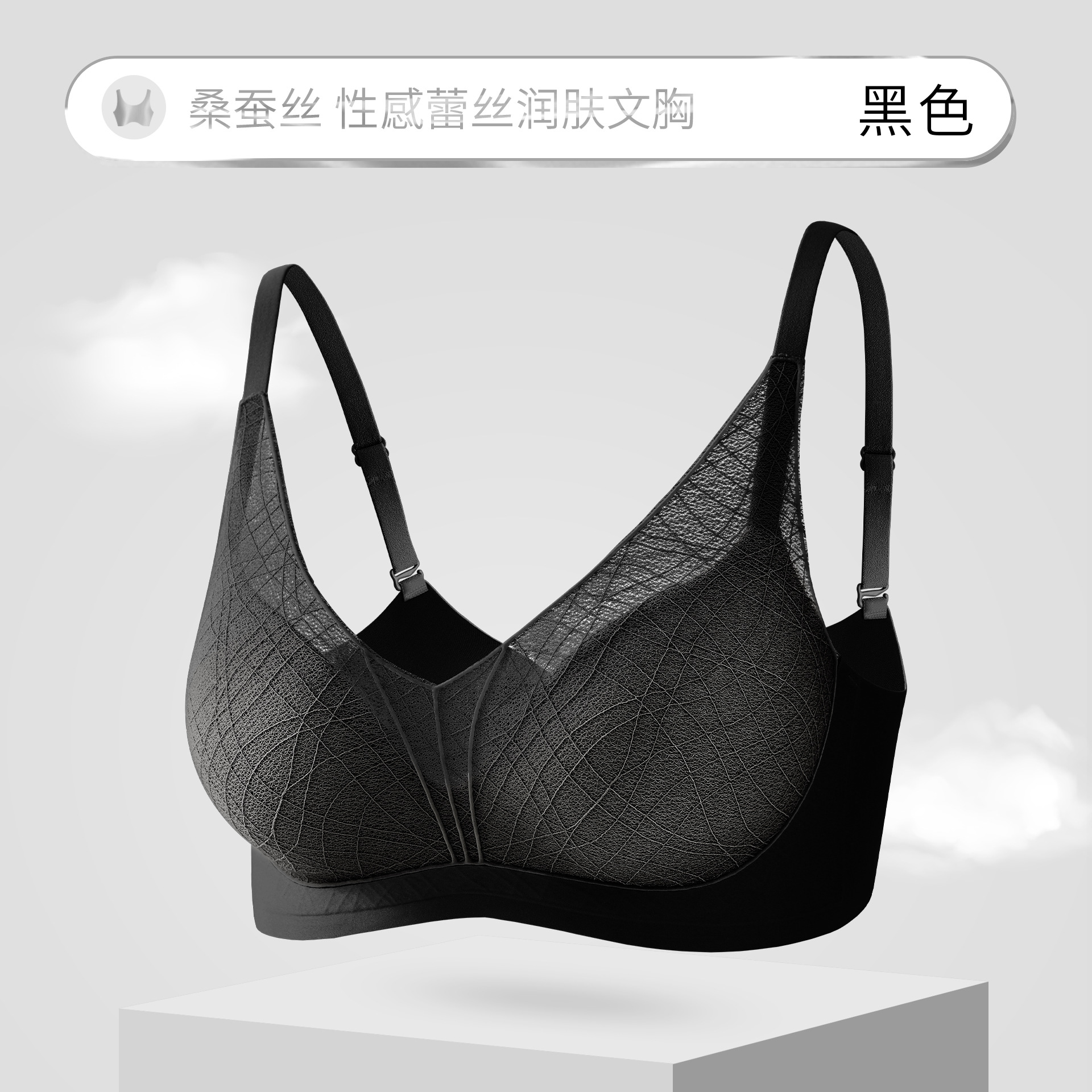 性感蕾丝镂空深V内衣桑蚕丝润肤聚拢显大上薄下厚AB杯女文胸罩