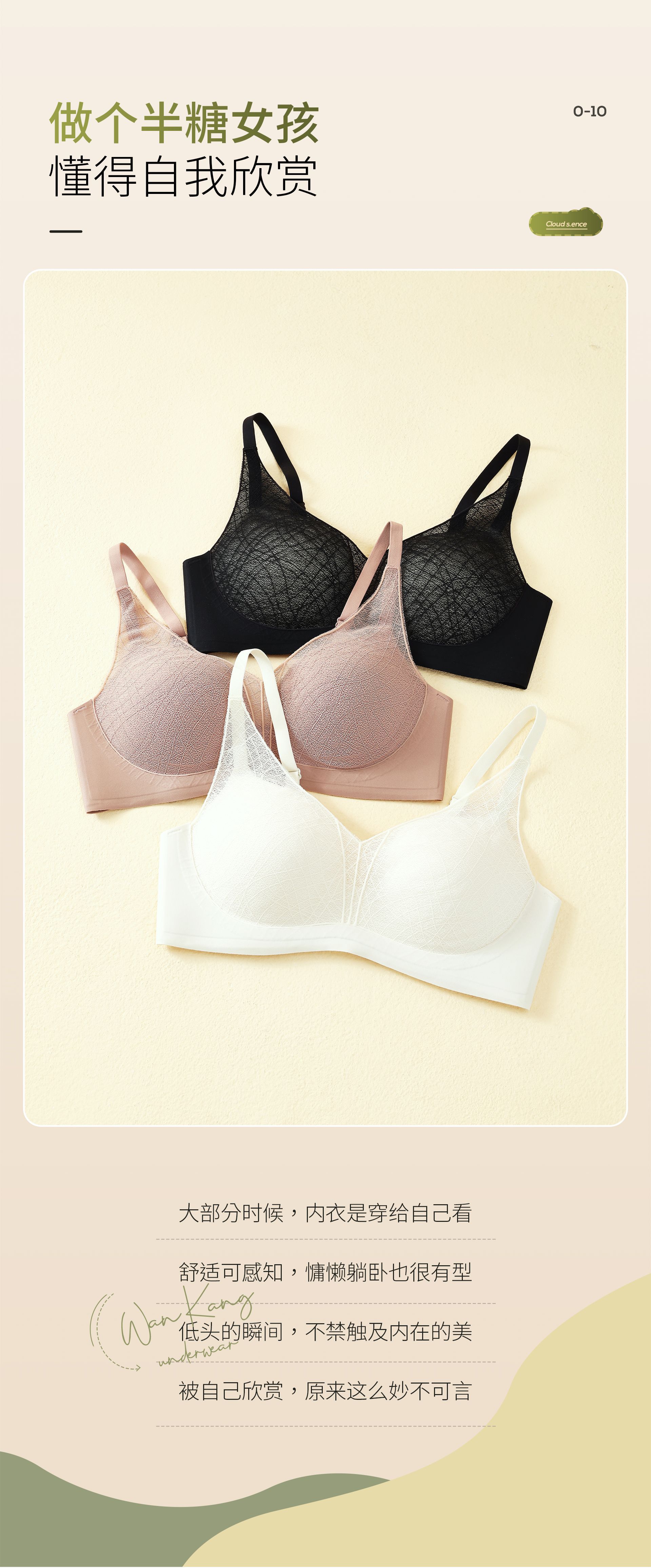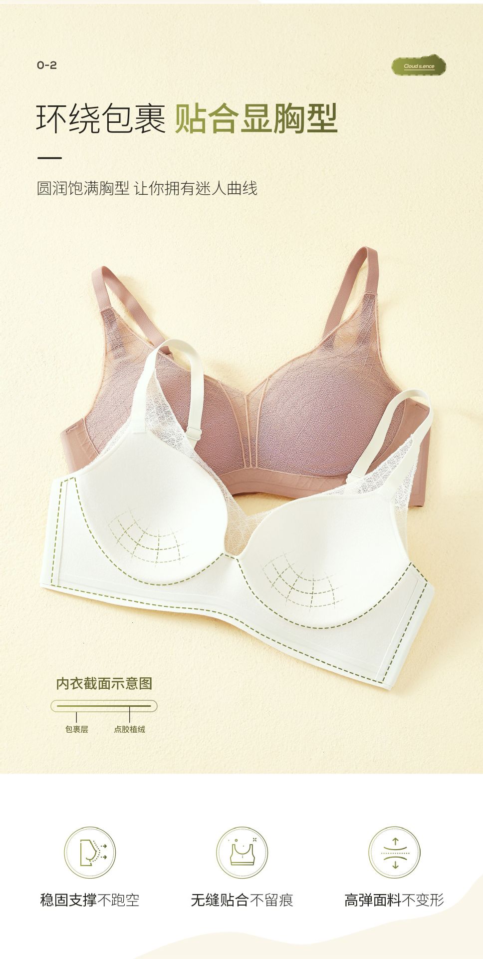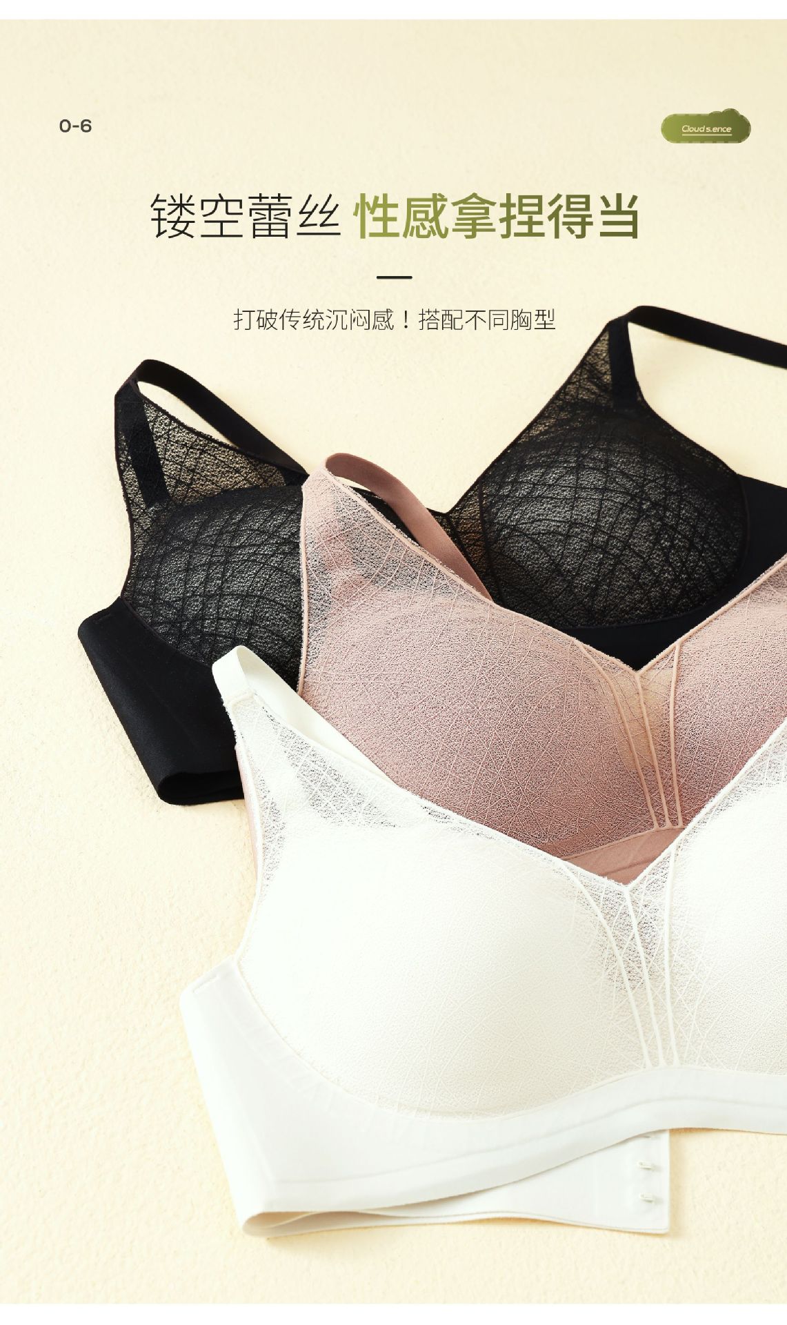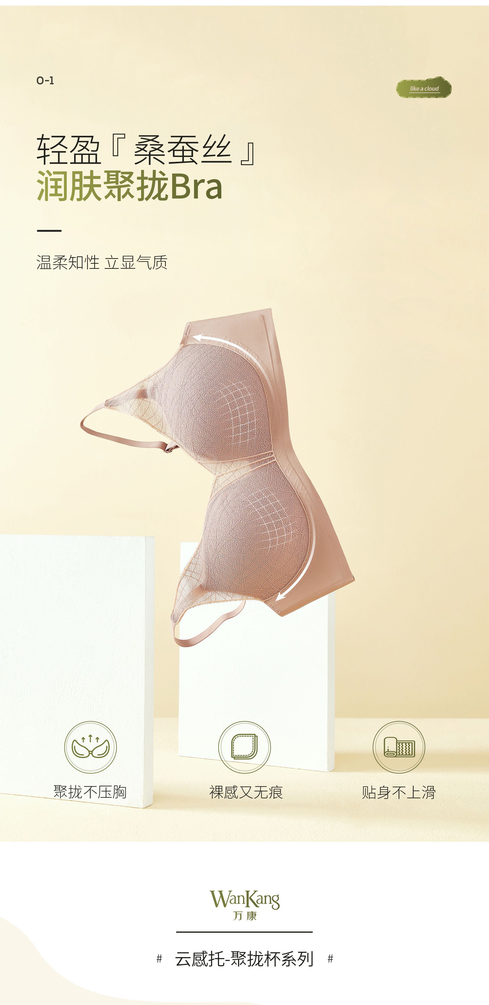 性感蕾丝镂空深V内衣桑蚕丝润肤聚拢显大上薄下厚AB杯女文胸罩