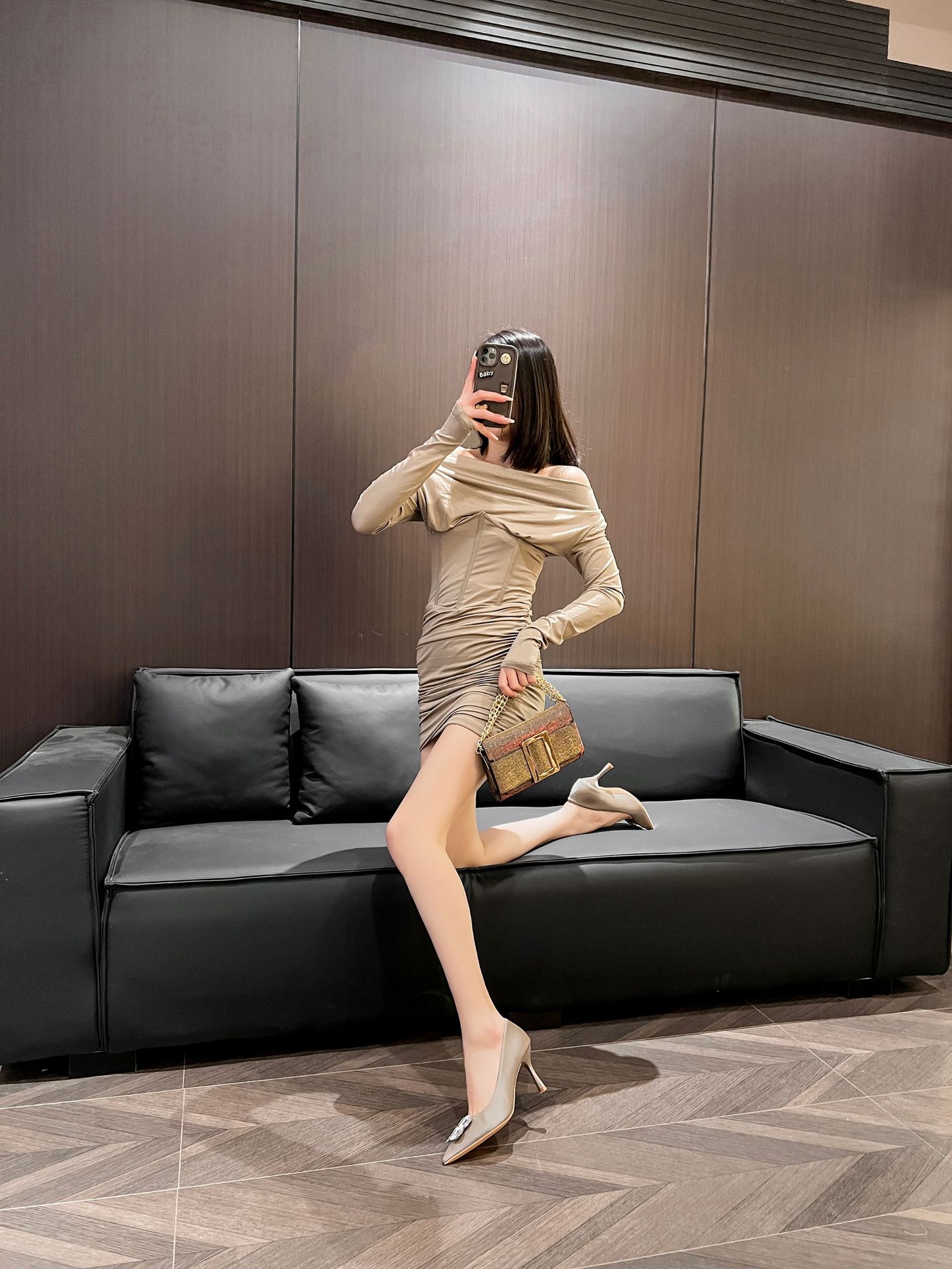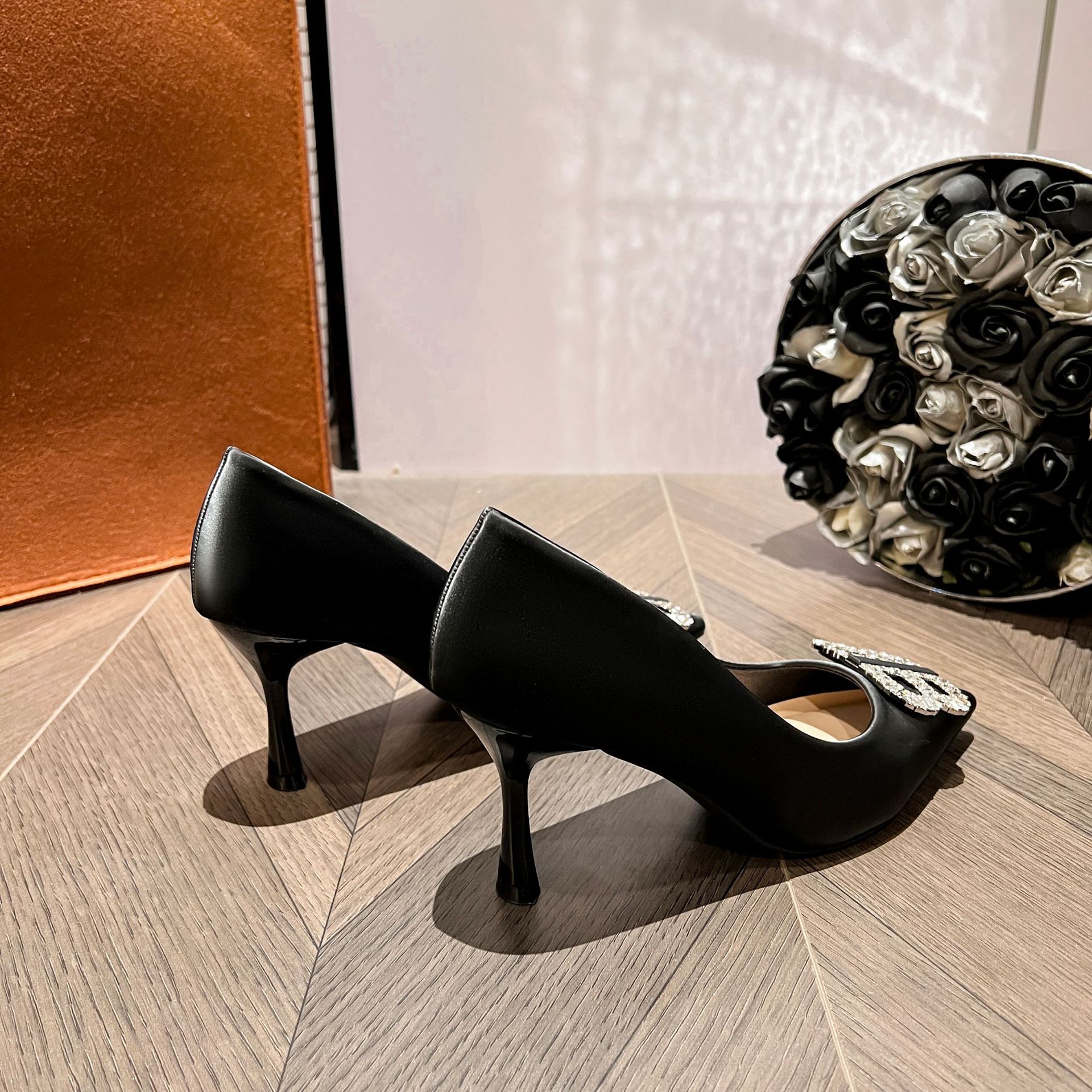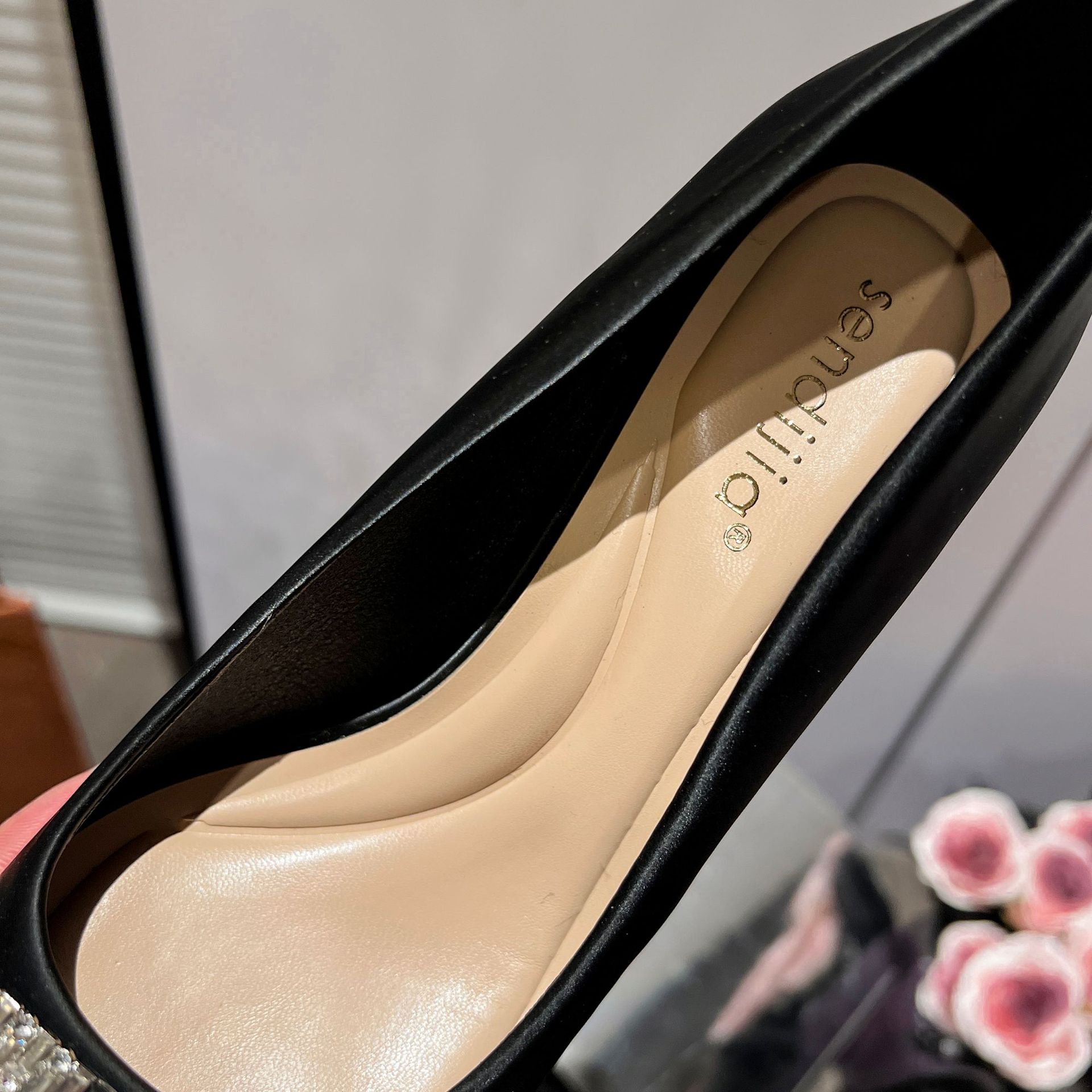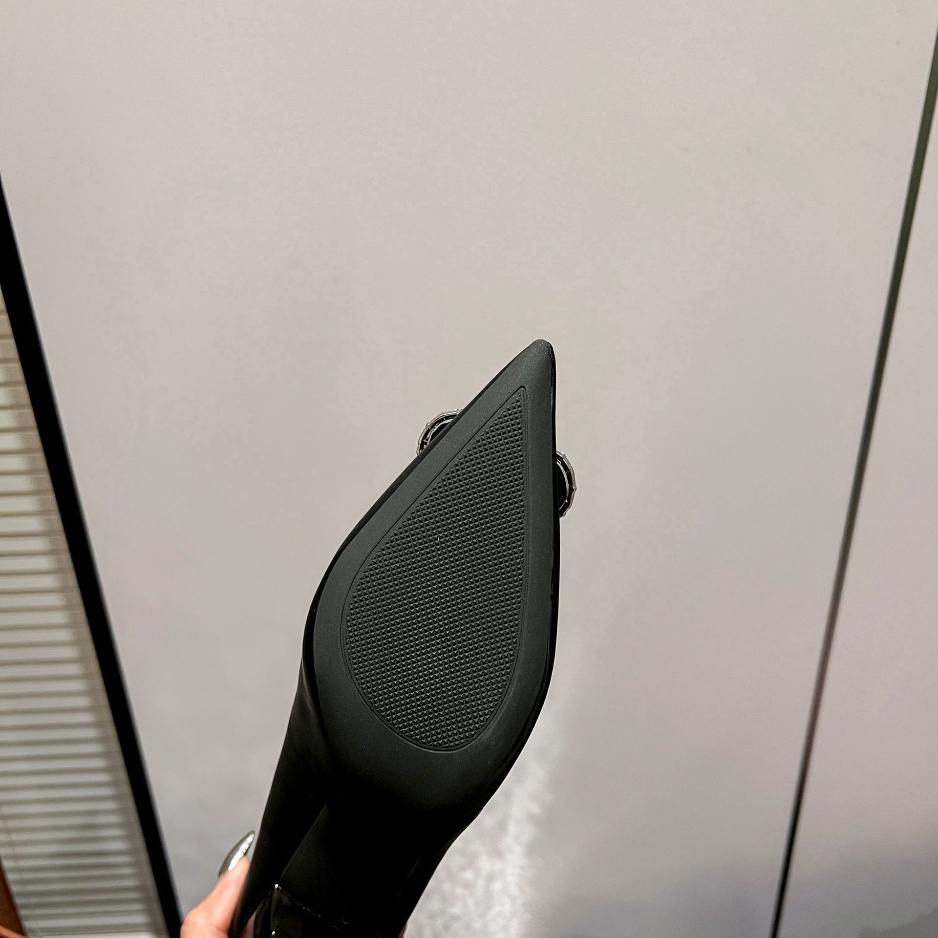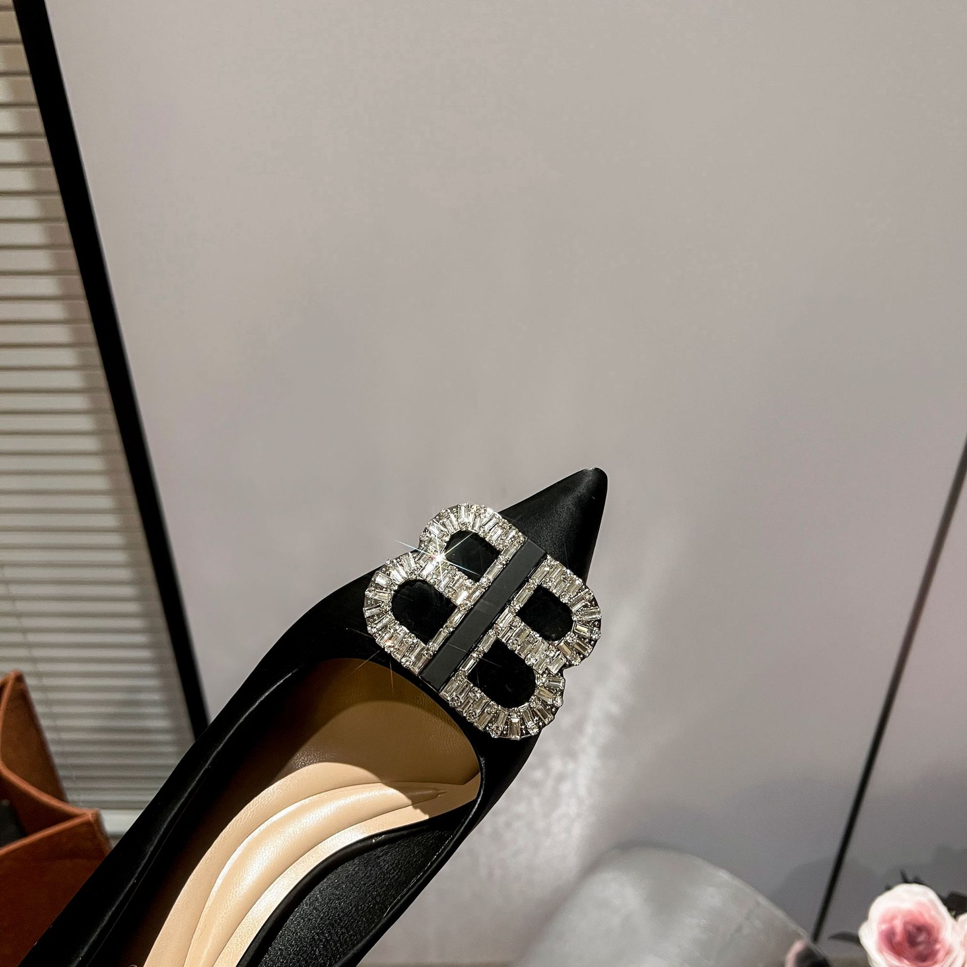 A555-22 하이힐 슈즈 여성용 2024 새로운 통근 스타일 빛나는 다이아몬드 버튼 스몰 힐 올매치 우아한 포인팅 슈즈스토어 가기