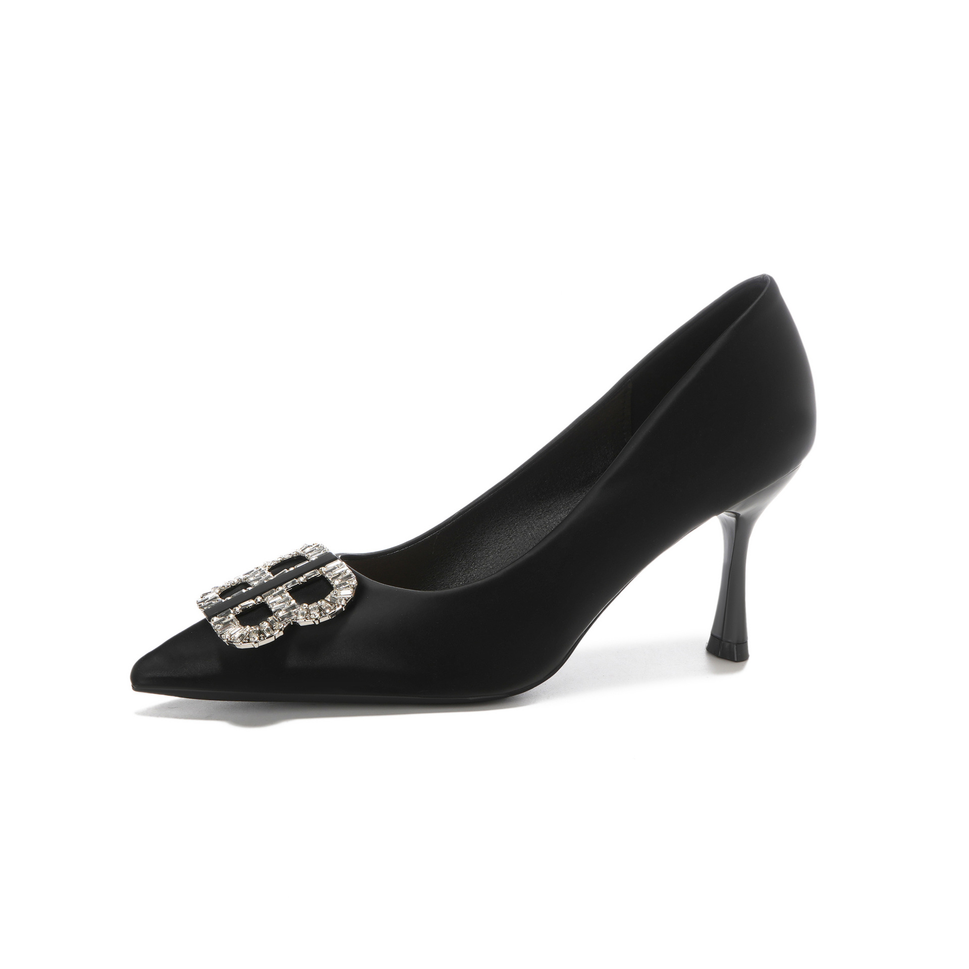 A555-22 하이힐 슈즈 여성용 2024 새로운 통근 스타일 빛나는 다이아몬드 버튼 스몰 힐 올매치 우아한 포인팅 슈즈