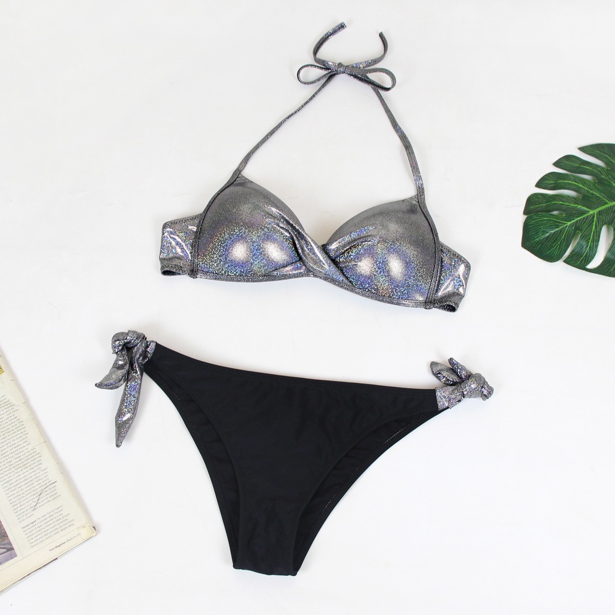 2024 새로운 유럽과 미국의 섹시한 스플릿 여성의 비키니 수영복 금박 하드 가방 수집 비키니 수영복 도매스토어 가기
