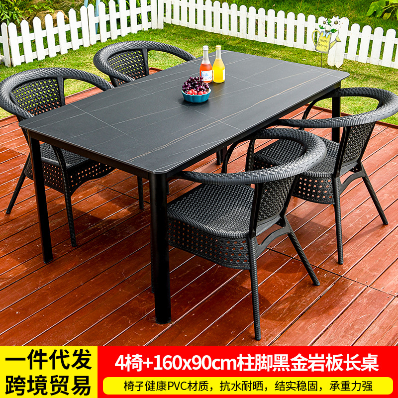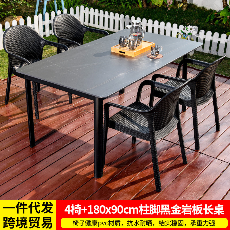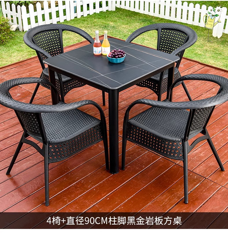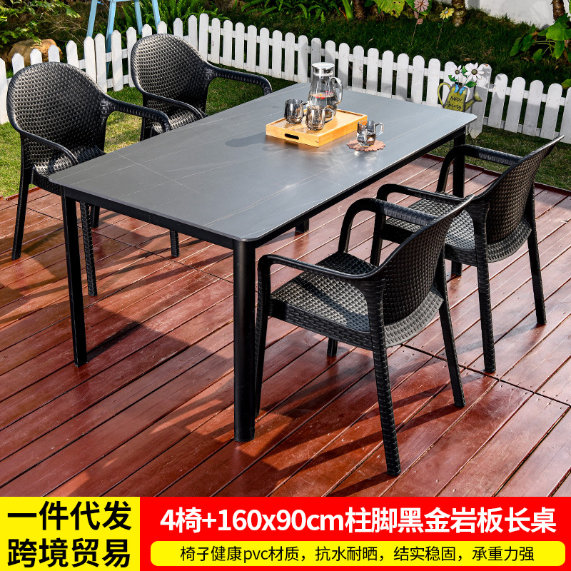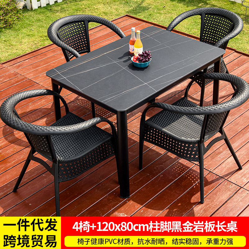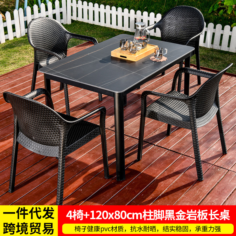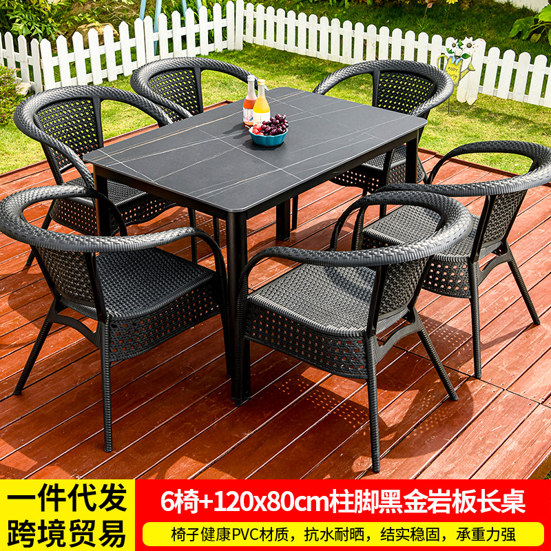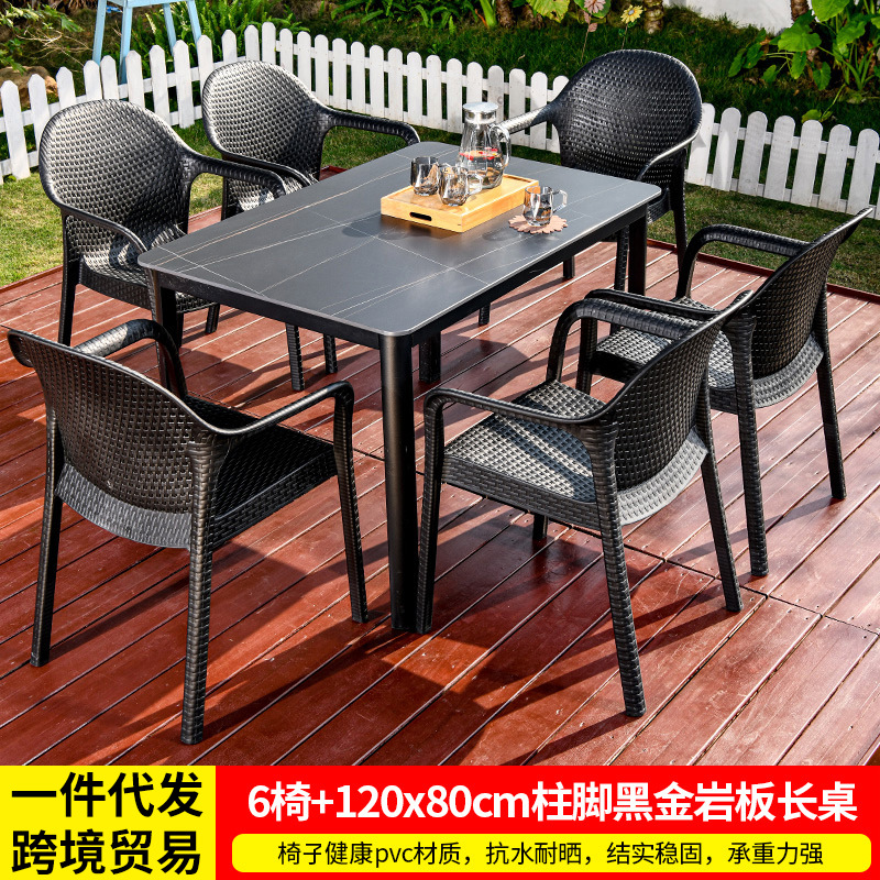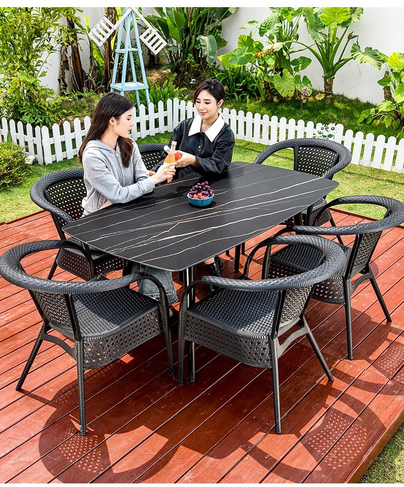 야외 테이블 및 의자 안뜰 바위 접시 식탁 제조 업체 야외 레저 긴 테이블 모조 등나무 의자 테라스 안뜰 테이블 및 의자 조합스토어 가기