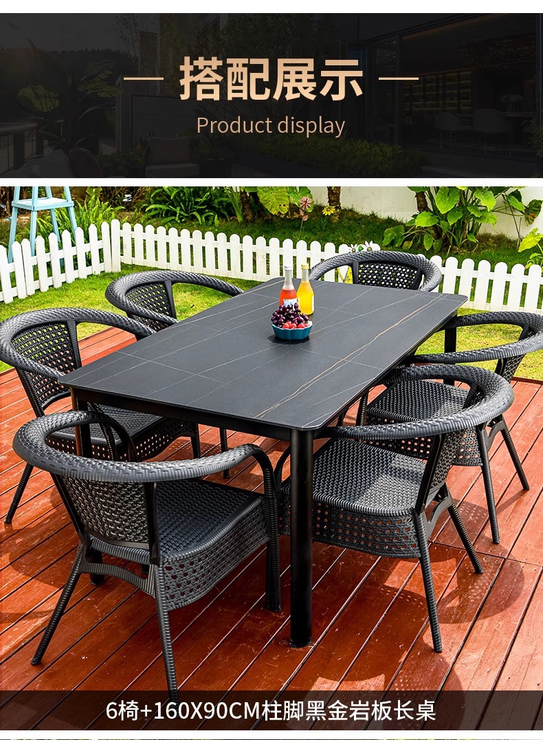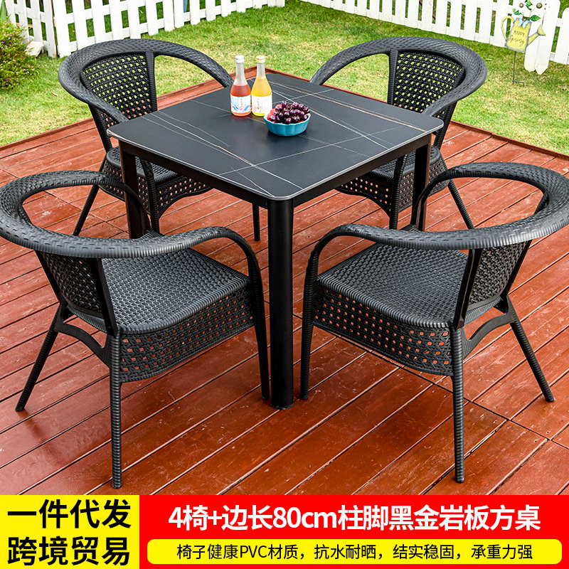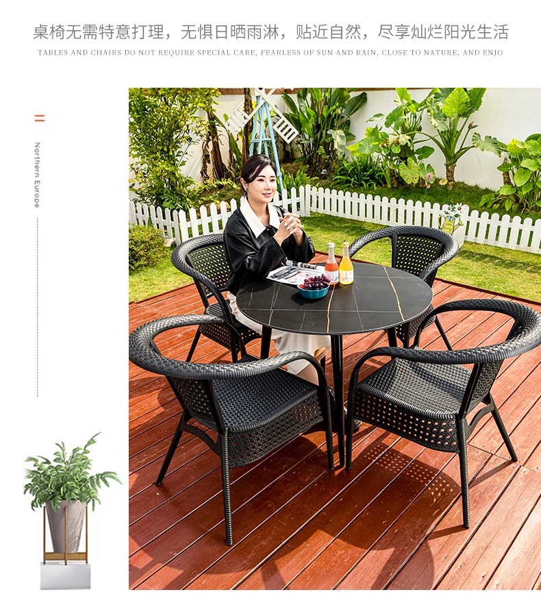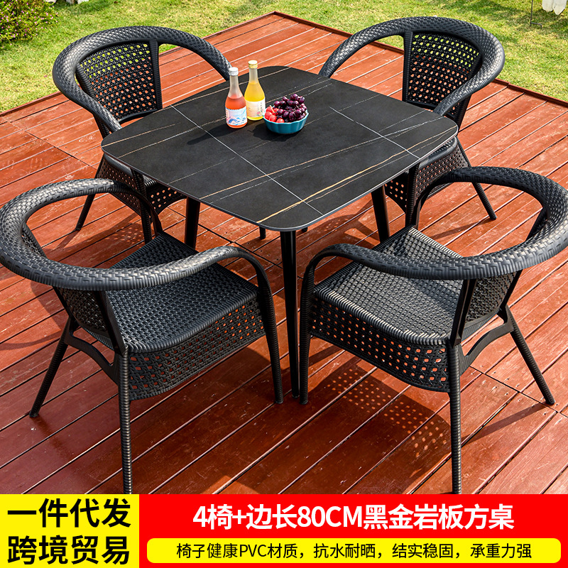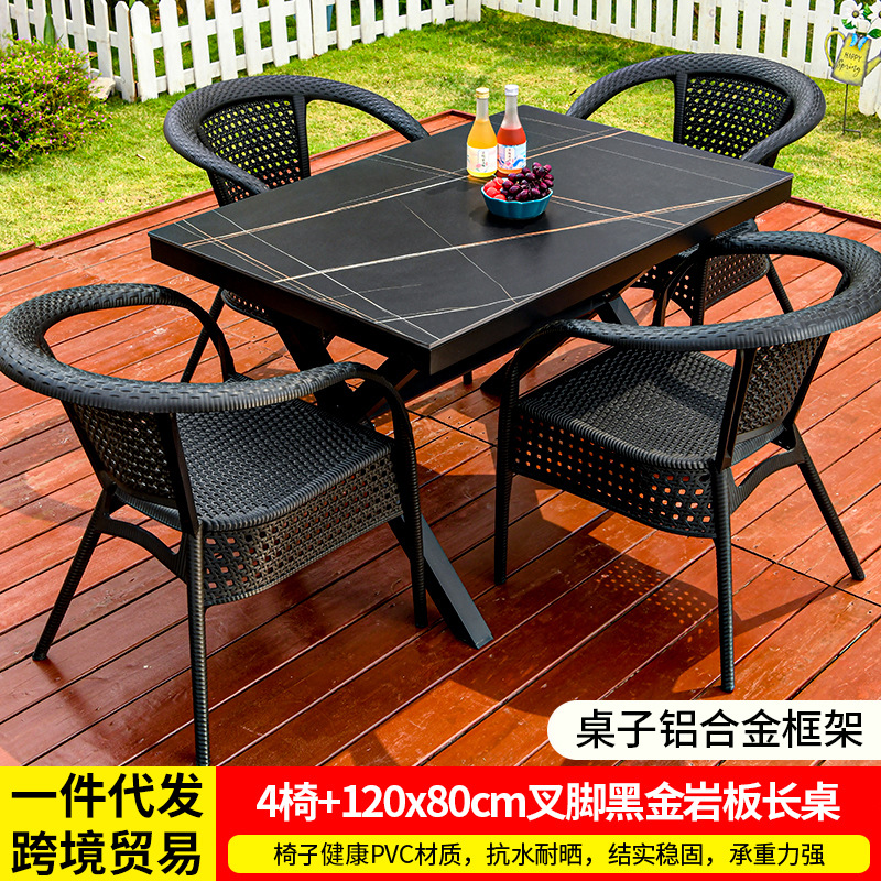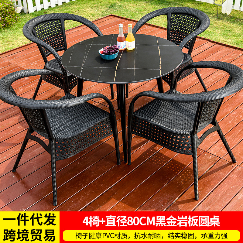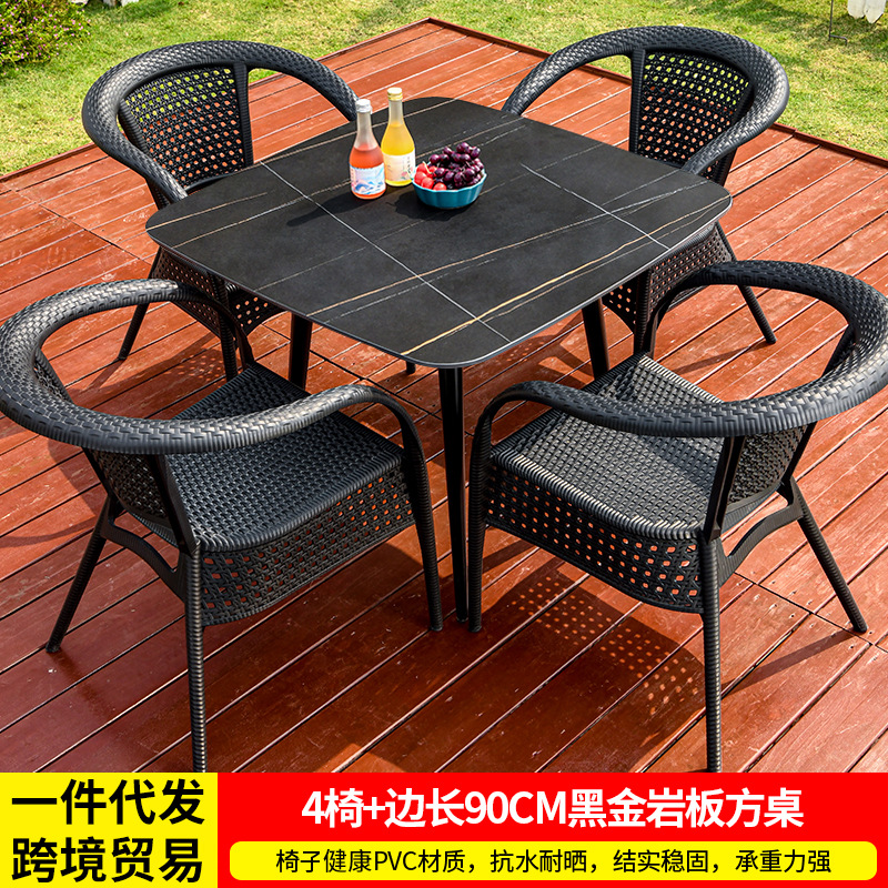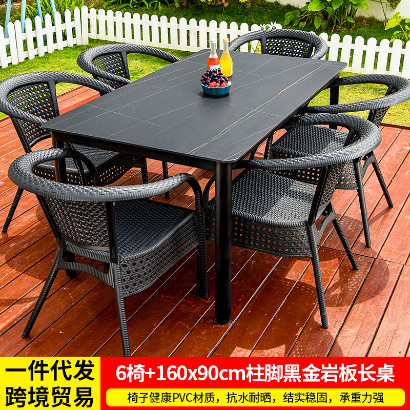 야외 테이블 및 의자 안뜰 바위 접시 식탁 제조 업체 야외 레저 긴 테이블 모조 등나무 의자 테라스 안뜰 테이블 및 의자 조합스토어 가기