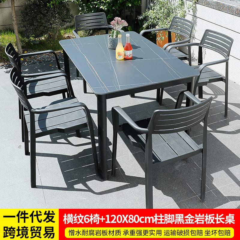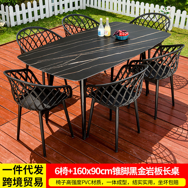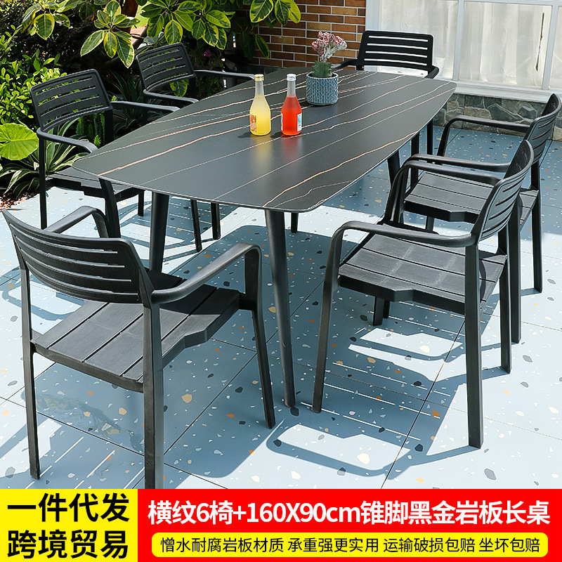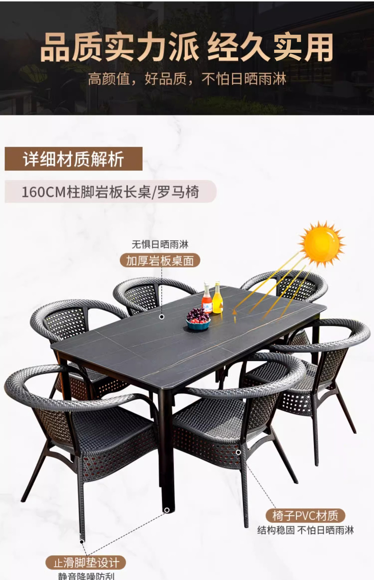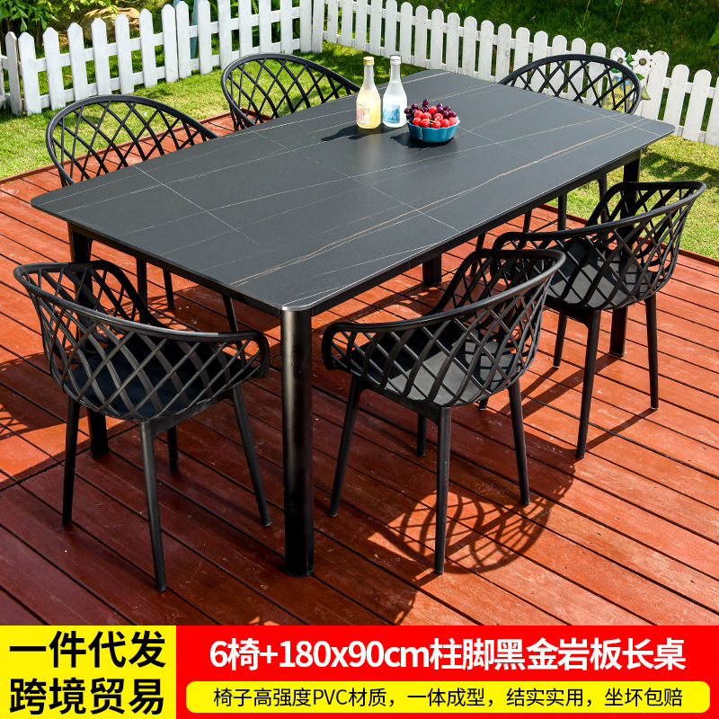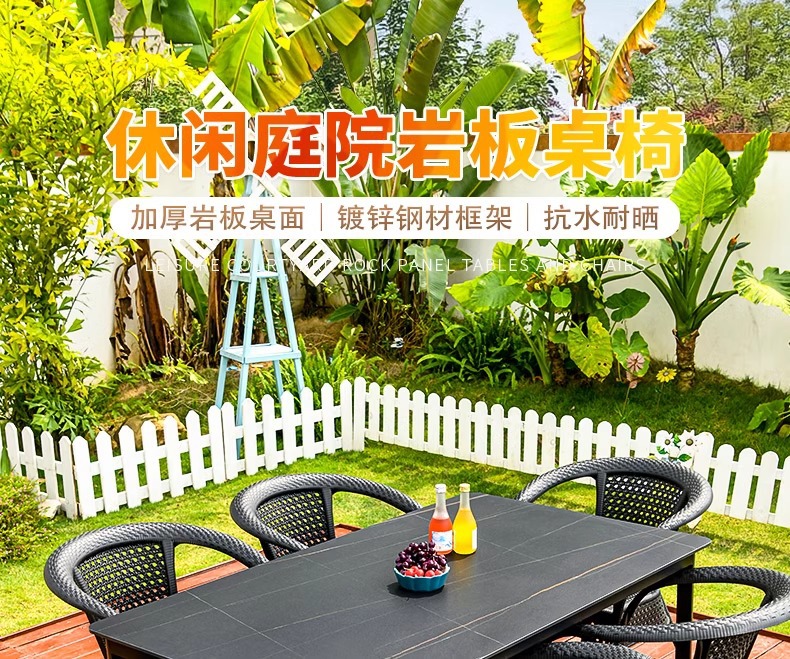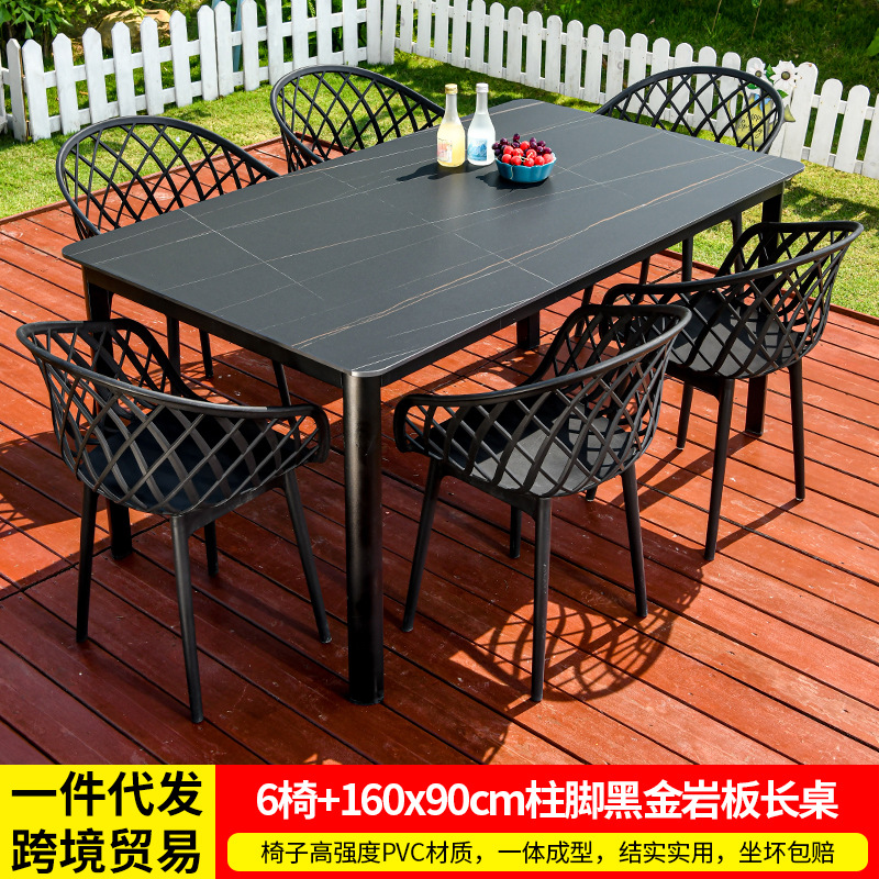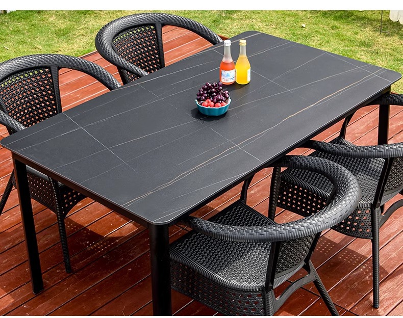 야외 테이블 및 의자 안뜰 바위 접시 식탁 제조 업체 야외 레저 긴 테이블 모조 등나무 의자 테라스 안뜰 테이블 및 의자 조합스토어 가기