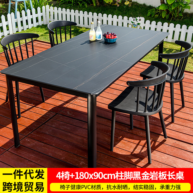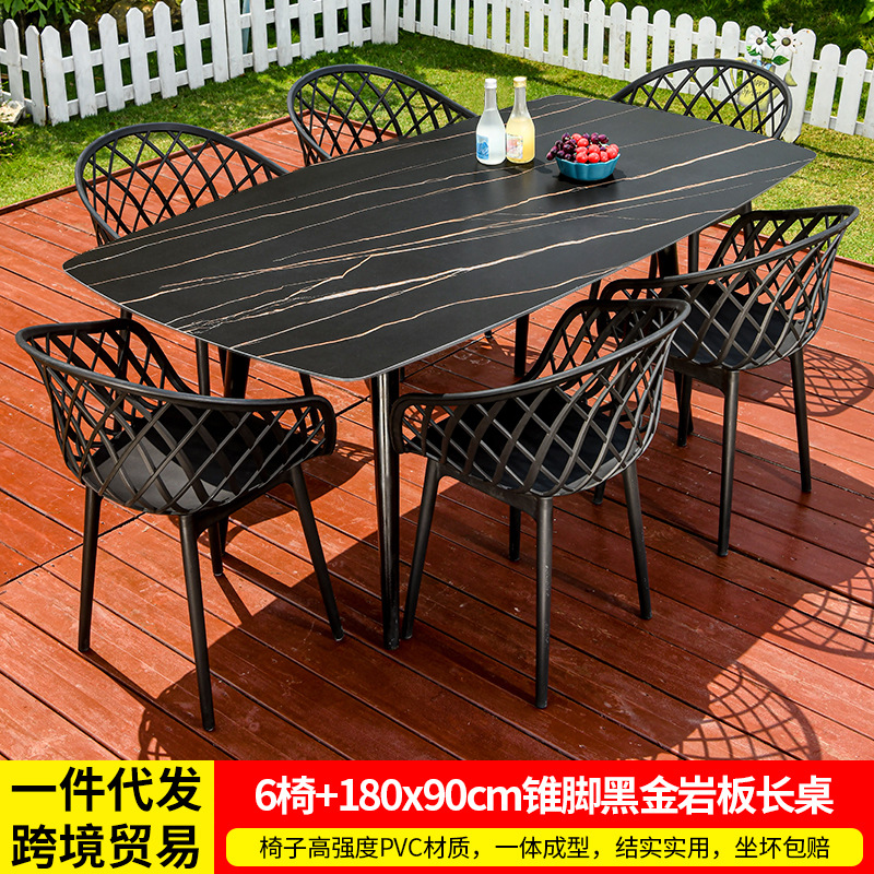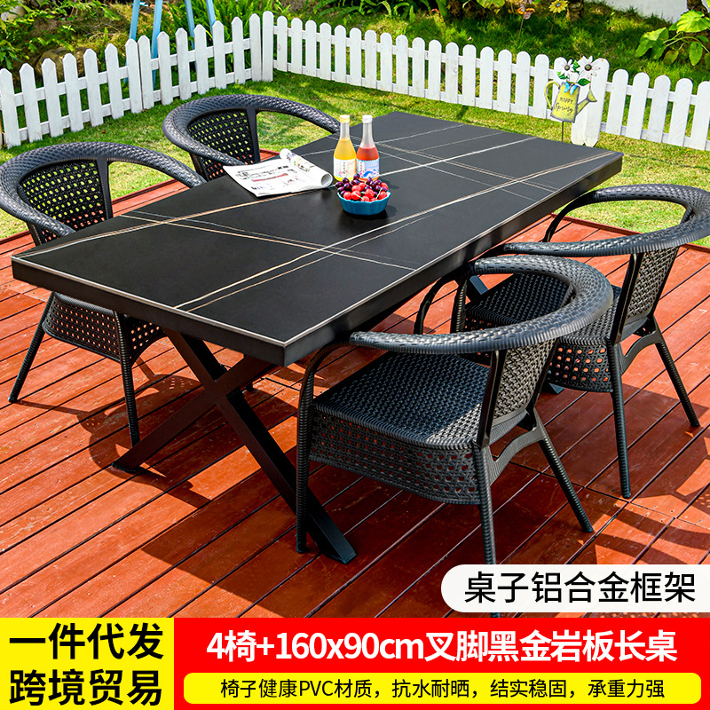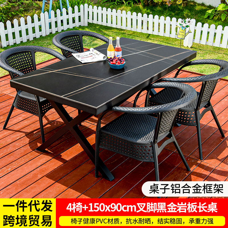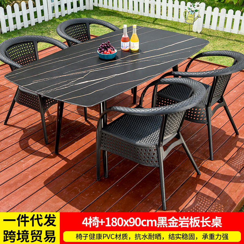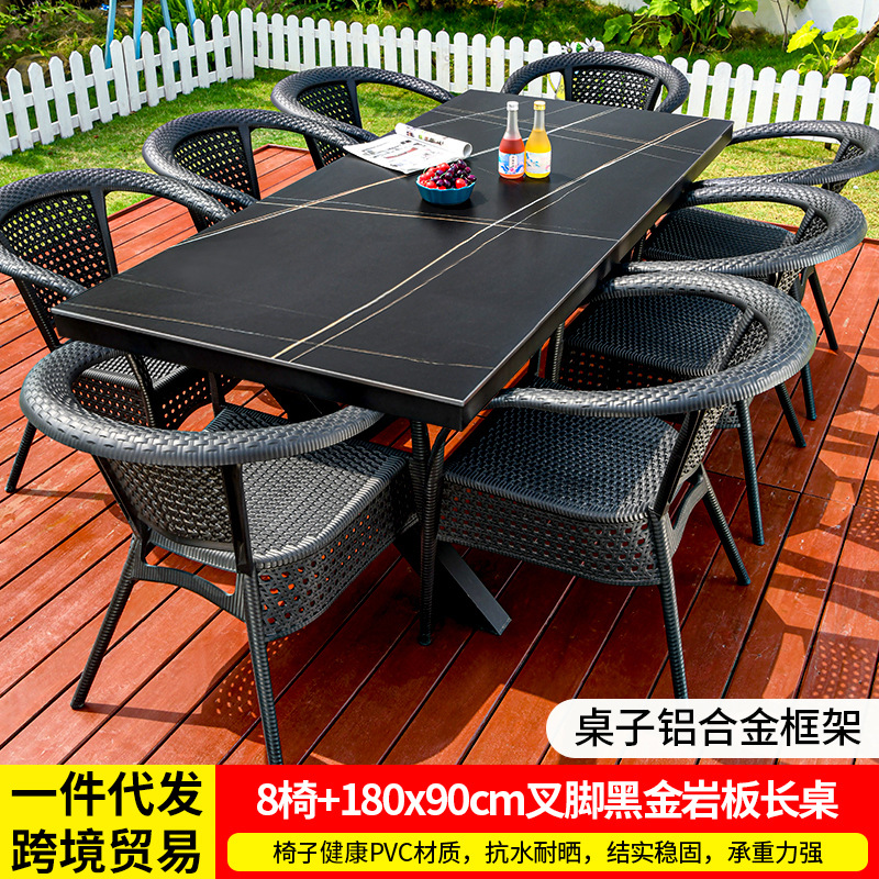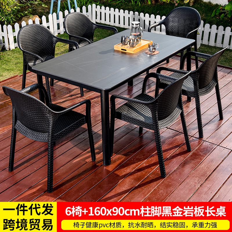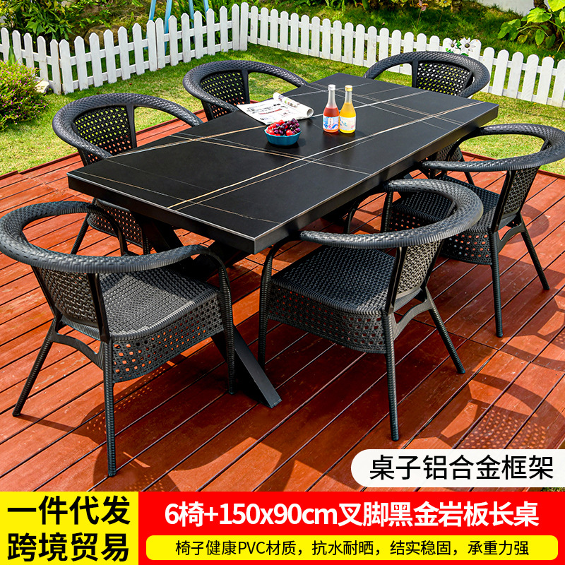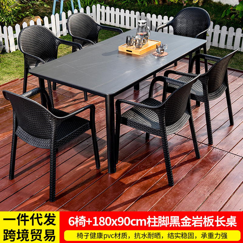 야외 테이블 및 의자 안뜰 바위 접시 식탁 제조 업체 야외 레저 긴 테이블 모조 등나무 의자 테라스 안뜰 테이블 및 의자 조합