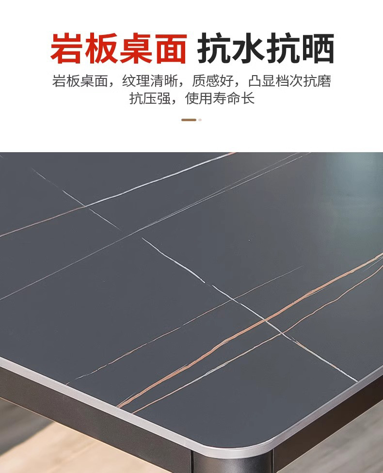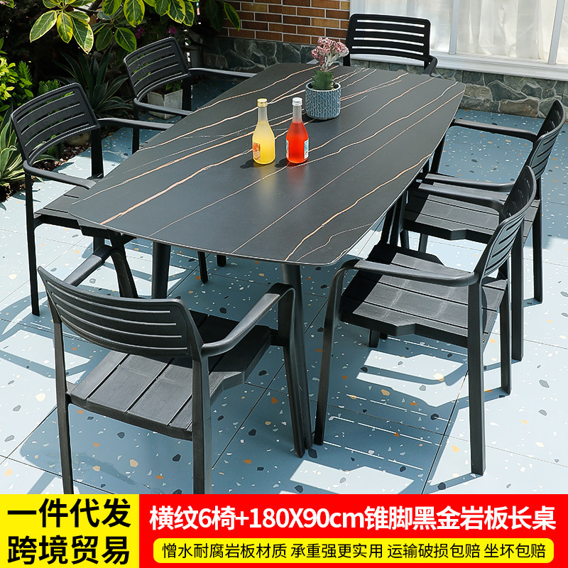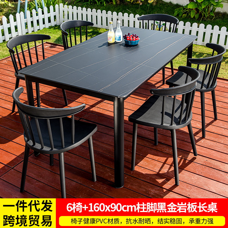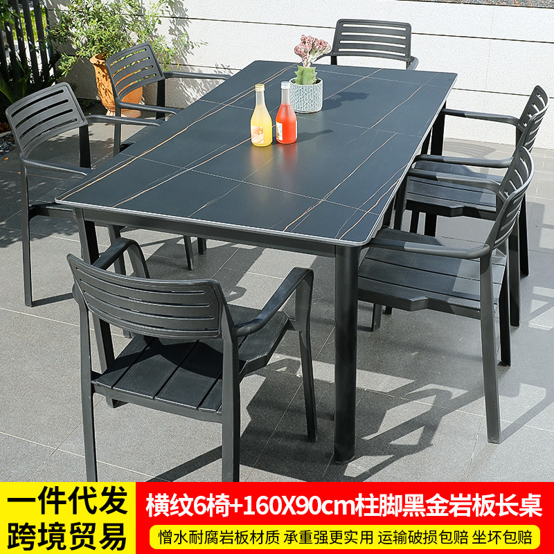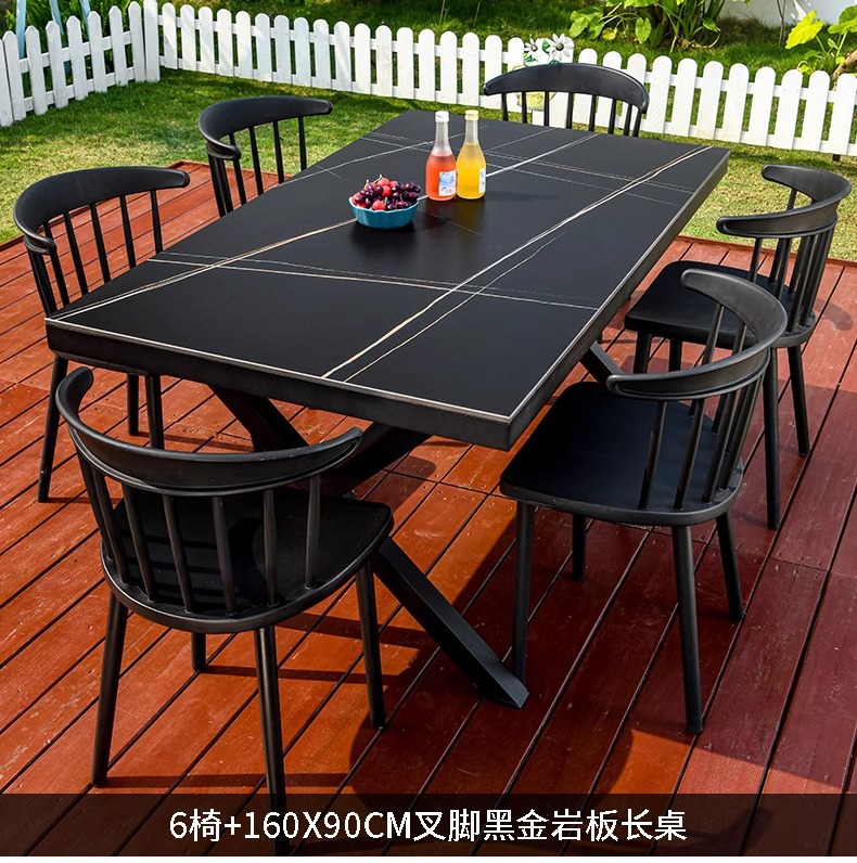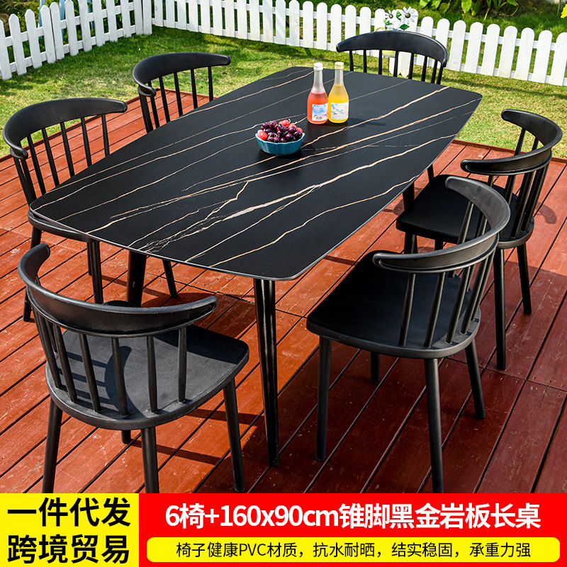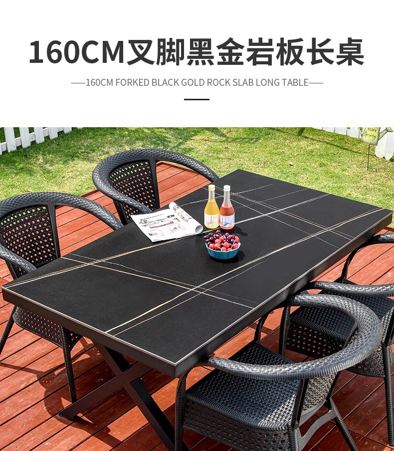 • 로마 의자 6개 + 150x90cm 포크 다리 블랙 골드 슬레이트 롱 테이블