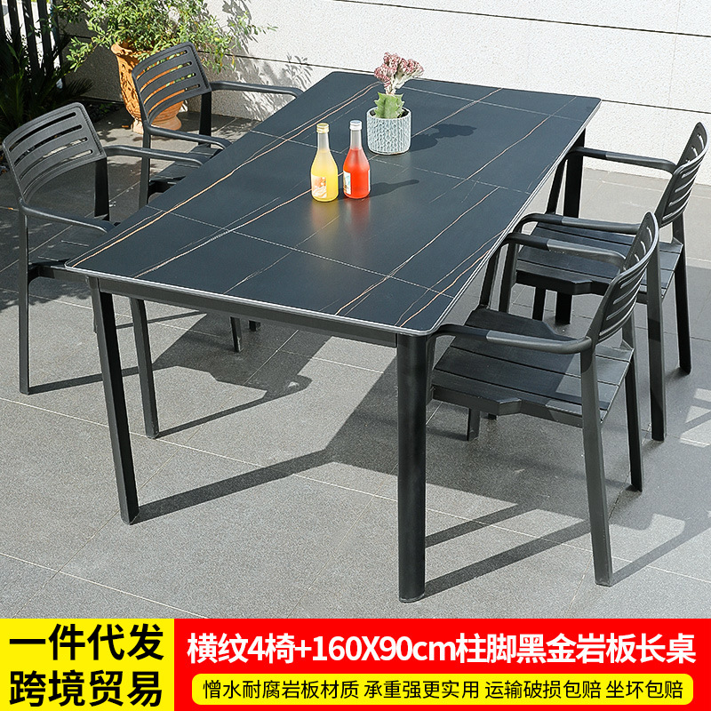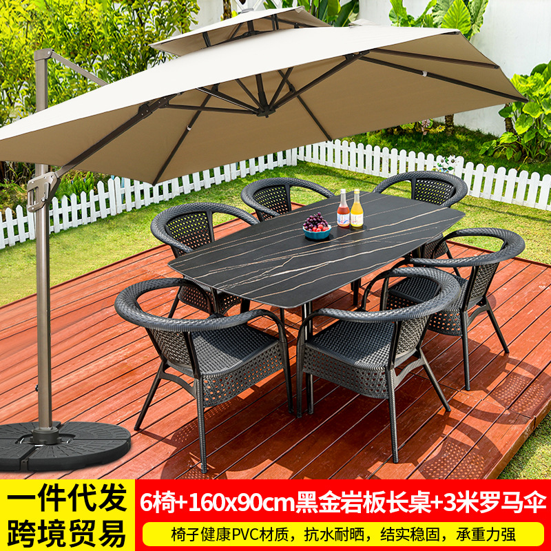 • 로마의자 6개의 의자 + 160x90cm 블랙 골드 슬레이트 긴 테이블 + 3m 로마 우산