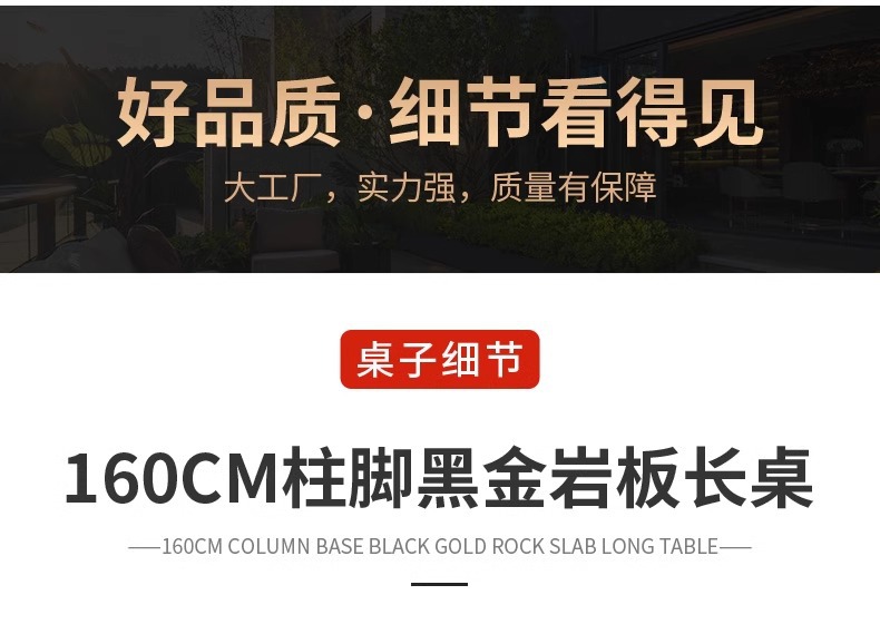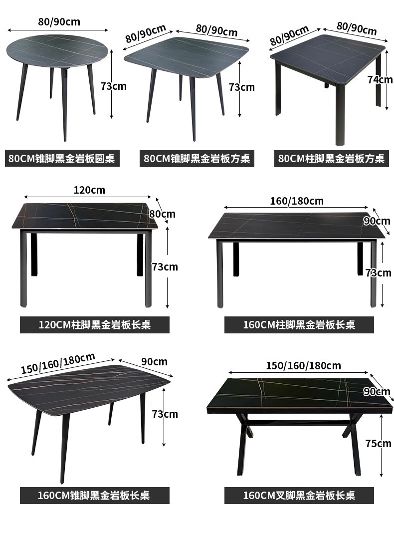 • 로마 의자 6개 + 160x90cm 기둥 다리 블랙 골드 슬레이트 긴 테이블
