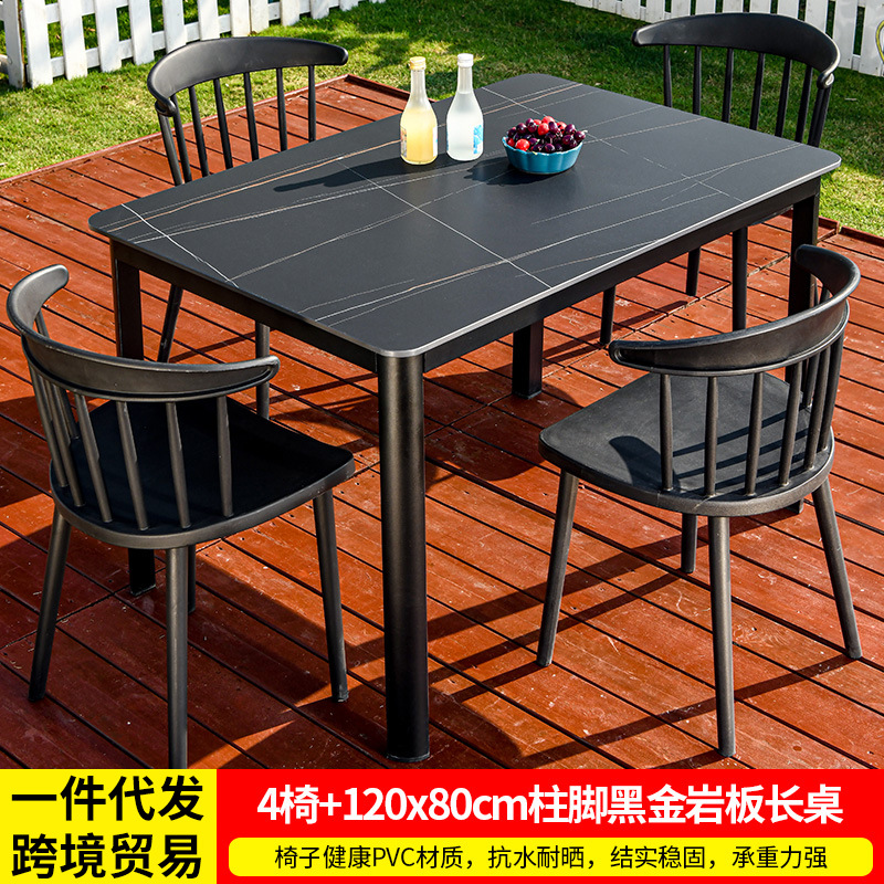 • 로마 의자 4개 + 120x80cm 포크 다리 블랙 골드 슬레이트 롱 테이블