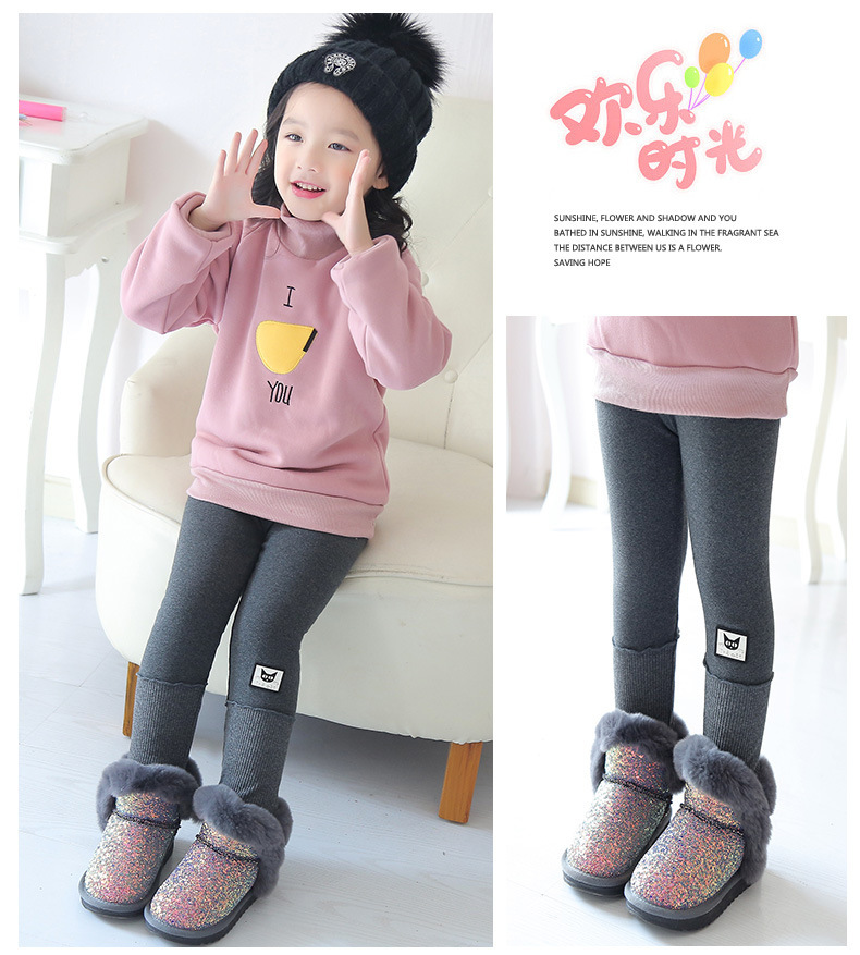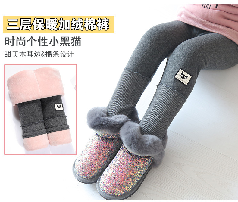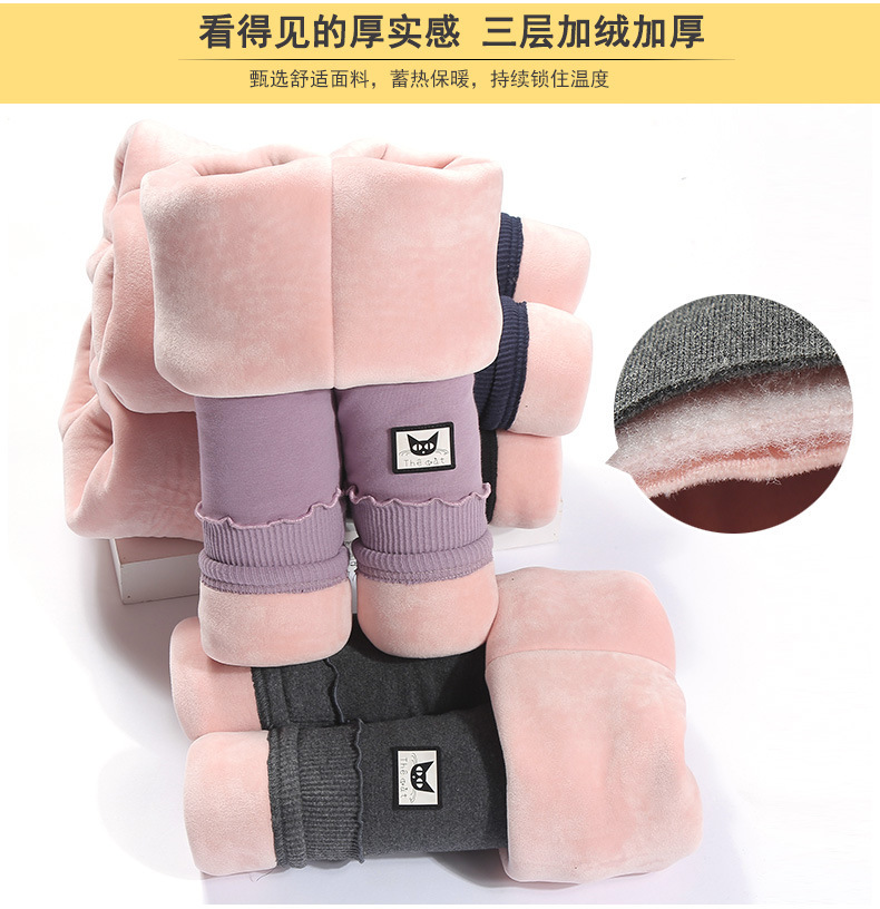 소녀들의 겨울 따뜻한 바지 새로운 두꺼운 3 대 1 탄성 중간 허리 유행 중소형 어린이 외부 착용 레깅스스토어 가기