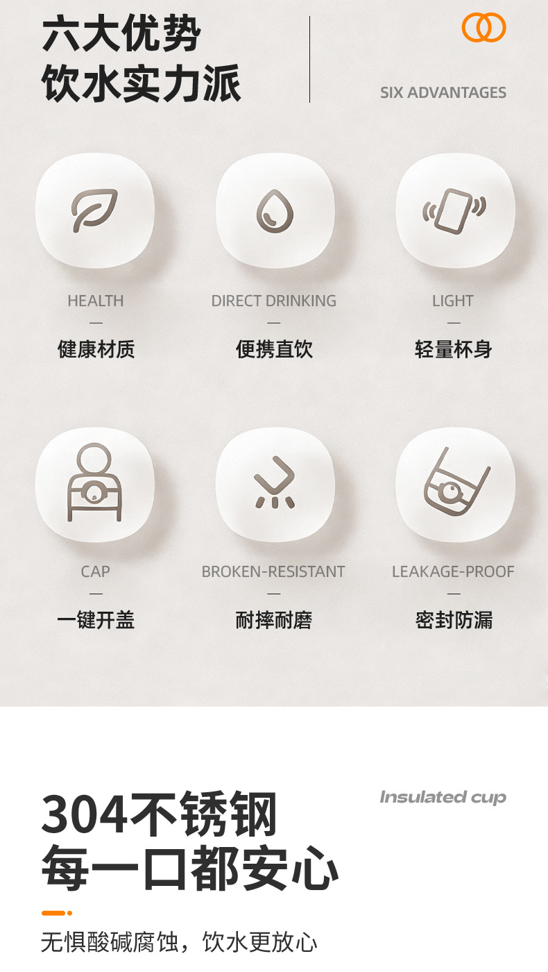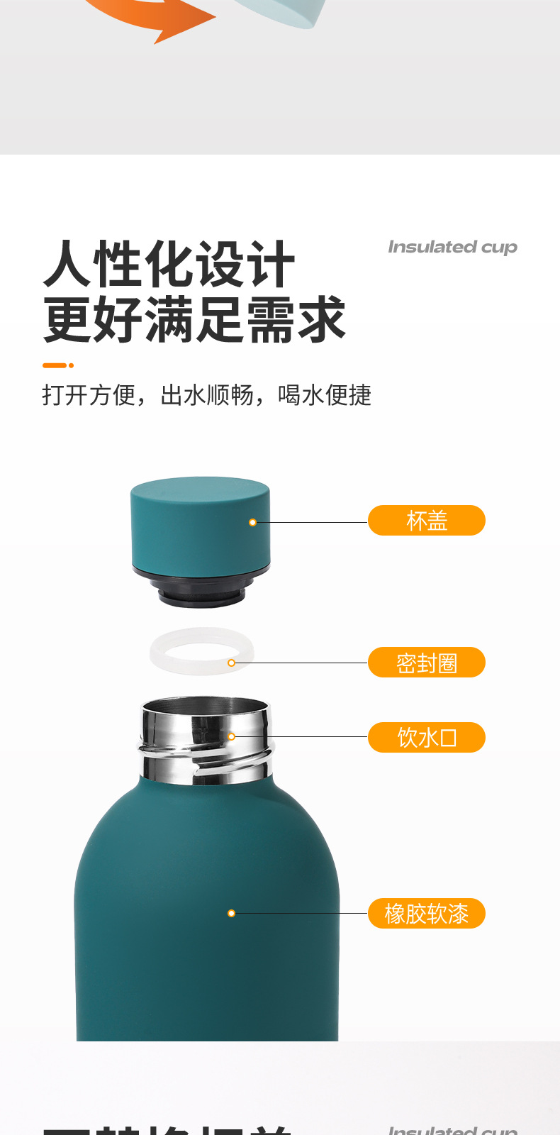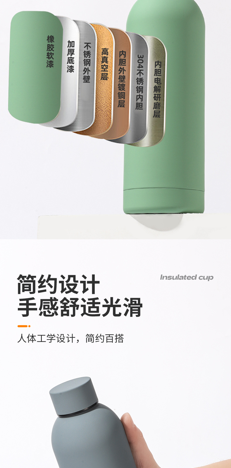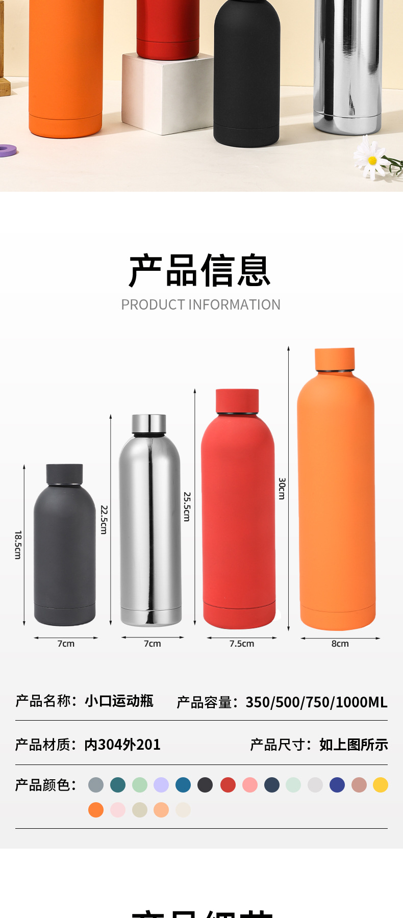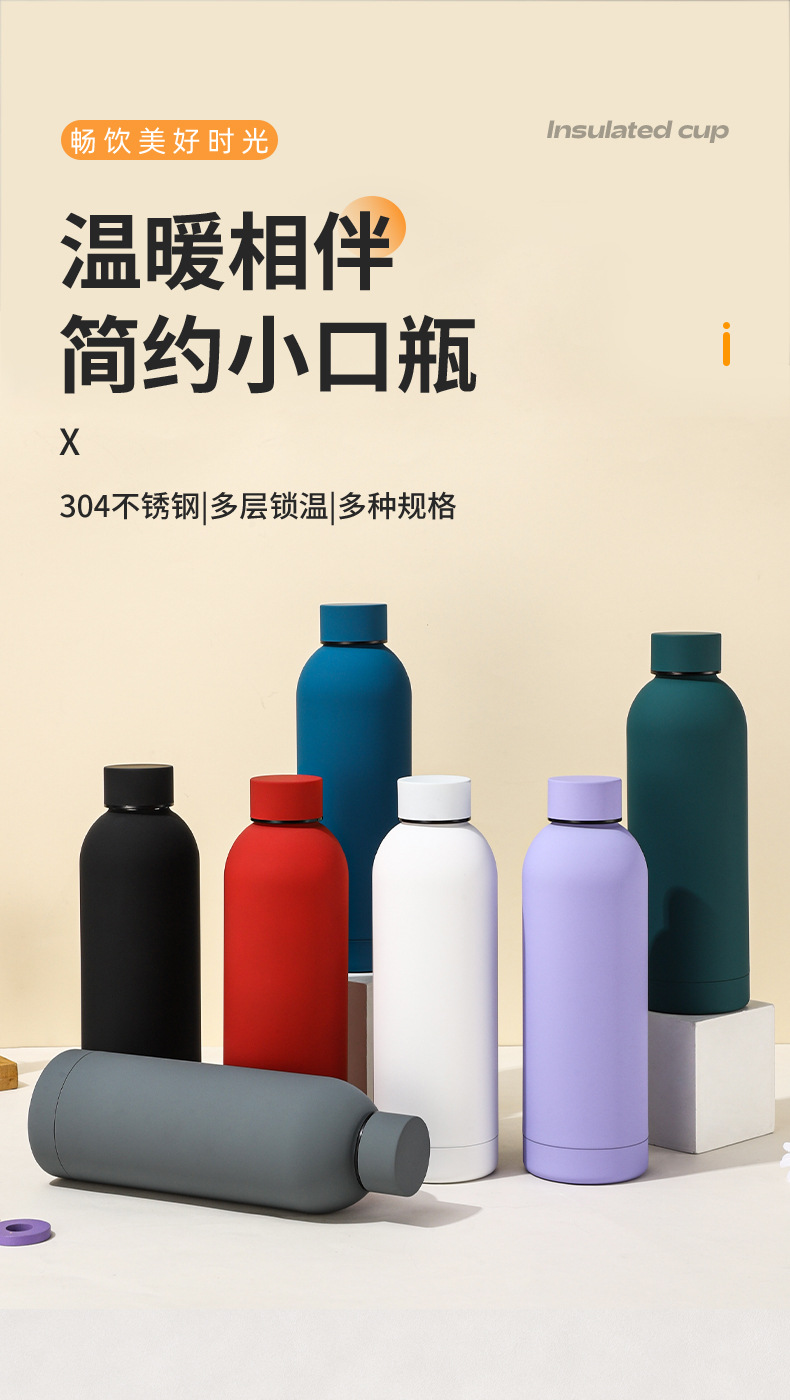 304 스테인레스 스틸 미국 작은 입 병 고무 페인트 핸들 스포츠 주전자가 두꺼운 이중층 절연 컵 도매스토어 가기