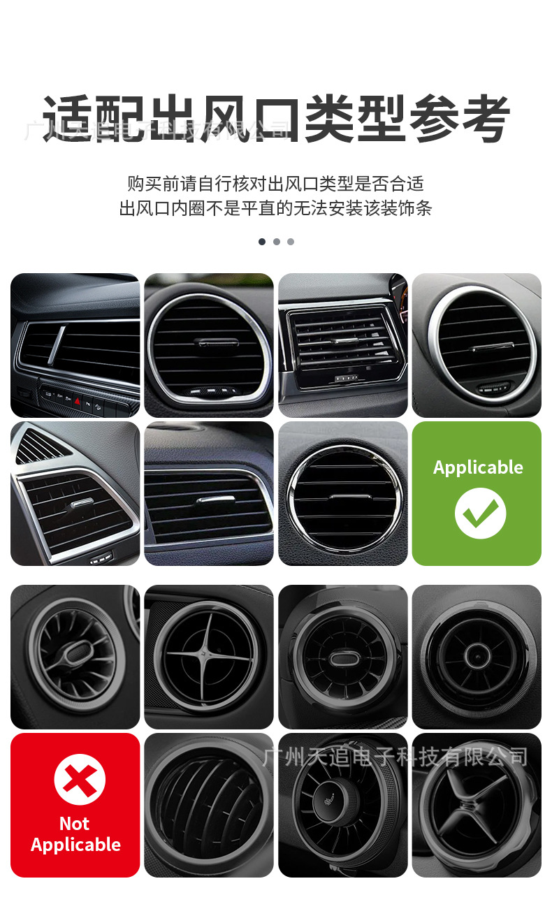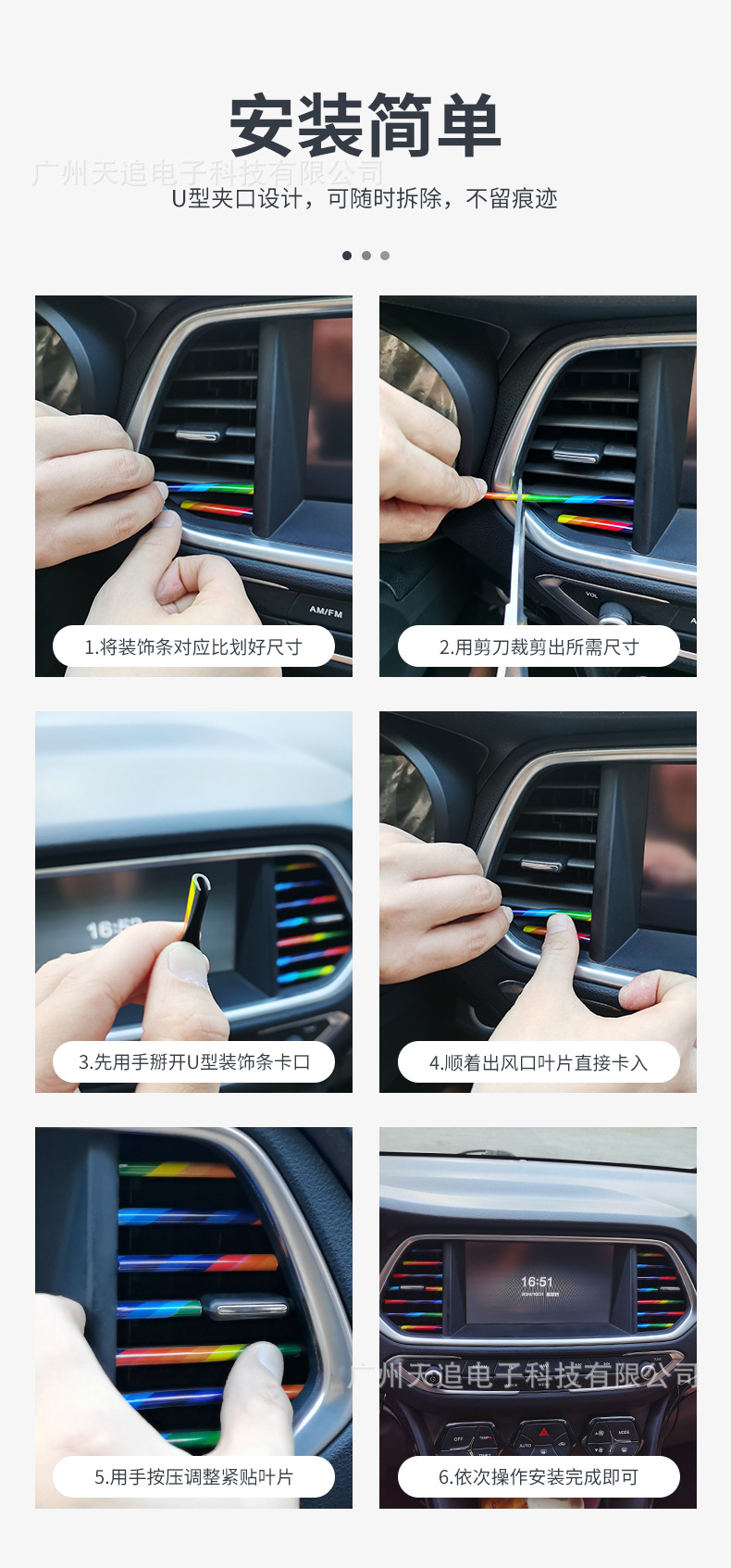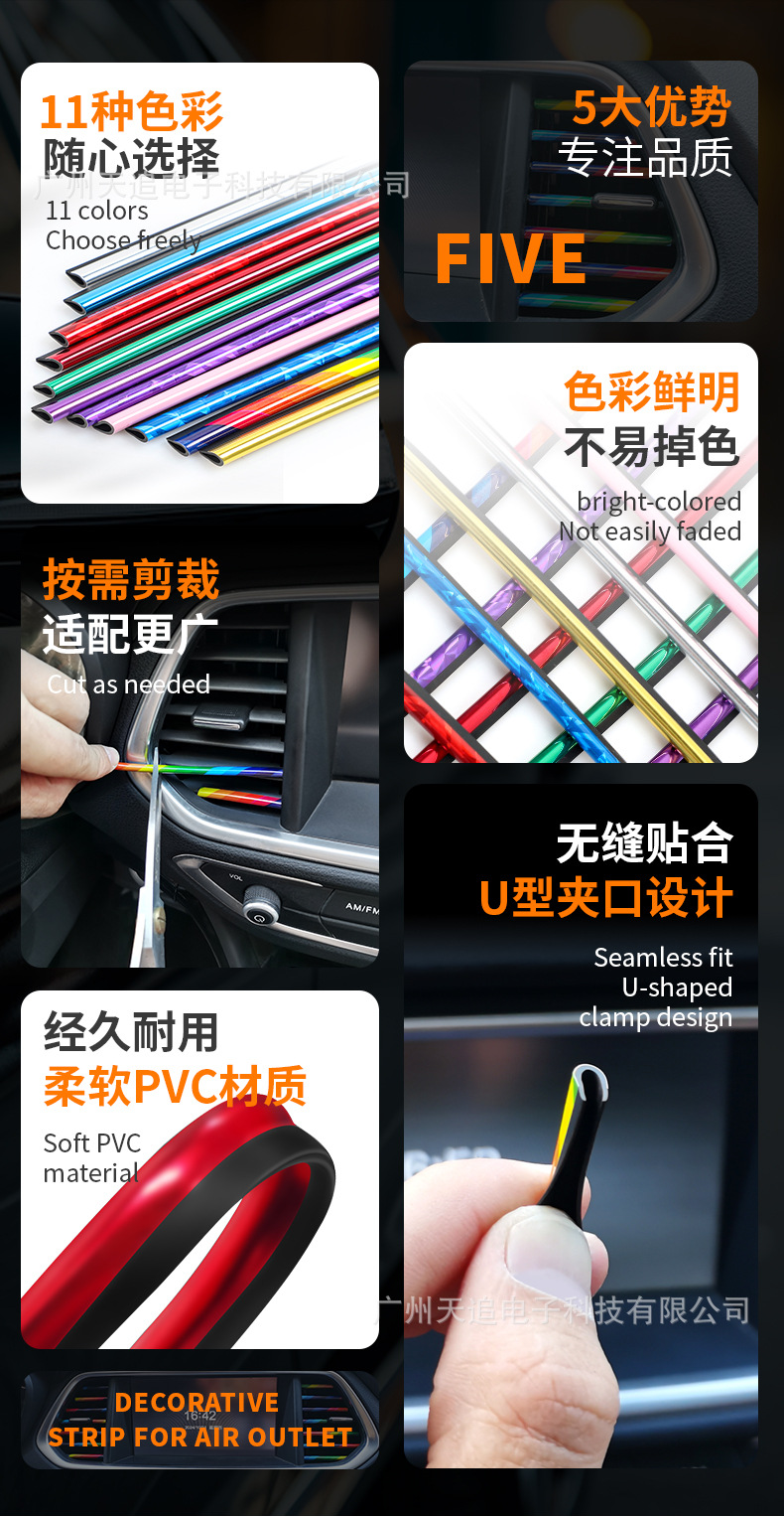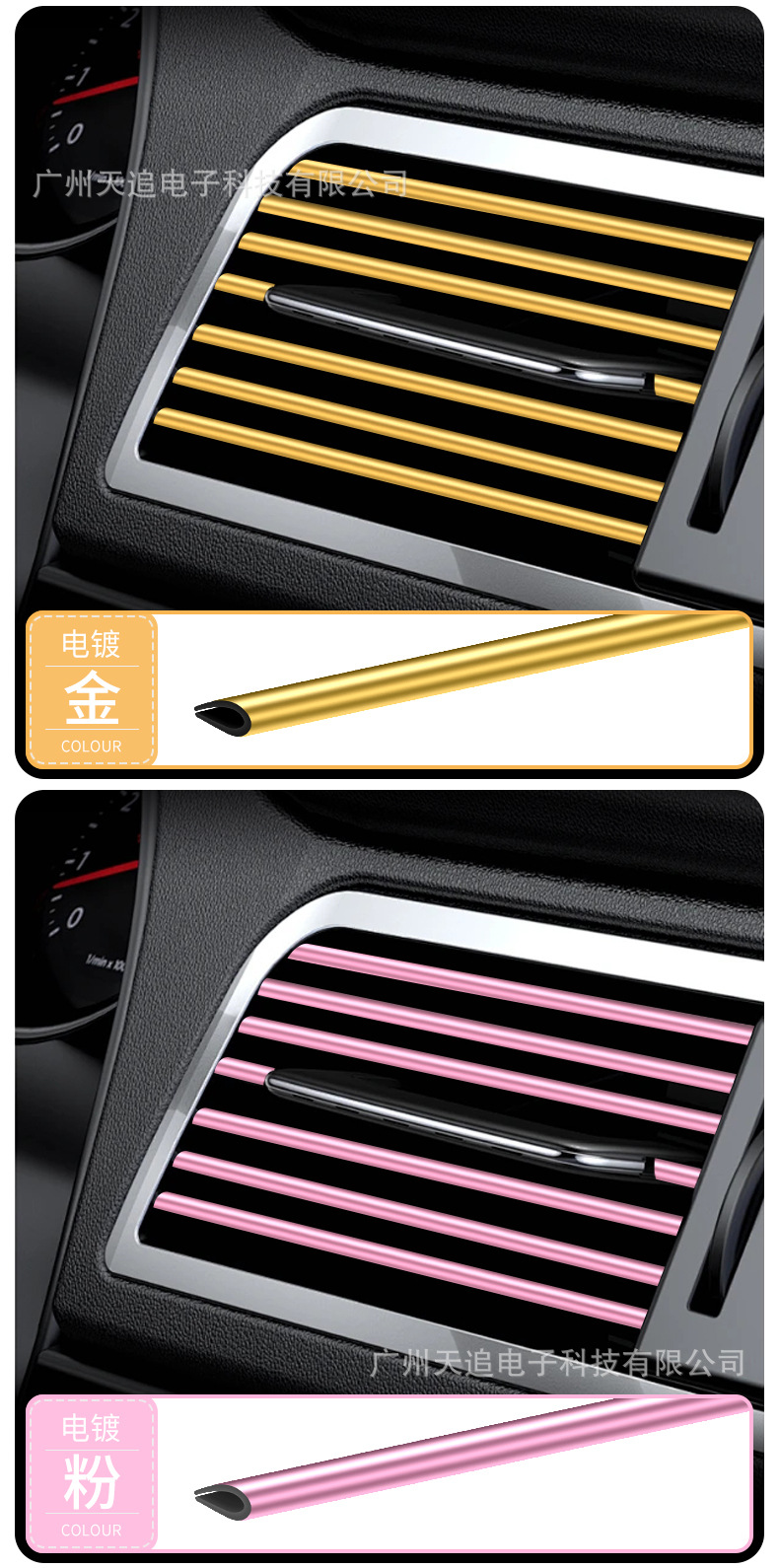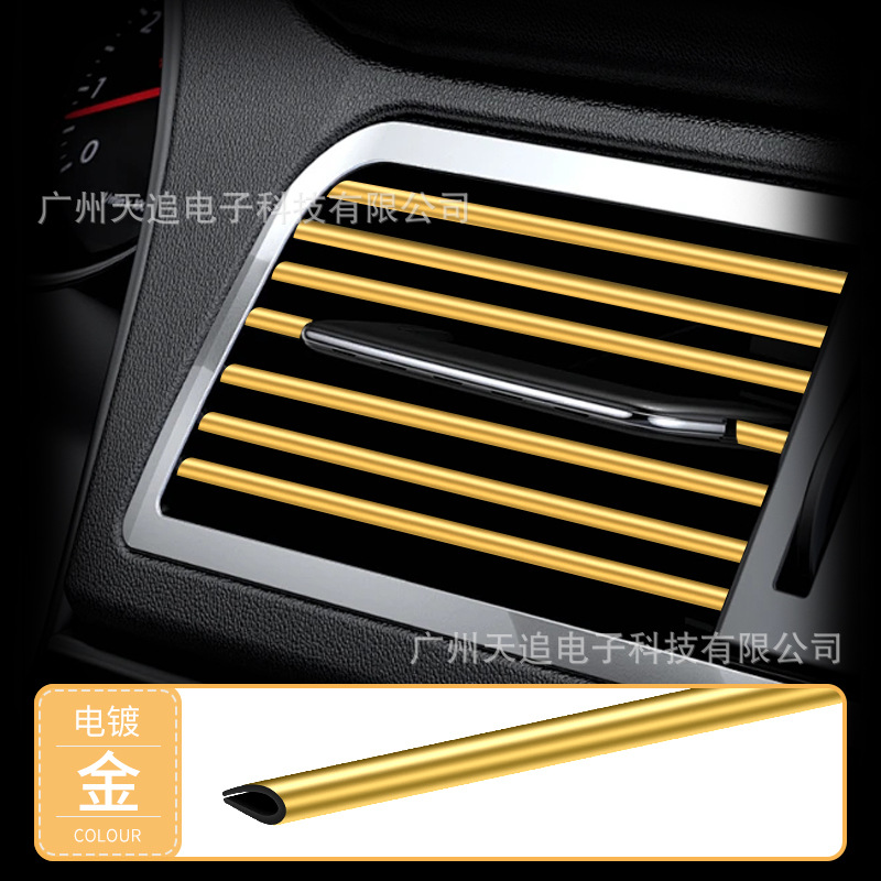 Tianzhui 자동차 공기 출구 장식 스트립 중간 그물 클립 스트립 U 자형 전기 도금 밝은 스트립 에어컨 크롬 도금 색상 인테리어 수정