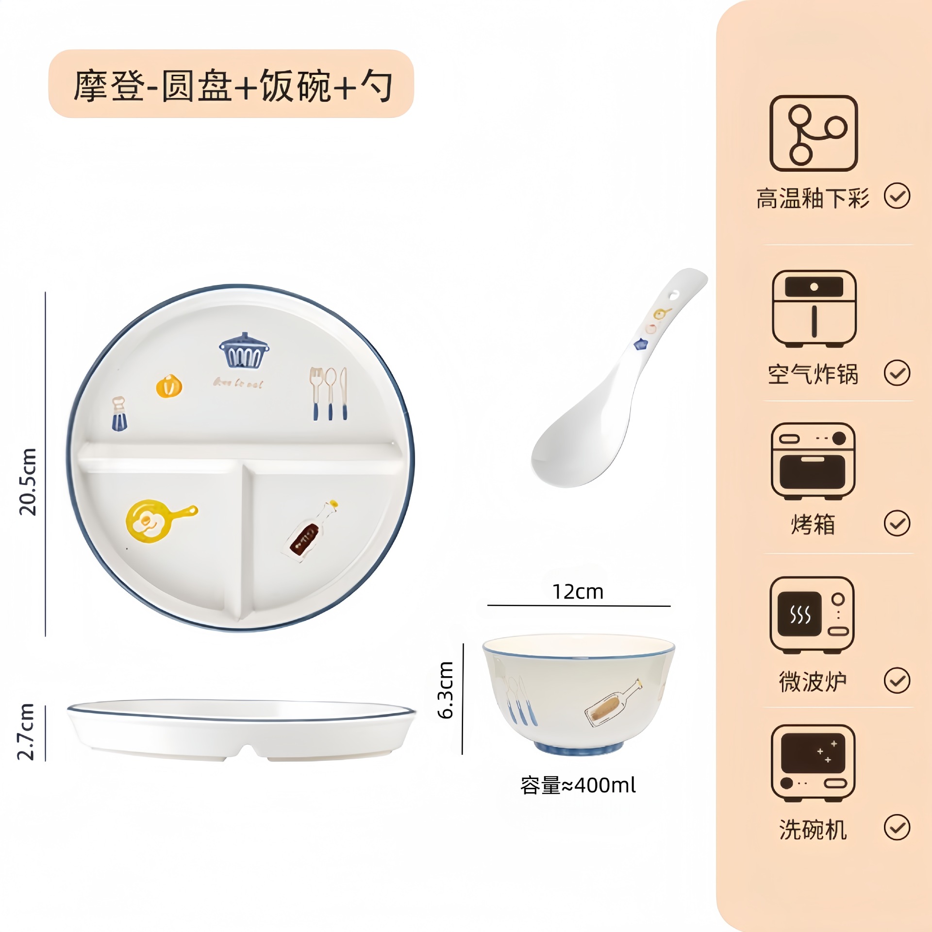 • 모던한 원형 서빙 접시 + 스푼 + 밥그릇