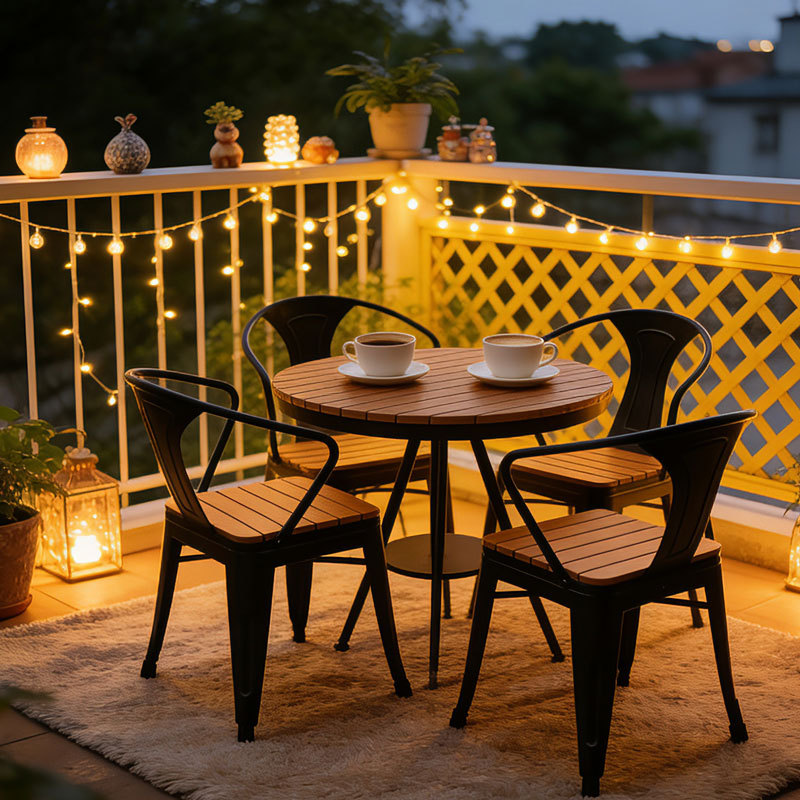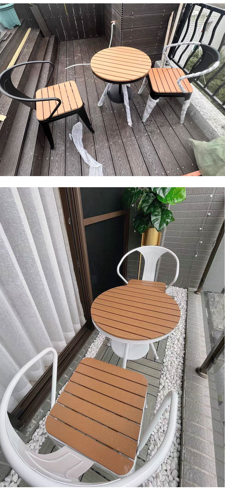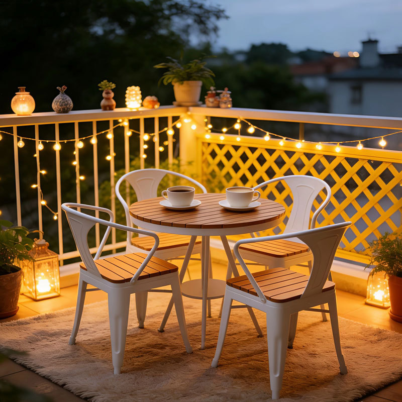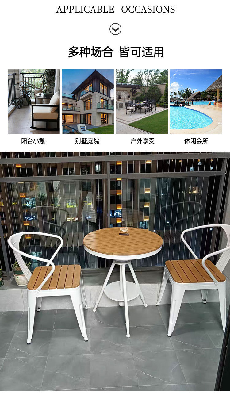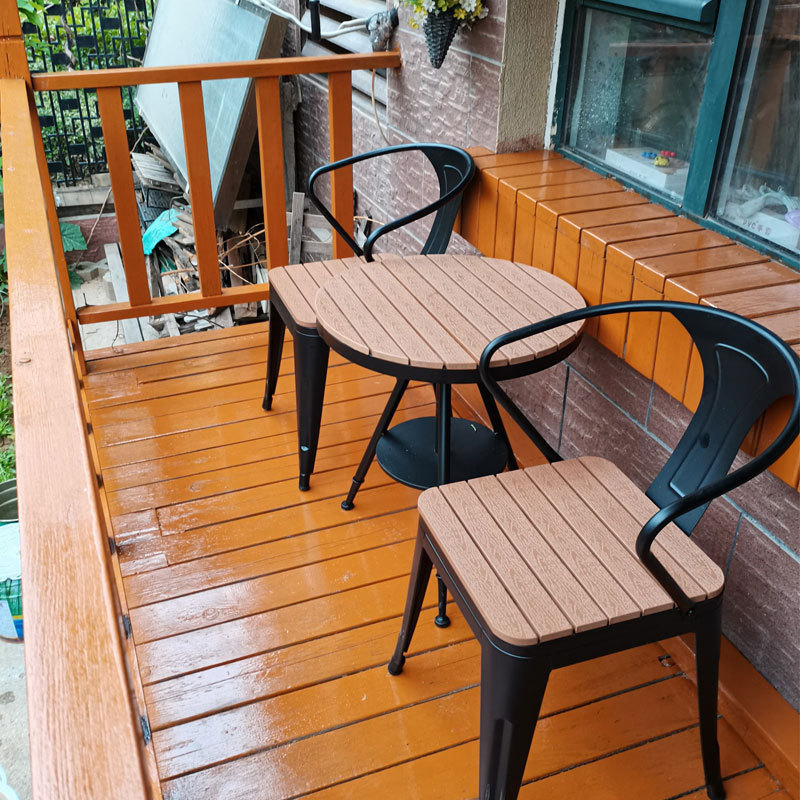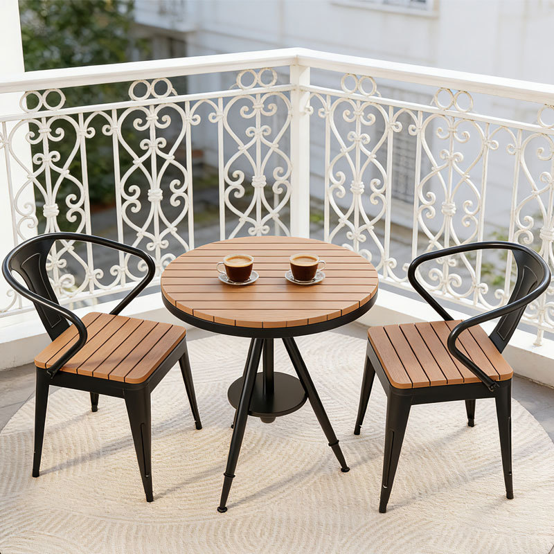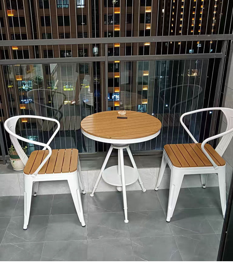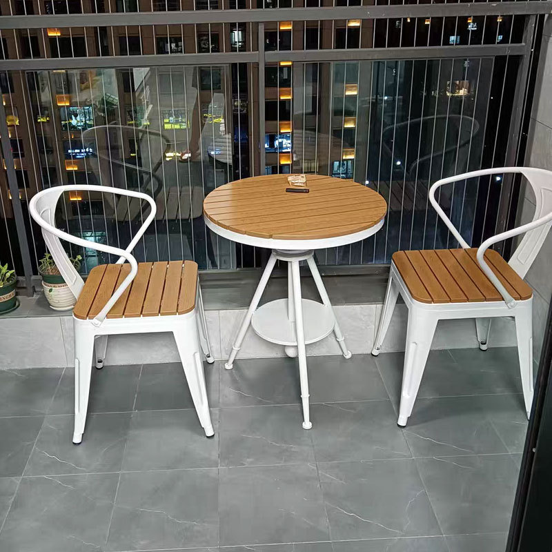 야외 테이블과 의자 안뜰 야외 선 스크린 야외 식탁 및 의자 리프팅 테이블 플라스틱 나무 발코니 작은 라운드 테이블 3 피스 세트