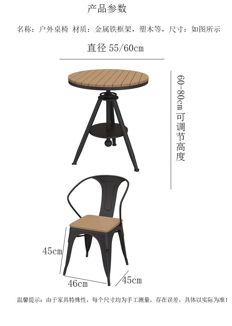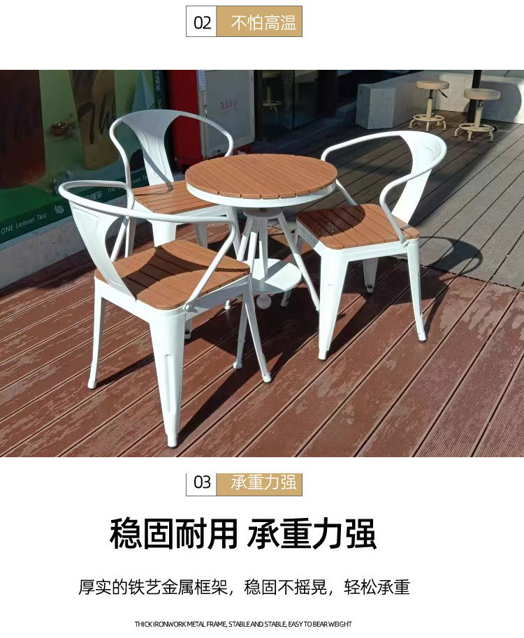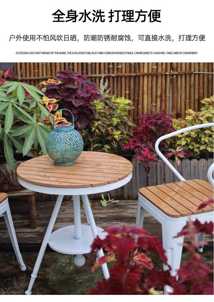 야외 테이블과 의자 안뜰 야외 선 스크린 야외 식탁 및 의자 리프팅 테이블 플라스틱 나무 발코니 작은 라운드 테이블 3 피스 세트스토어 가기
