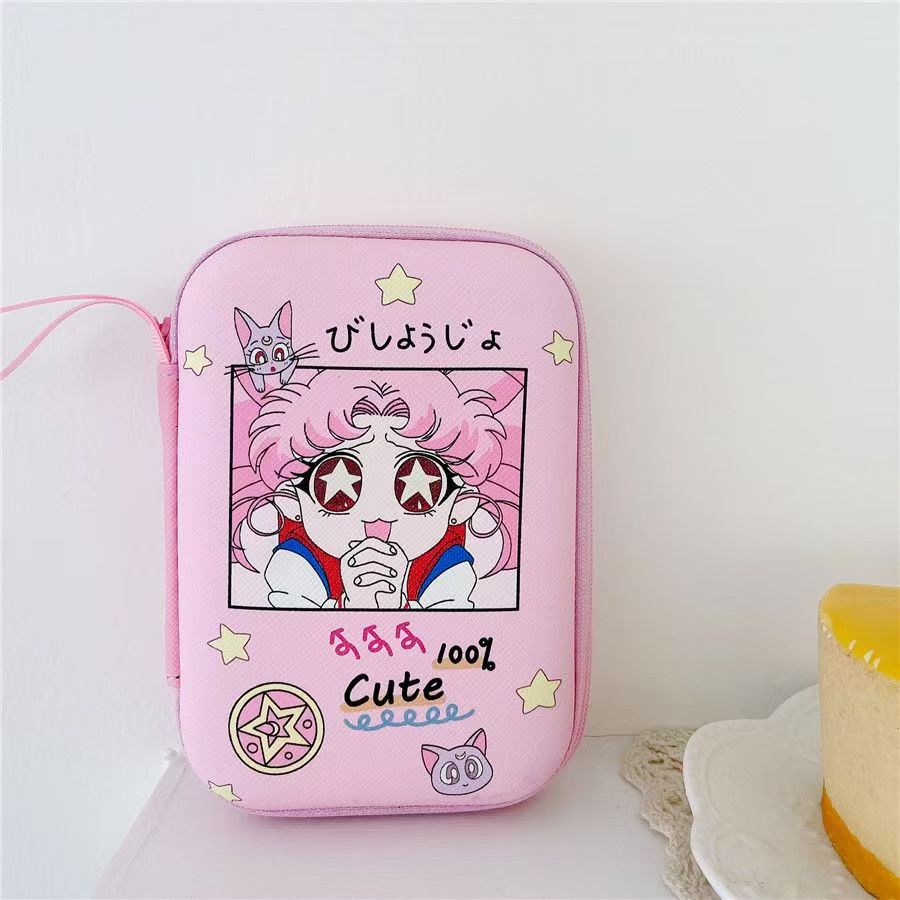 만화 직사각형 헤드셋 저장 가방 대형 동전 지갑 충전기 데이터 케이블 하드 디스크 모바일 전원 저장 상자