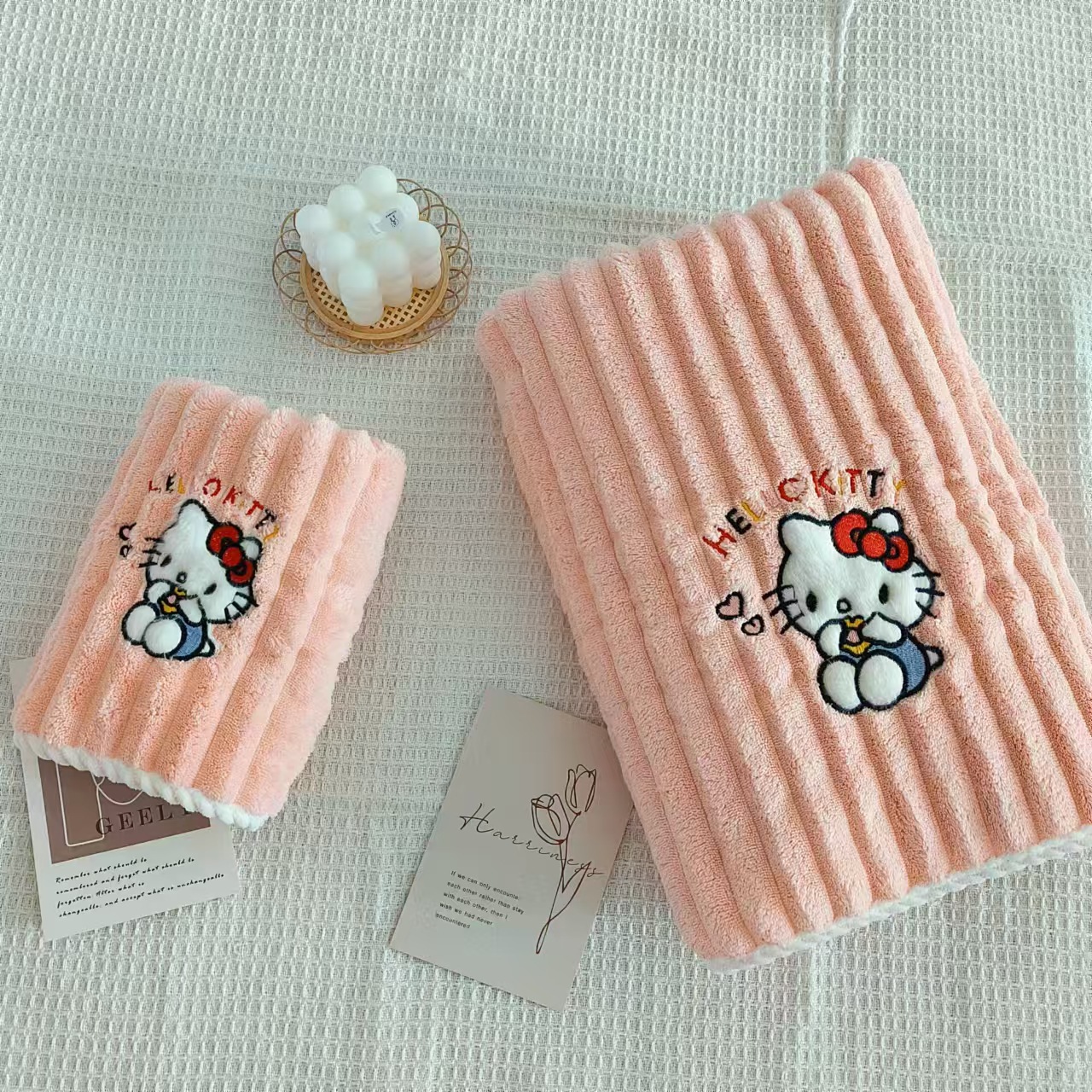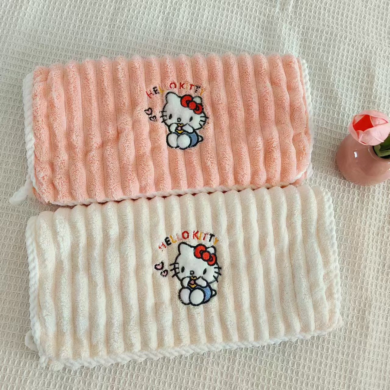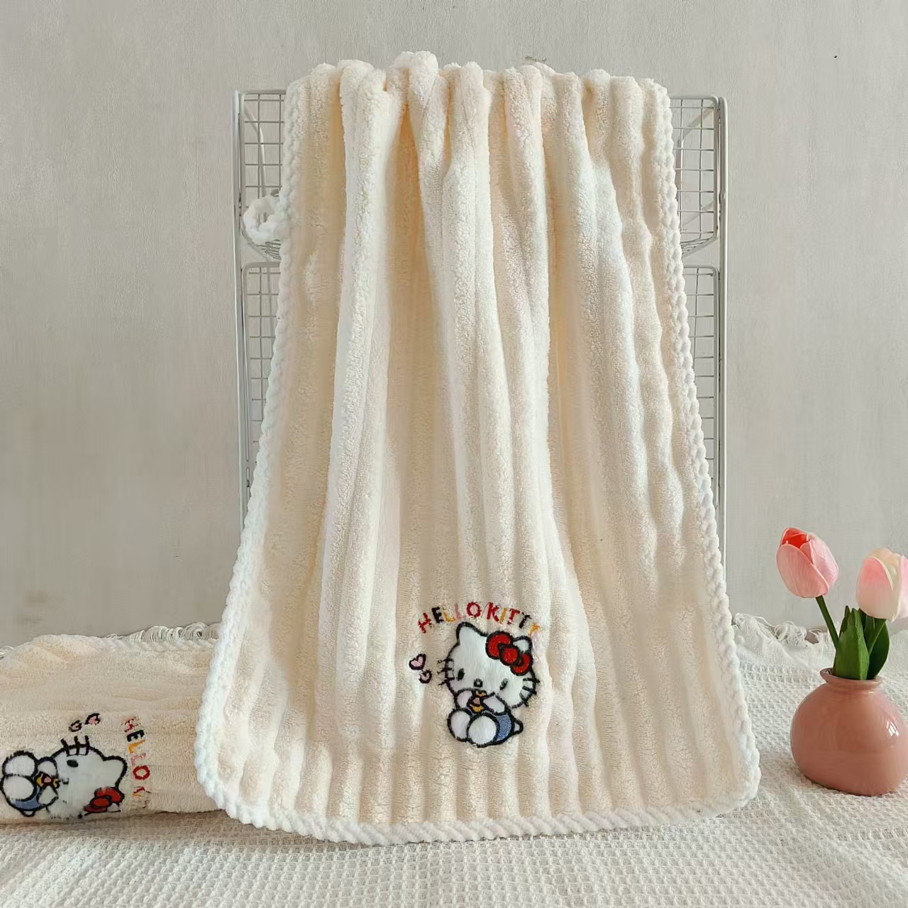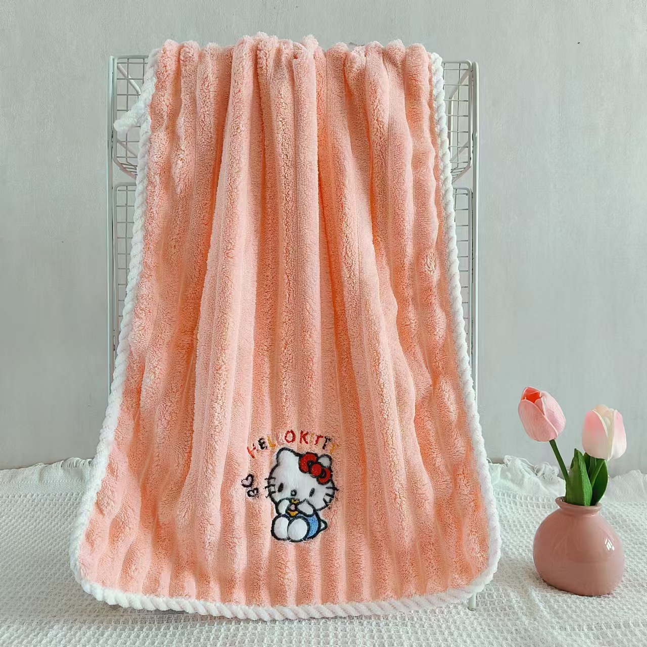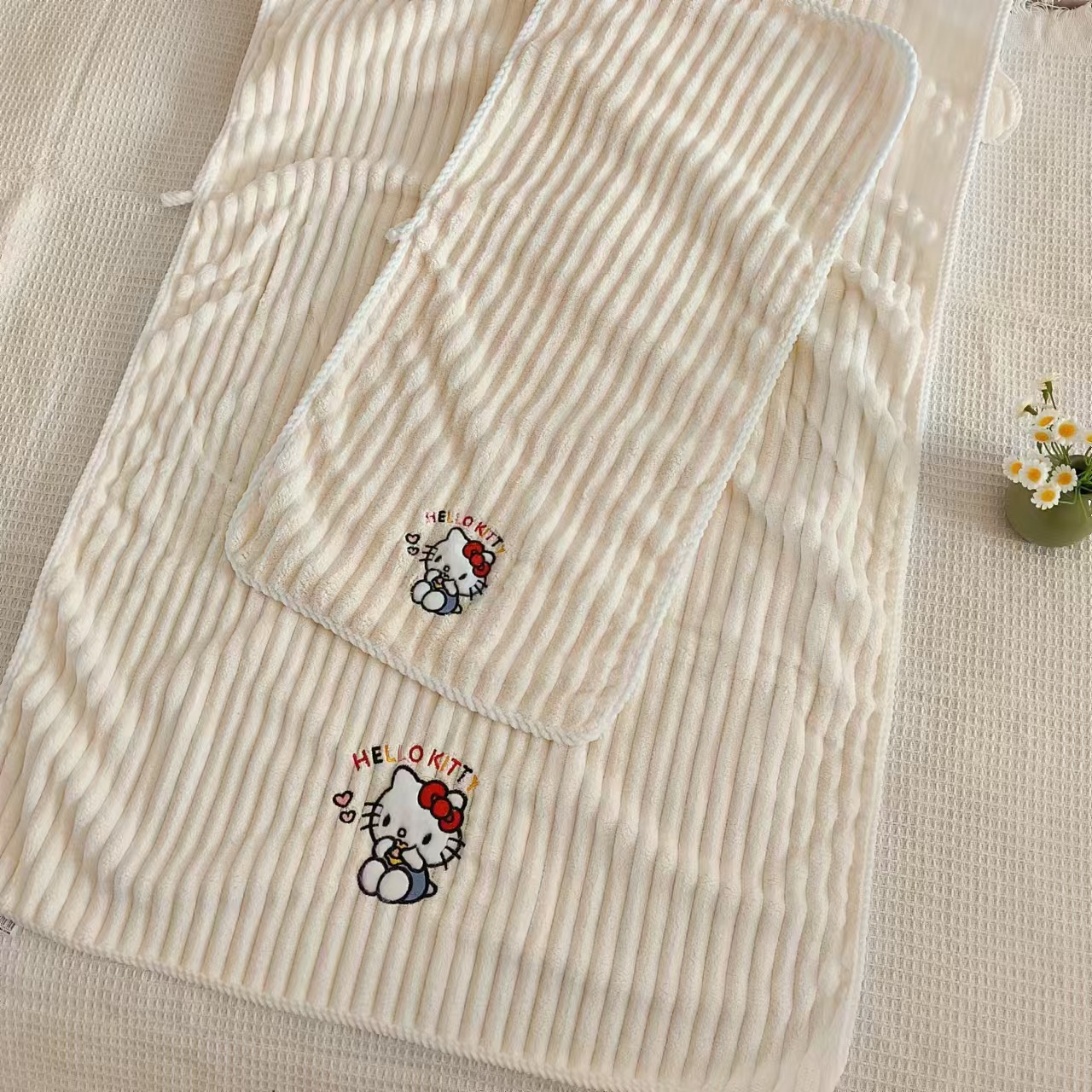 새로운 헬로 키티 산호 양털 수건 목욕 수건 학생 기숙사 흡수성 보풀이없는 빠른 건조 여성의 귀여운 어린이스토어 가기