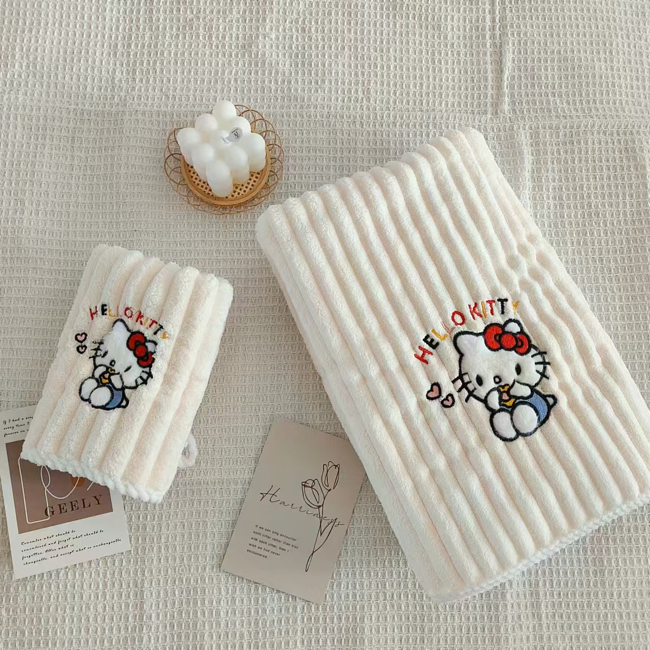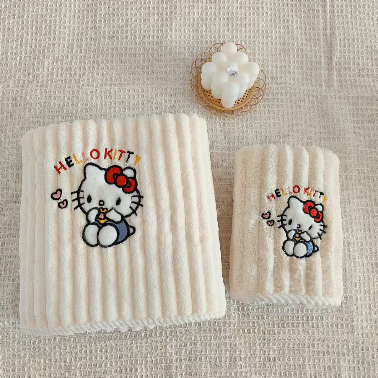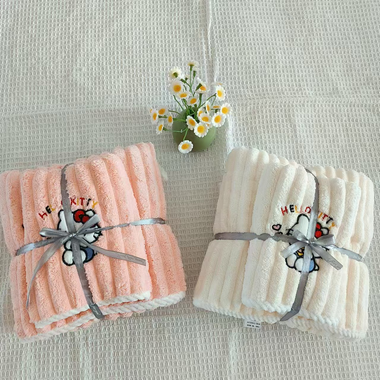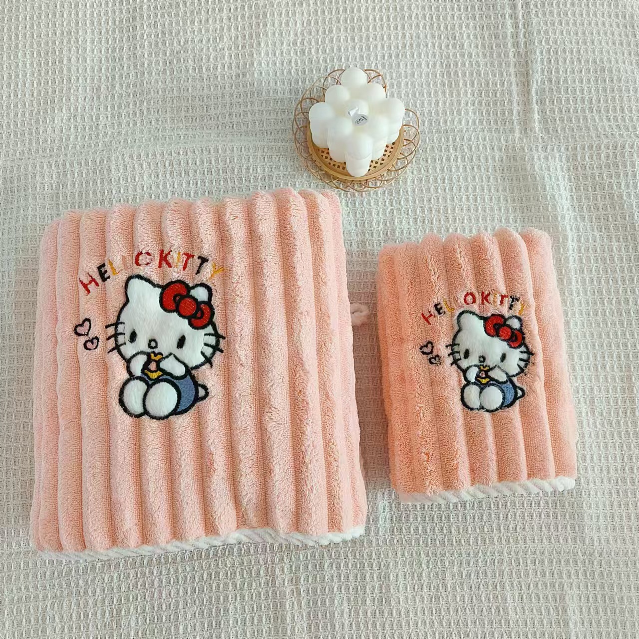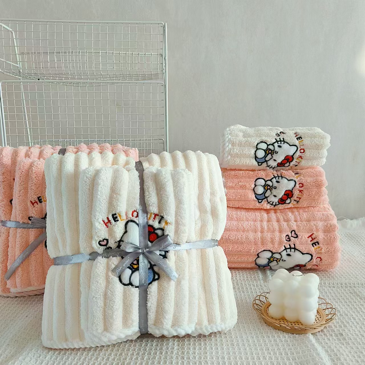 새로운 헬로 키티 산호 양털 수건 목욕 수건 학생 기숙사 흡수성 보풀이없는 빠른 건조 여성의 귀여운 어린이스토어 가기