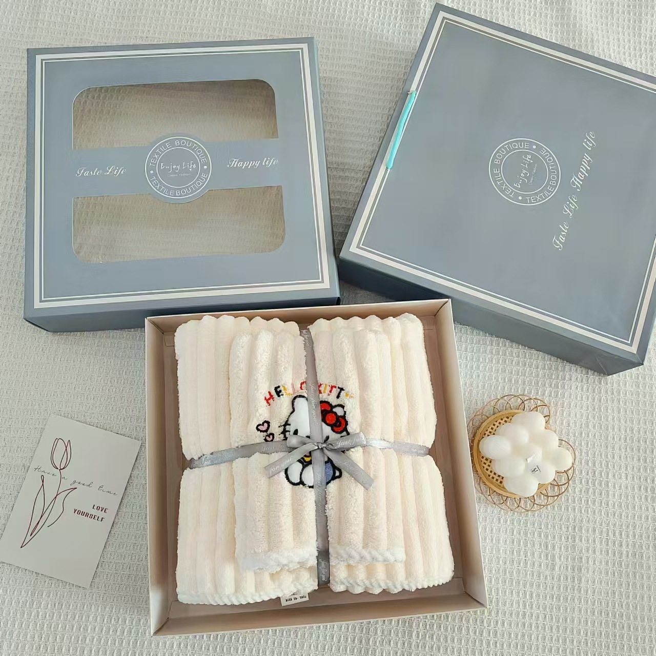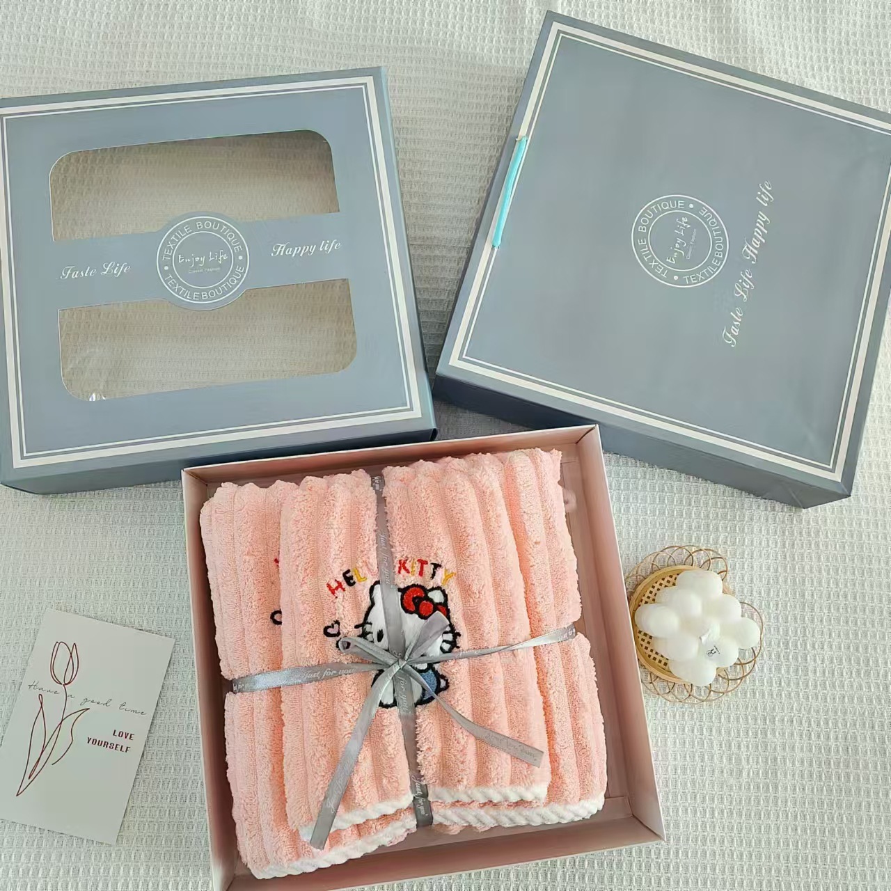 • 선물 상자 2종 세트(수건 1개 + 목욕 수건 1개)