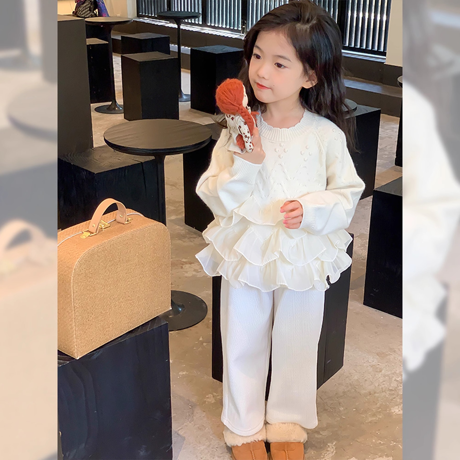 아기 소녀 레이스 스웨터베이스 셔츠 2024 새로운 여성의 가을과 겨울 어린이 스웨터 서양식 두꺼운 스웨터 트렌디스토어 가기