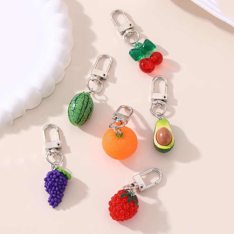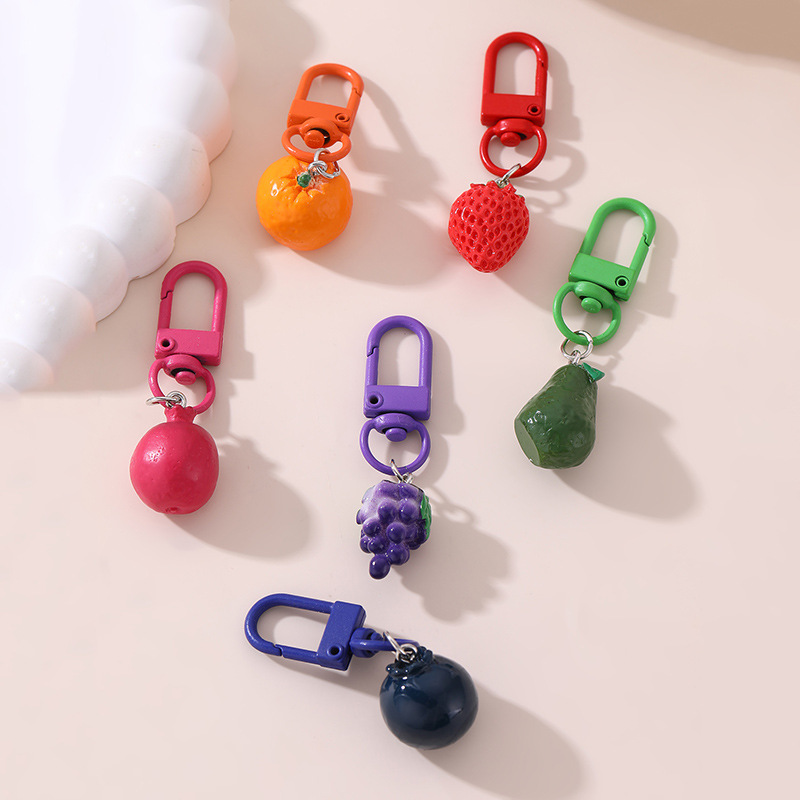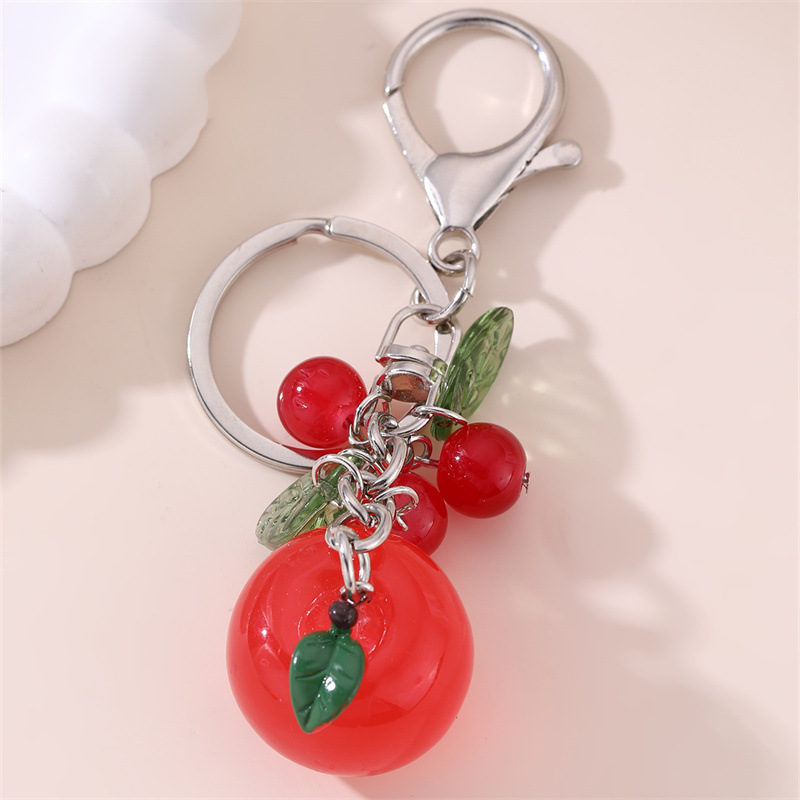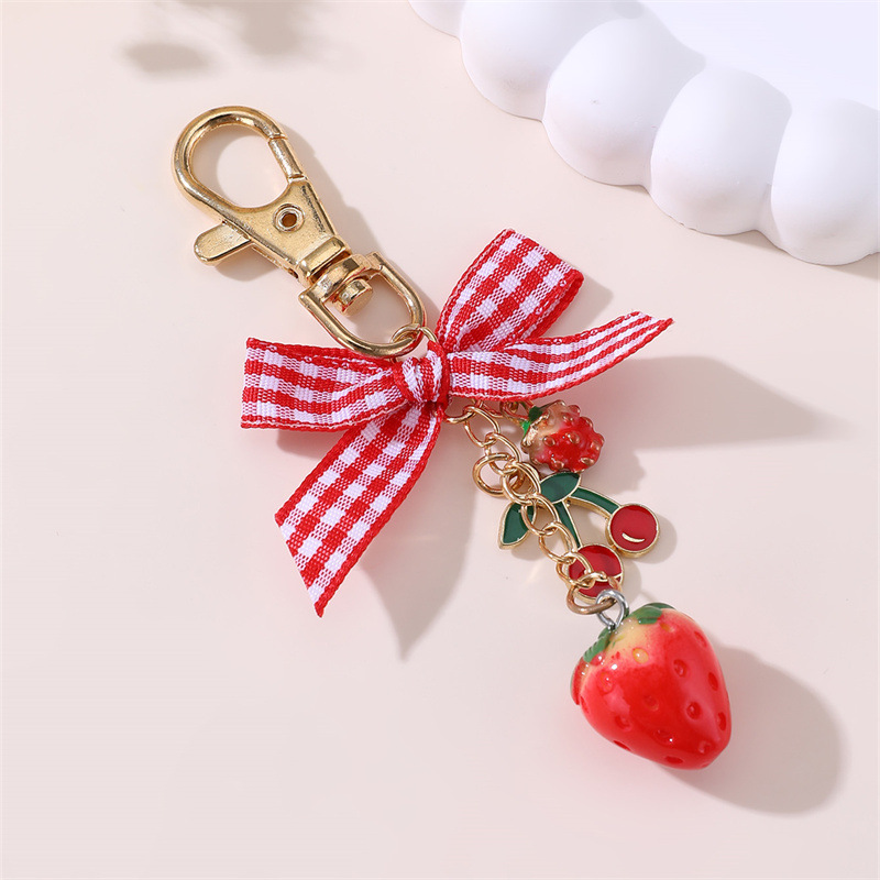 국경 간 한국 스타일 소녀의 격자 무늬 컬러 펜던트 활 체리 딸기 키 체인 여성의 귀여운 우아한 여성 쥬얼리