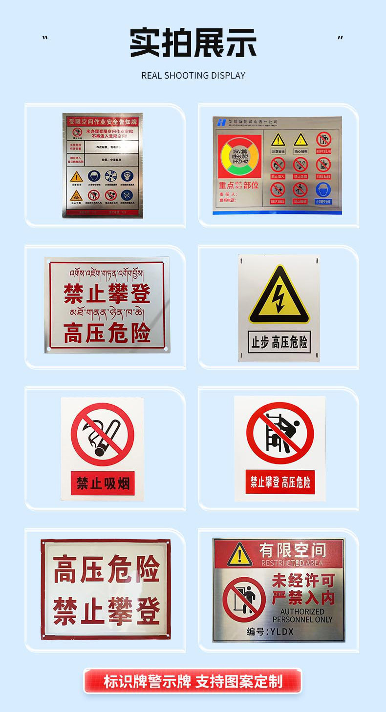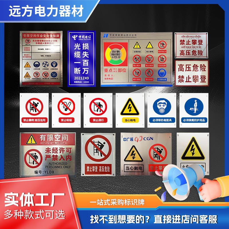 전원 표시, 경고 표시, 알루미늄 표시, 스테인레스 스틸 부식 표시, 타워 번호판, 극 번호판, 경고 표시스토어 가기
