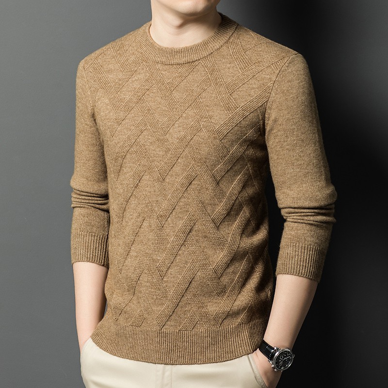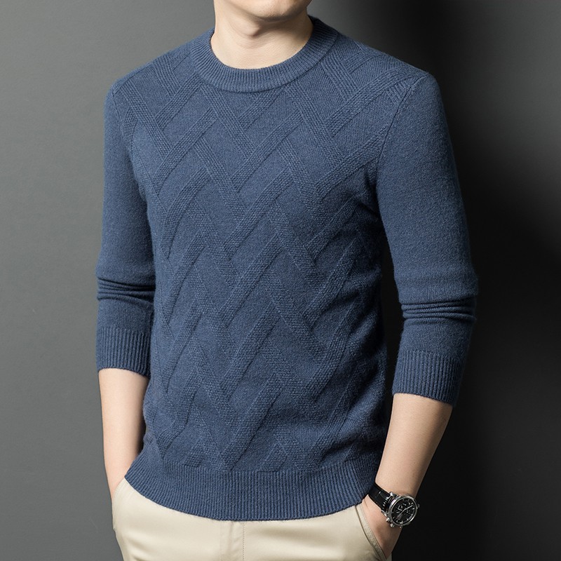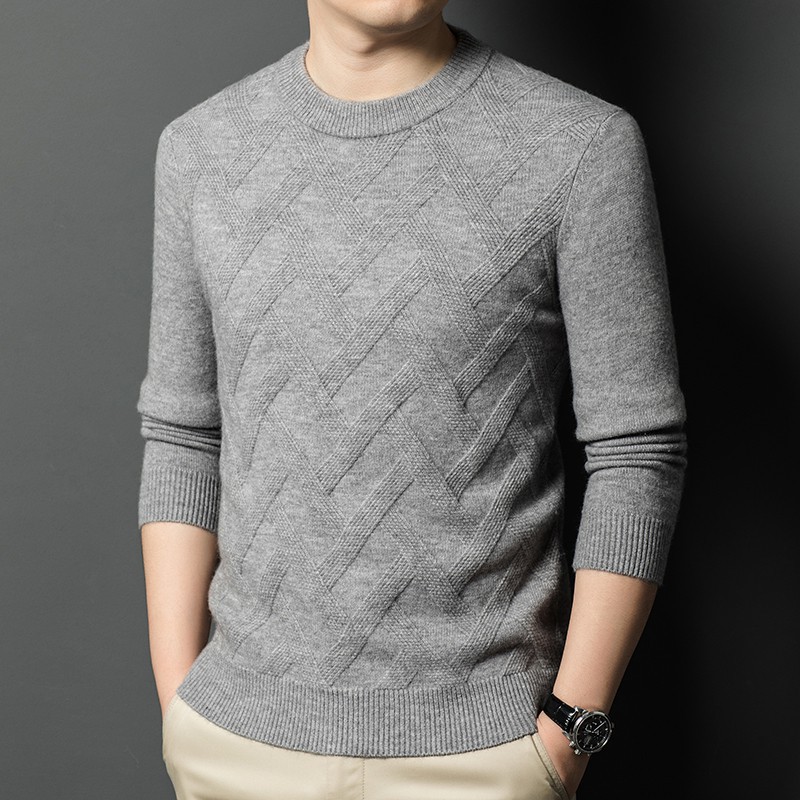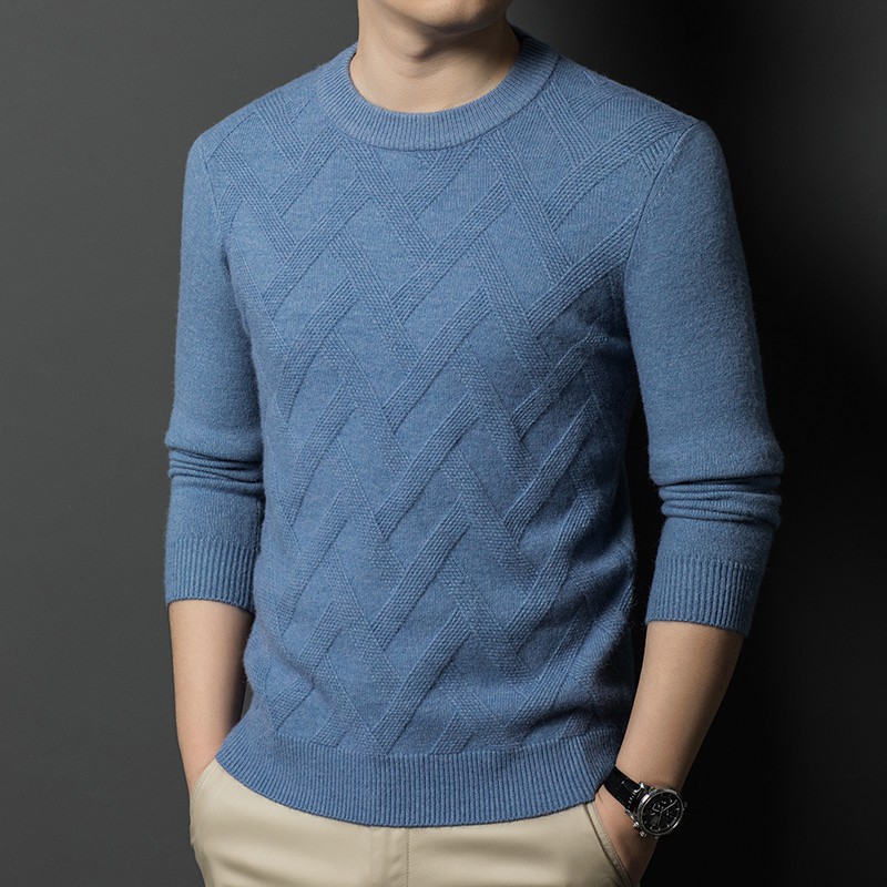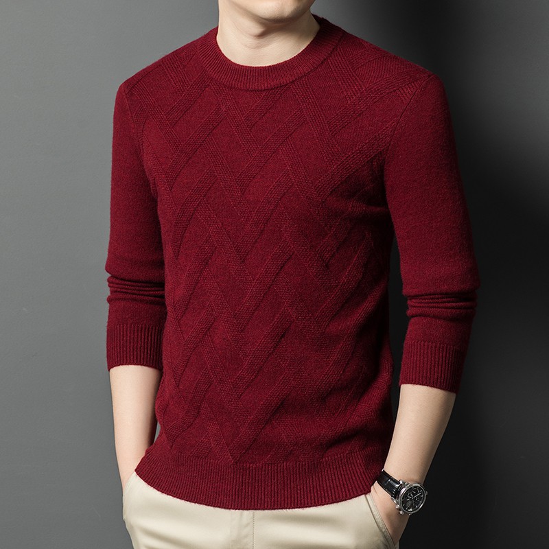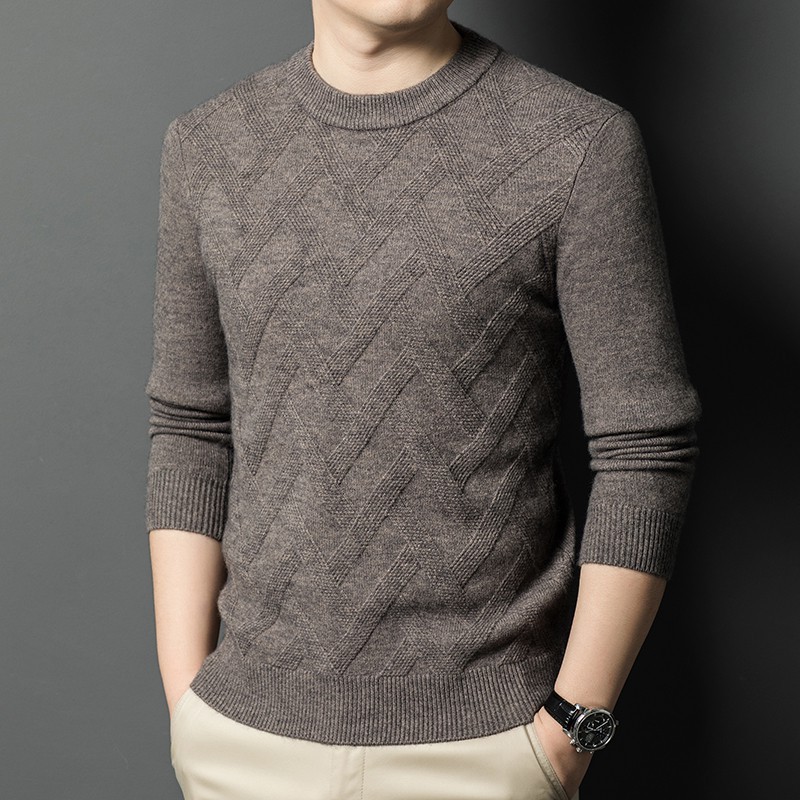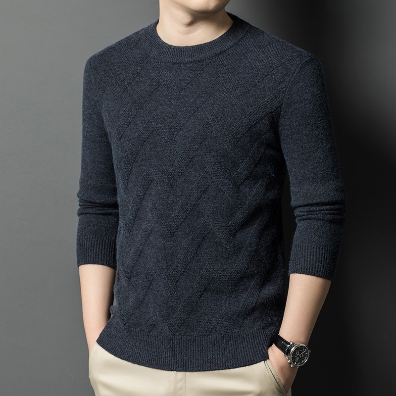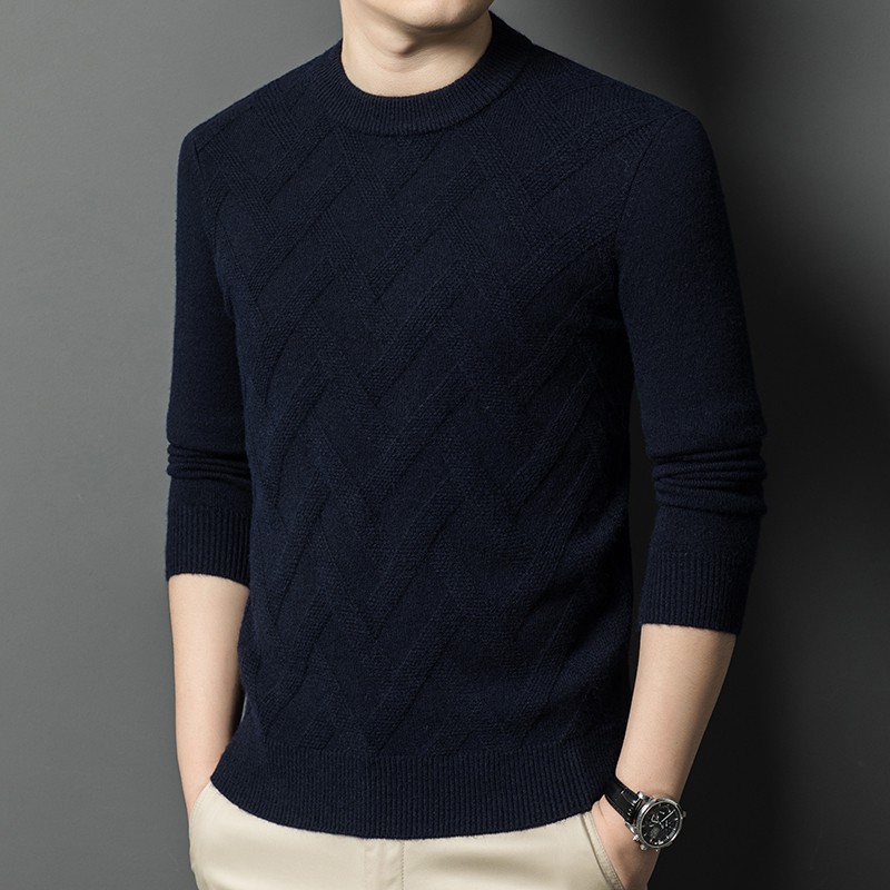 순수 스웨터 남자 9 핀 두꺼운 따뜻한 크루 넥 스웨터 가을과 겨울 캐주얼 솔리드 컬러 자카드베이스 스웨터