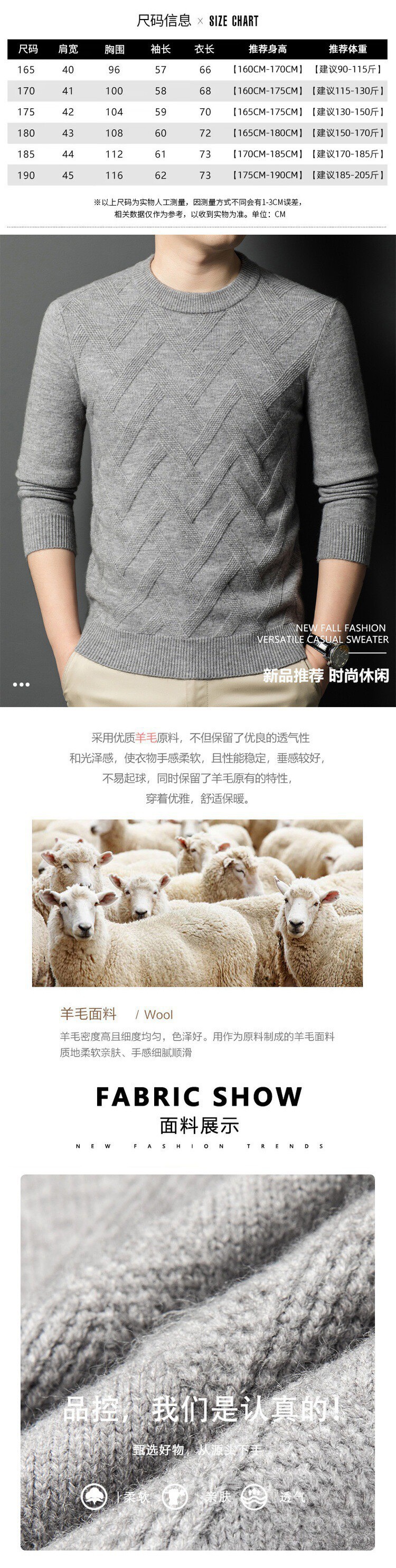 순수 스웨터 남자 9 핀 두꺼운 따뜻한 크루 넥 스웨터 가을과 겨울 캐주얼 솔리드 컬러 자카드베이스 스웨터스토어 가기
