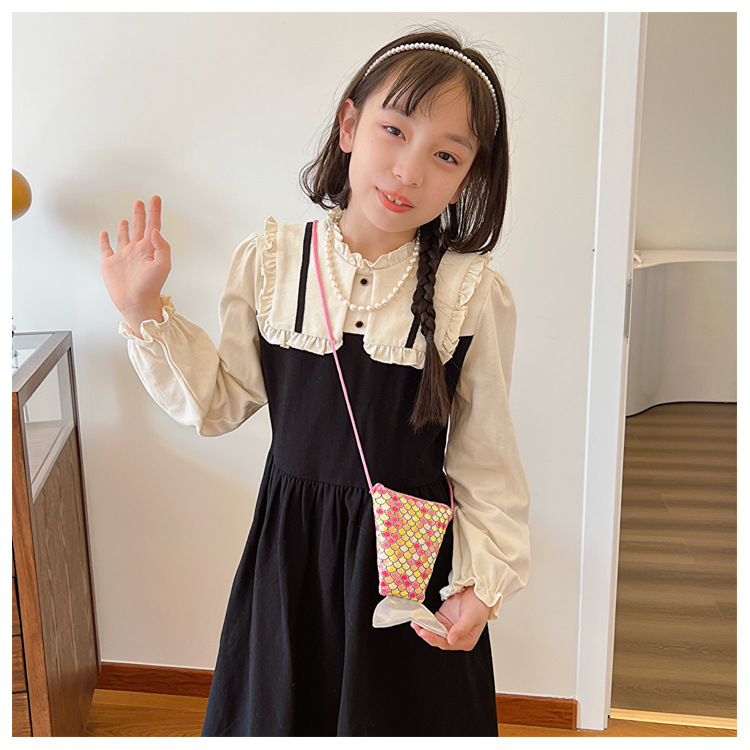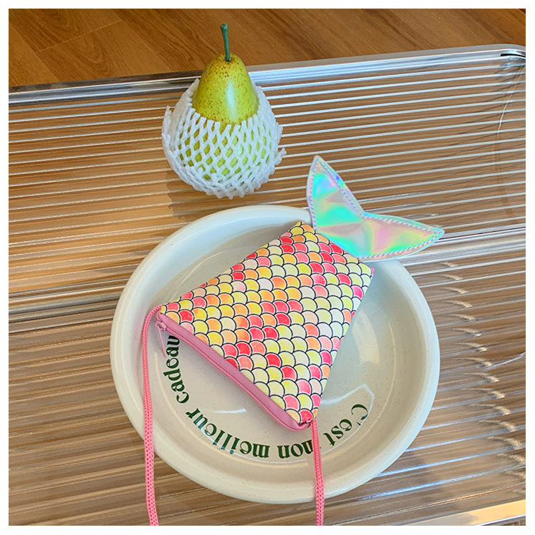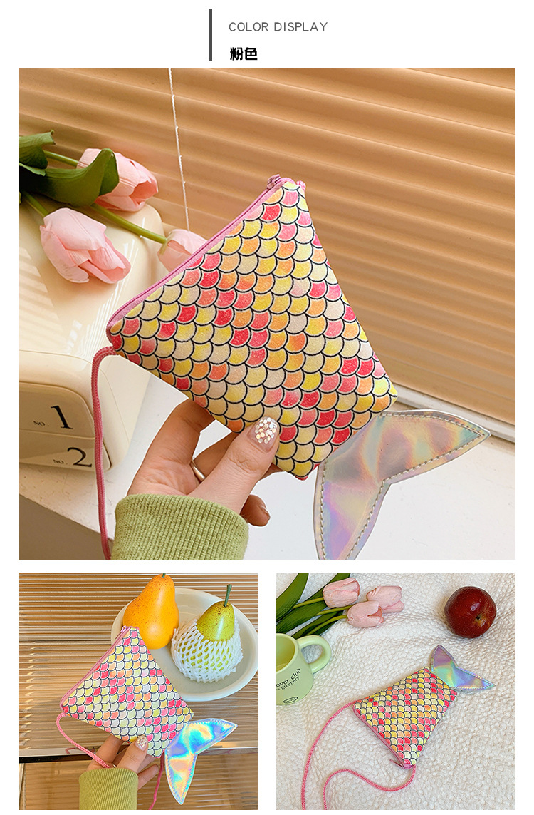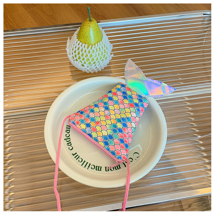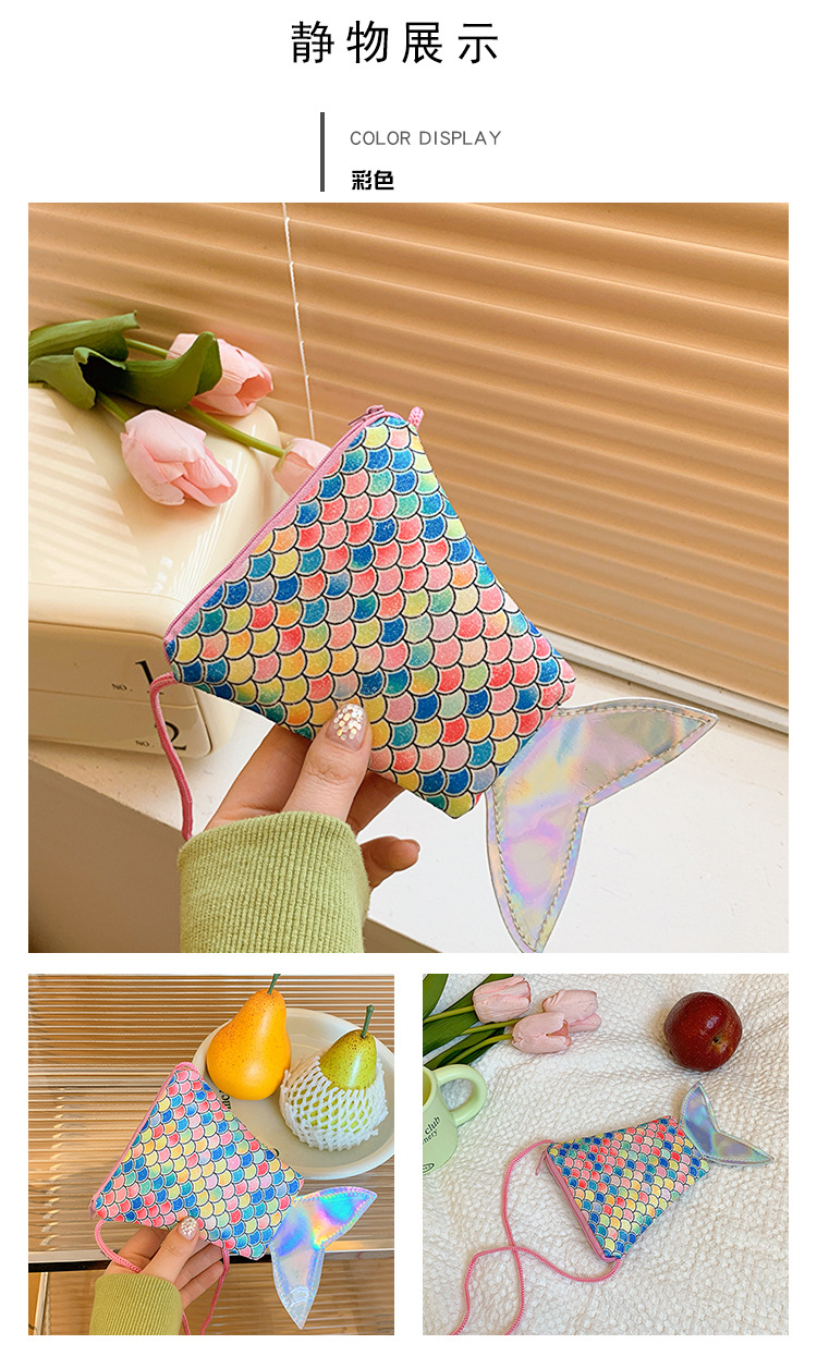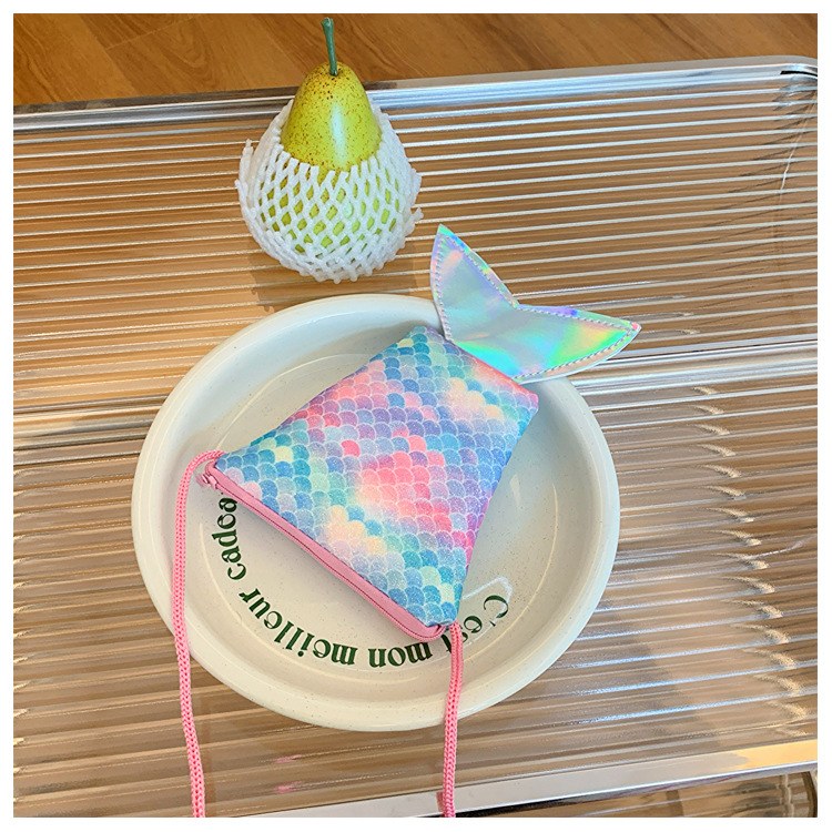 도매 어린이 가방 새로운 귀여운 인어 낚시 꼬리 모양 소녀 작은 가방 다채로운 소녀 물고기 스케일 동전 지갑