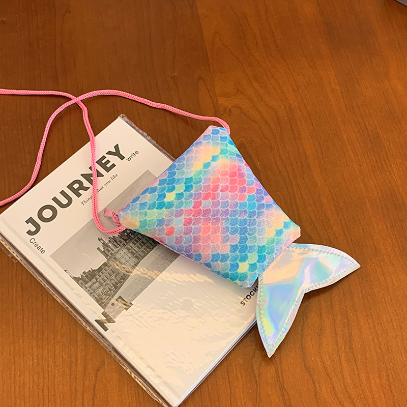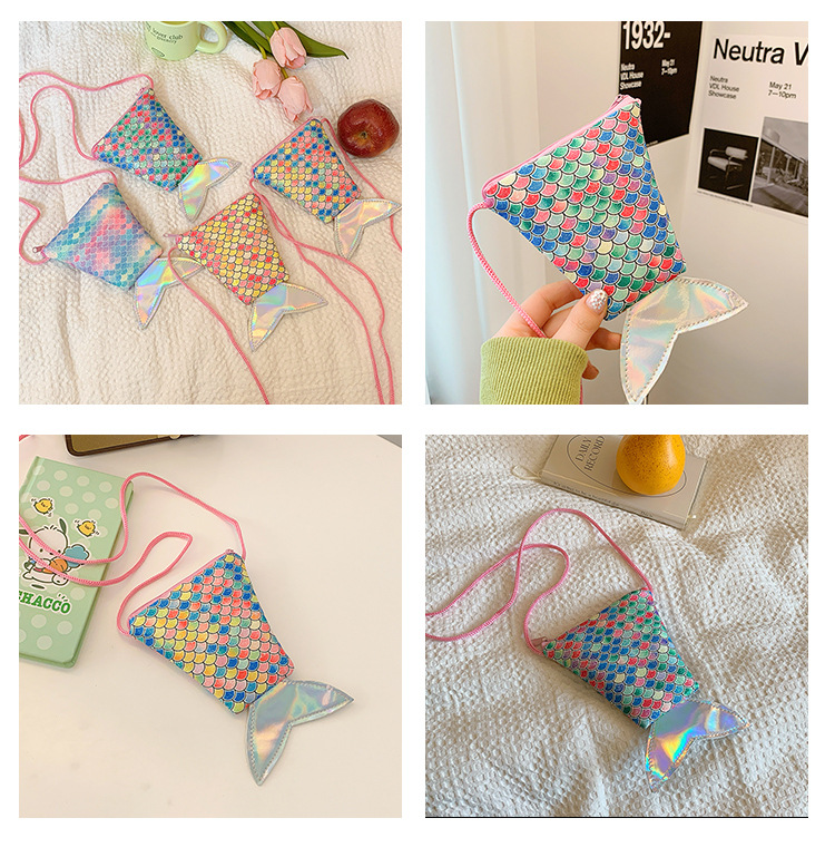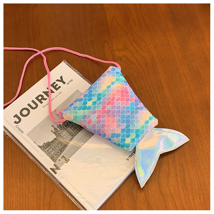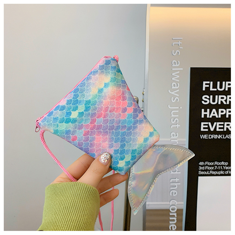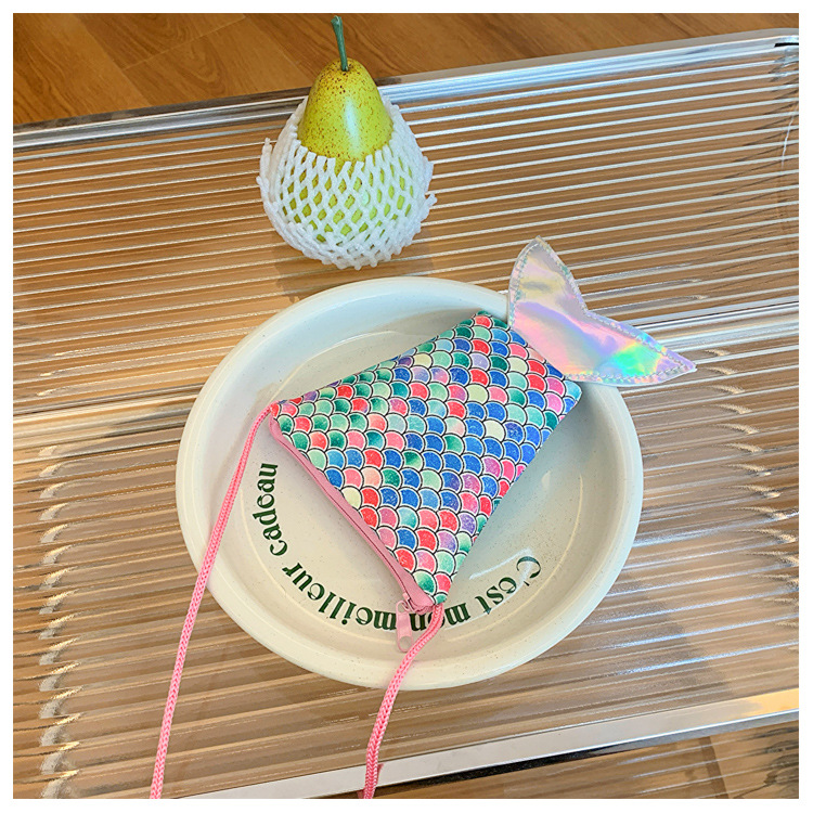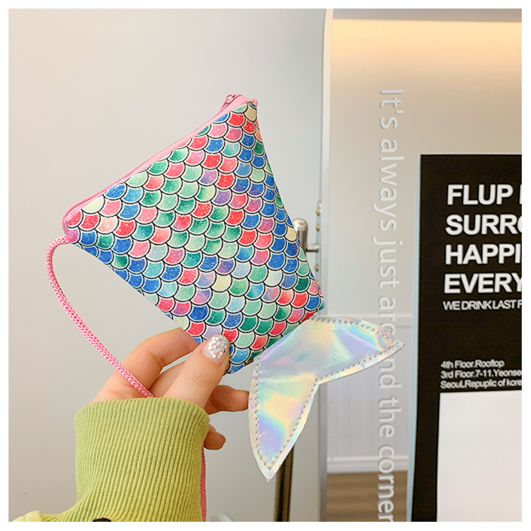 도매 어린이 가방 새로운 귀여운 인어 낚시 꼬리 모양 소녀 작은 가방 다채로운 소녀 물고기 스케일 동전 지갑스토어 가기