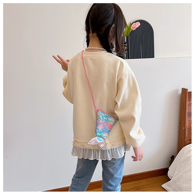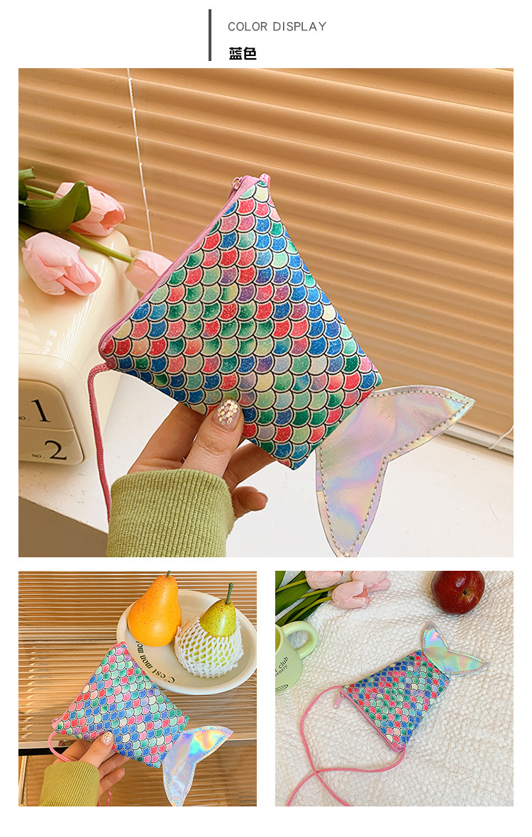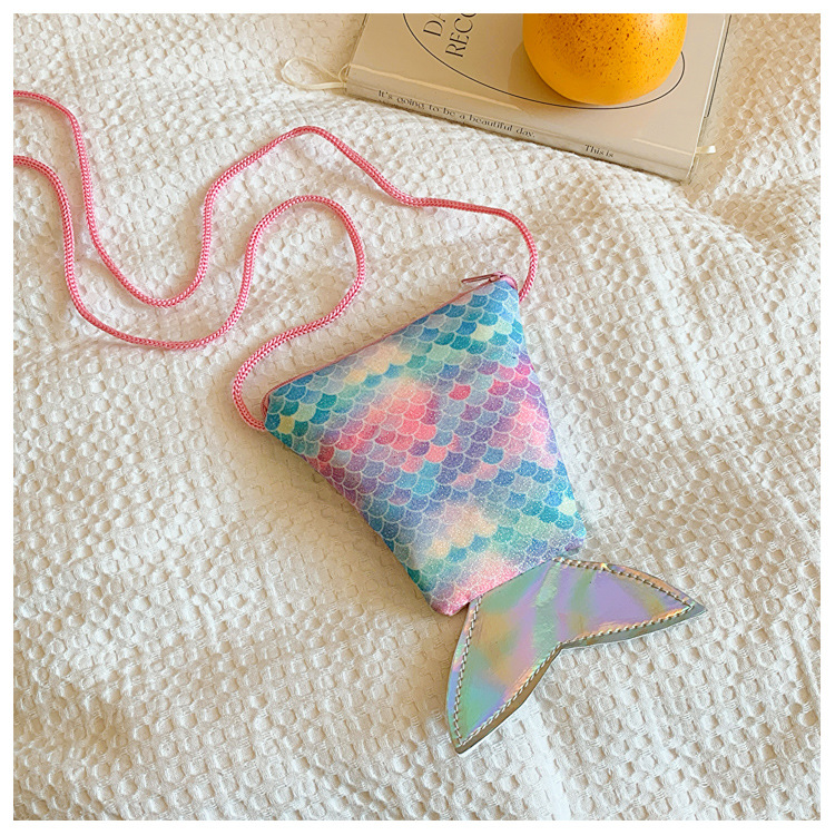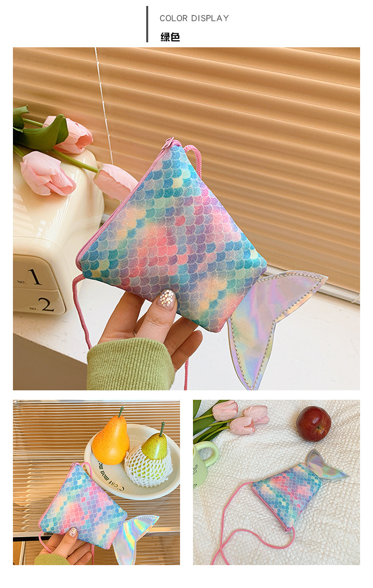 도매 어린이 가방 새로운 귀여운 인어 낚시 꼬리 모양 소녀 작은 가방 다채로운 소녀 물고기 스케일 동전 지갑스토어 가기