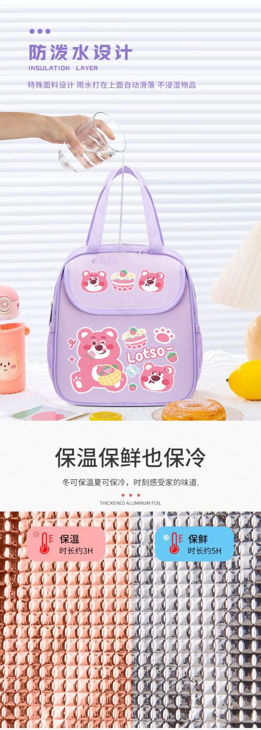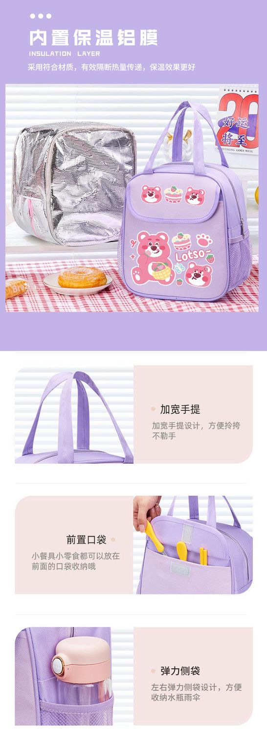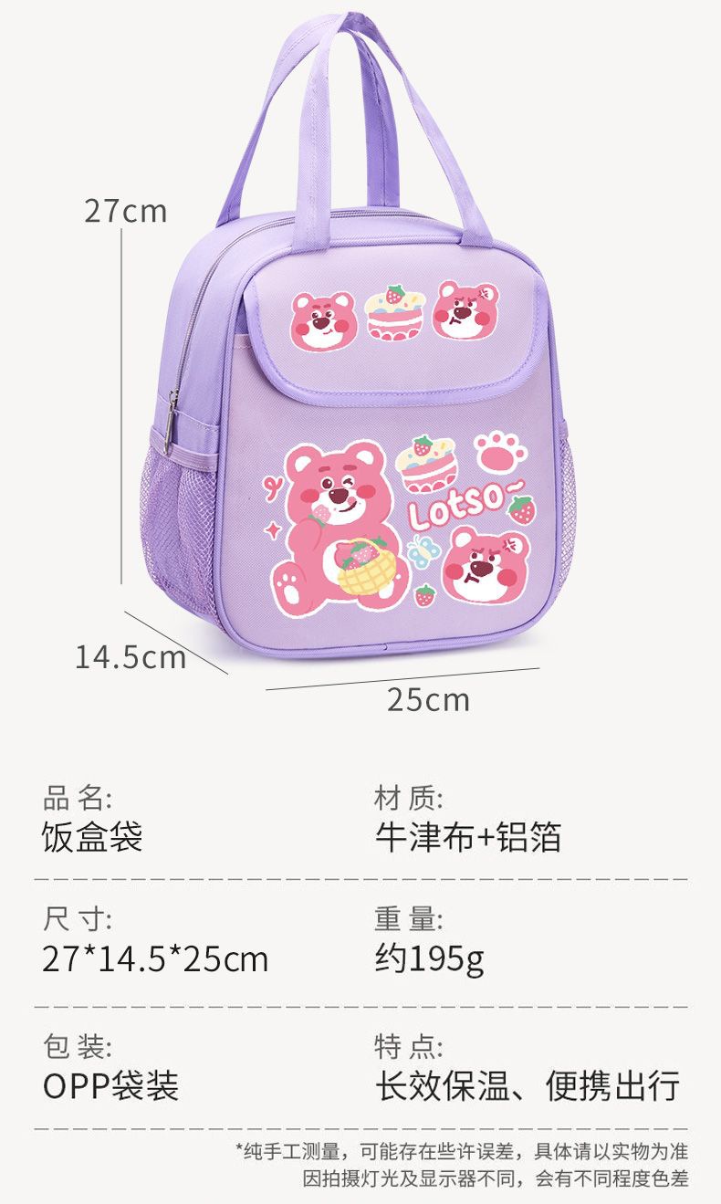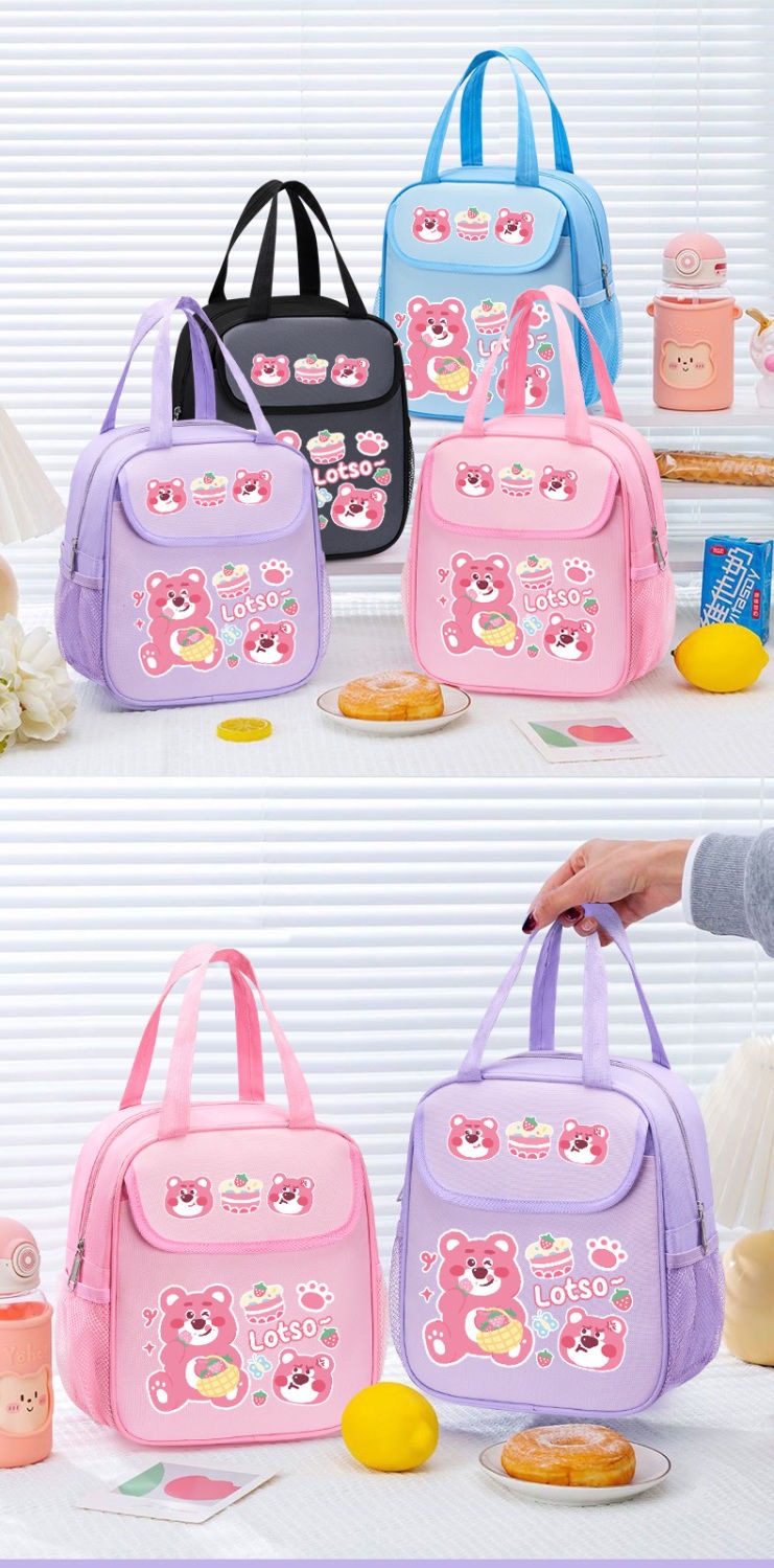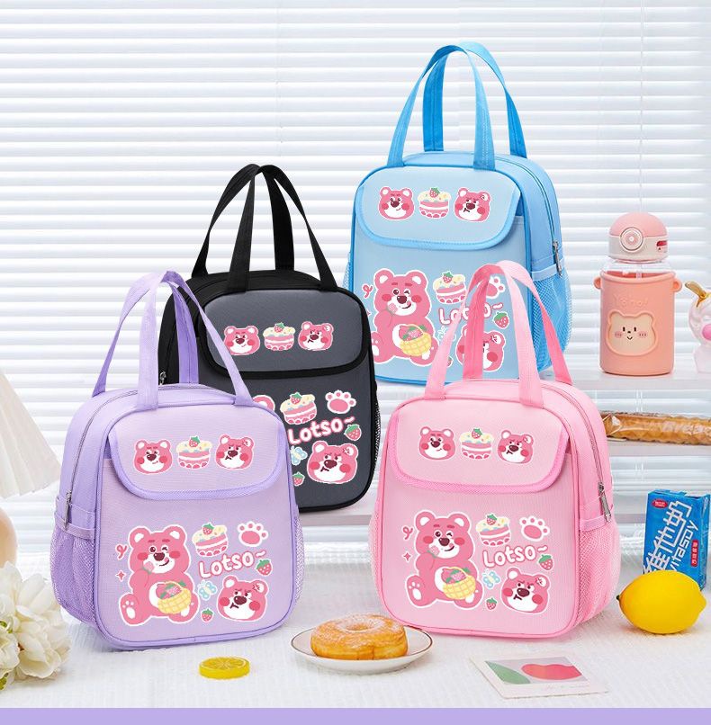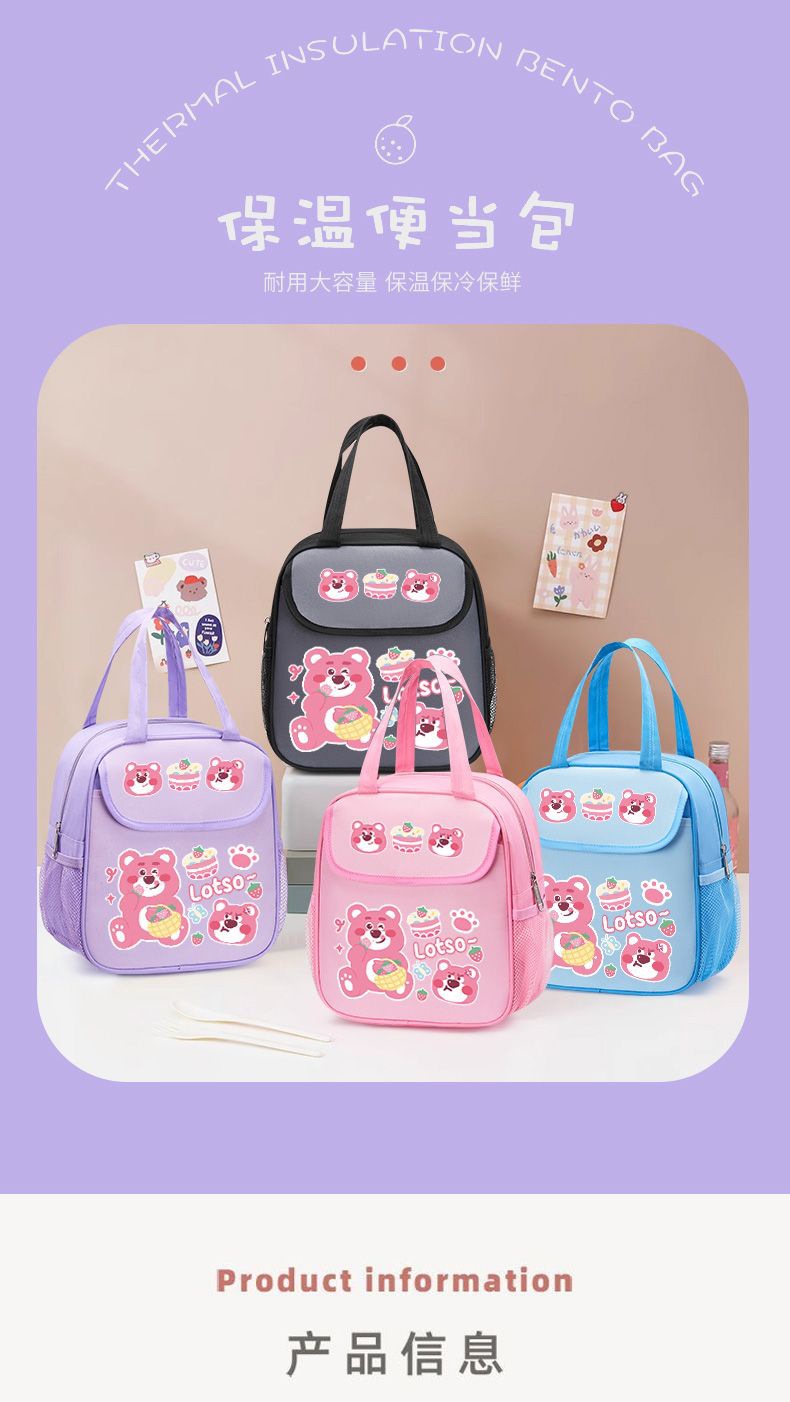 점심 상자 가방 딸기 곰 점심 가방 학생 귀여운 쌀 절연 가방 두꺼운 휴대용 어린이 알루미늄 호일 대용량스토어 가기