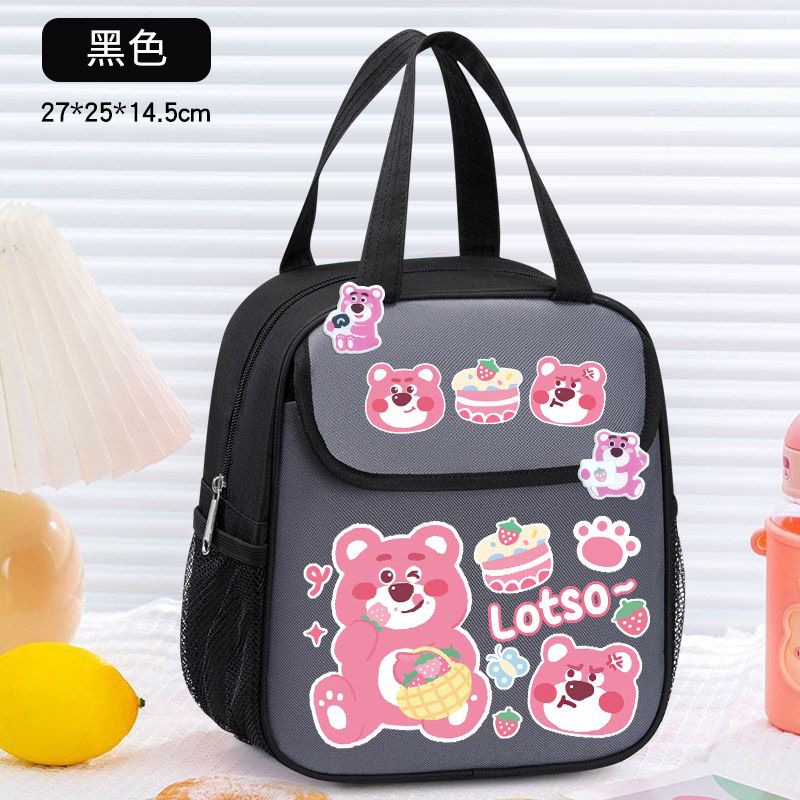 점심 상자 가방 딸기 곰 점심 가방 학생 귀여운 쌀 절연 가방 두꺼운 휴대용 어린이 알루미늄 호일 대용량