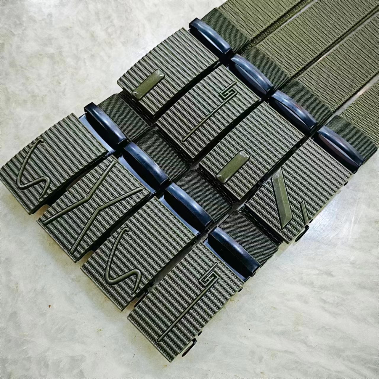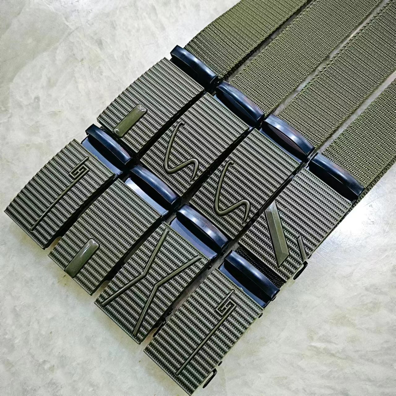 • 밀리터리 그린 벨트 스트립 + 버클 혼합 랜덤, 루프 없음
