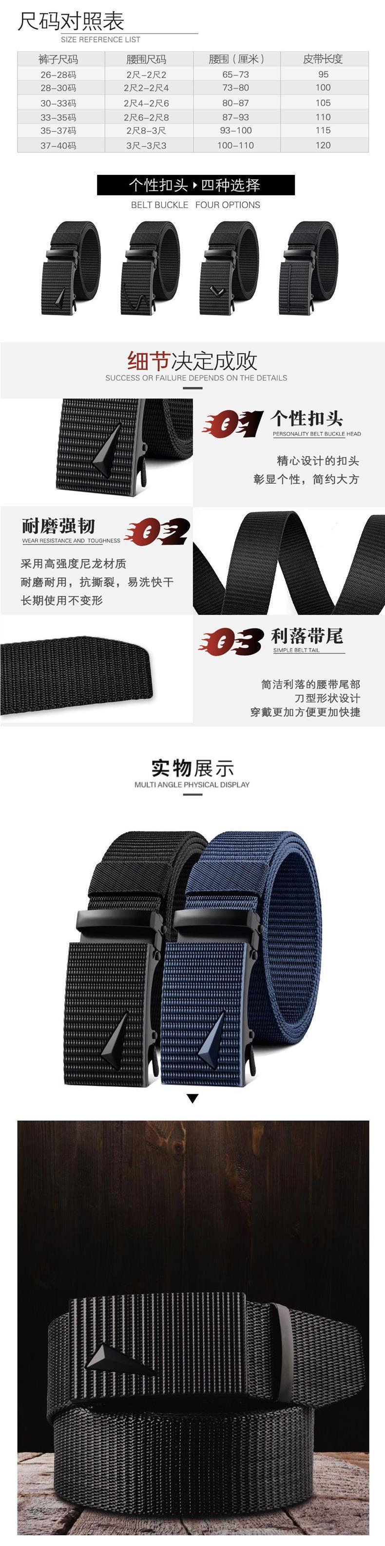 새로운 유행 한국 스타일 나일론 벨트 남자의 자동 버클 야외 캔버스 벨트 남자의 군사 훈련 청바지 벨트