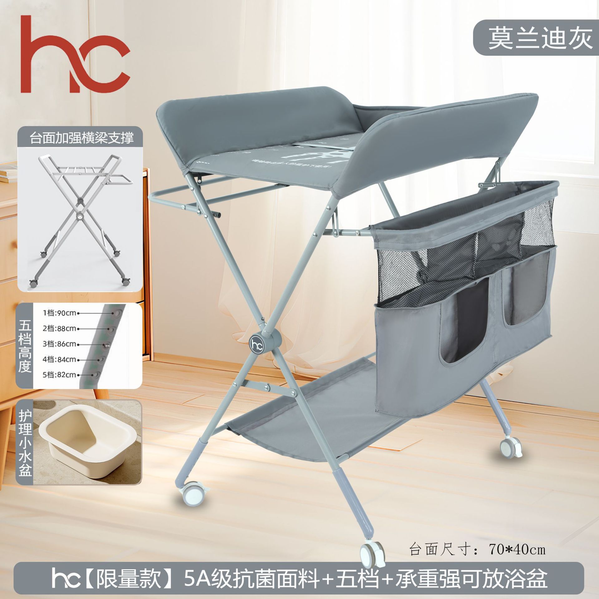 • 모란디 그레이 [플래그십 모델 + 5단 조절] 범용 휠 + 원클릭 폴딩 + 5A 항균