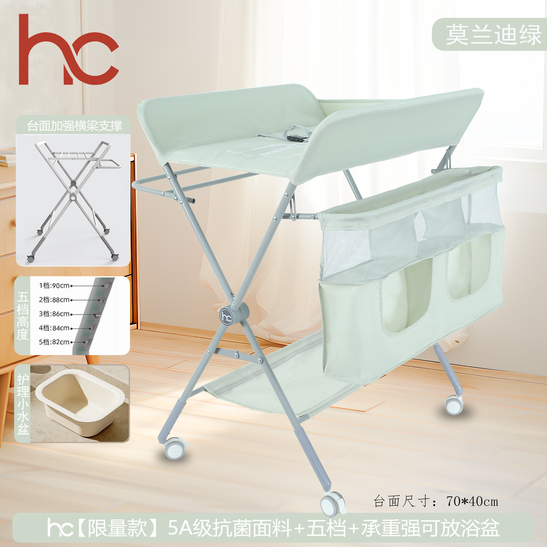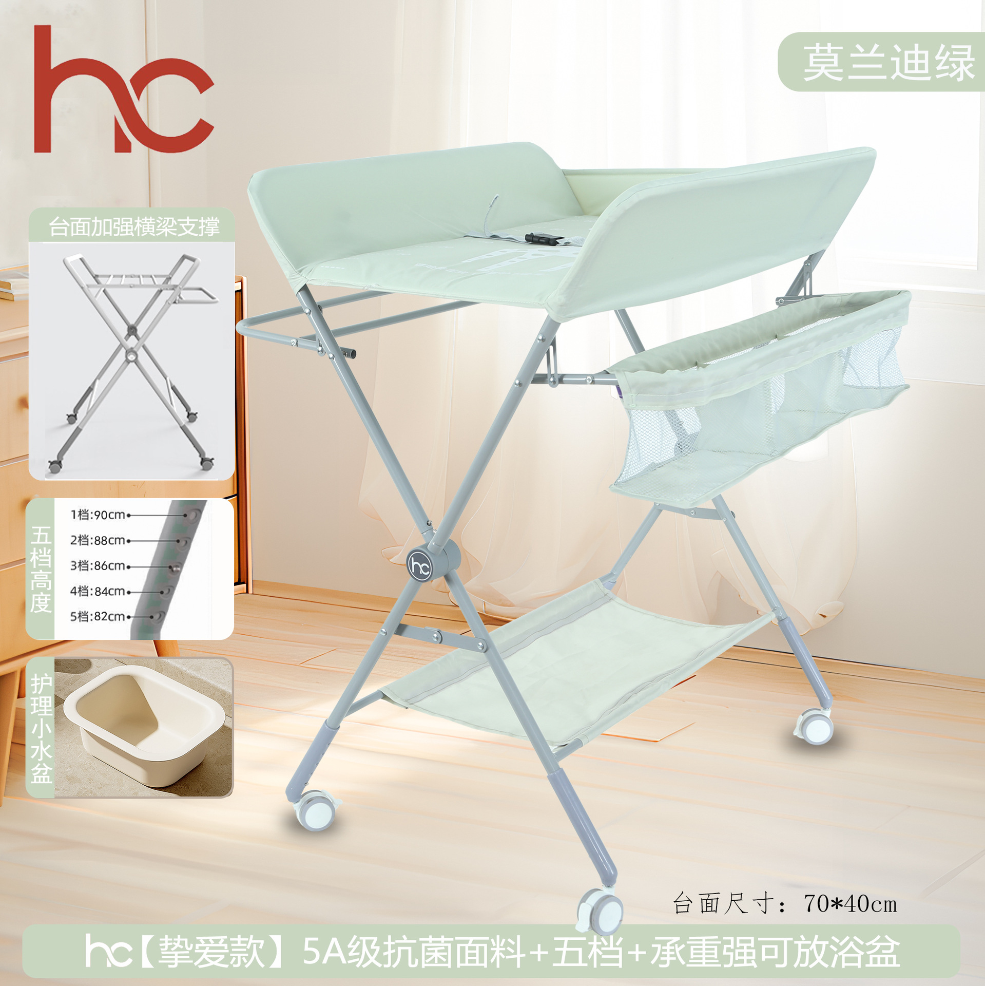 • 모란디 그린 [플래그십 모델 + 5단 조절] 범용 휠 + 원클릭 폴딩 + 5A 항균