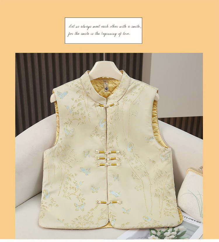 새로운 중국 자카드 조끼 여성 빛 국가 스타일 빈티지 버클 탕 코트 조끼 가을 및 겨울 코튼 국가 패션 조끼