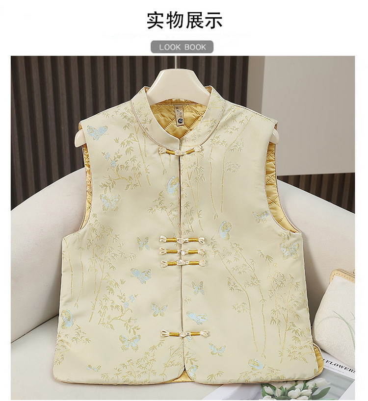새로운 중국 자카드 조끼 여성 빛 국가 스타일 빈티지 버클 탕 코트 조끼 가을 및 겨울 코튼 국가 패션 조끼스토어 가기