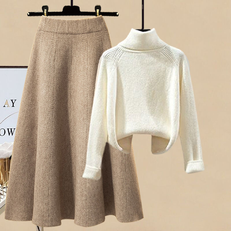 플러스 사이즈 여성의 가을과 겨울 세트 여성의 2024 새로운 패션 디자인 센스 니트 스웨터 스커트 2 피스 세트 트렌디스토어 가기
