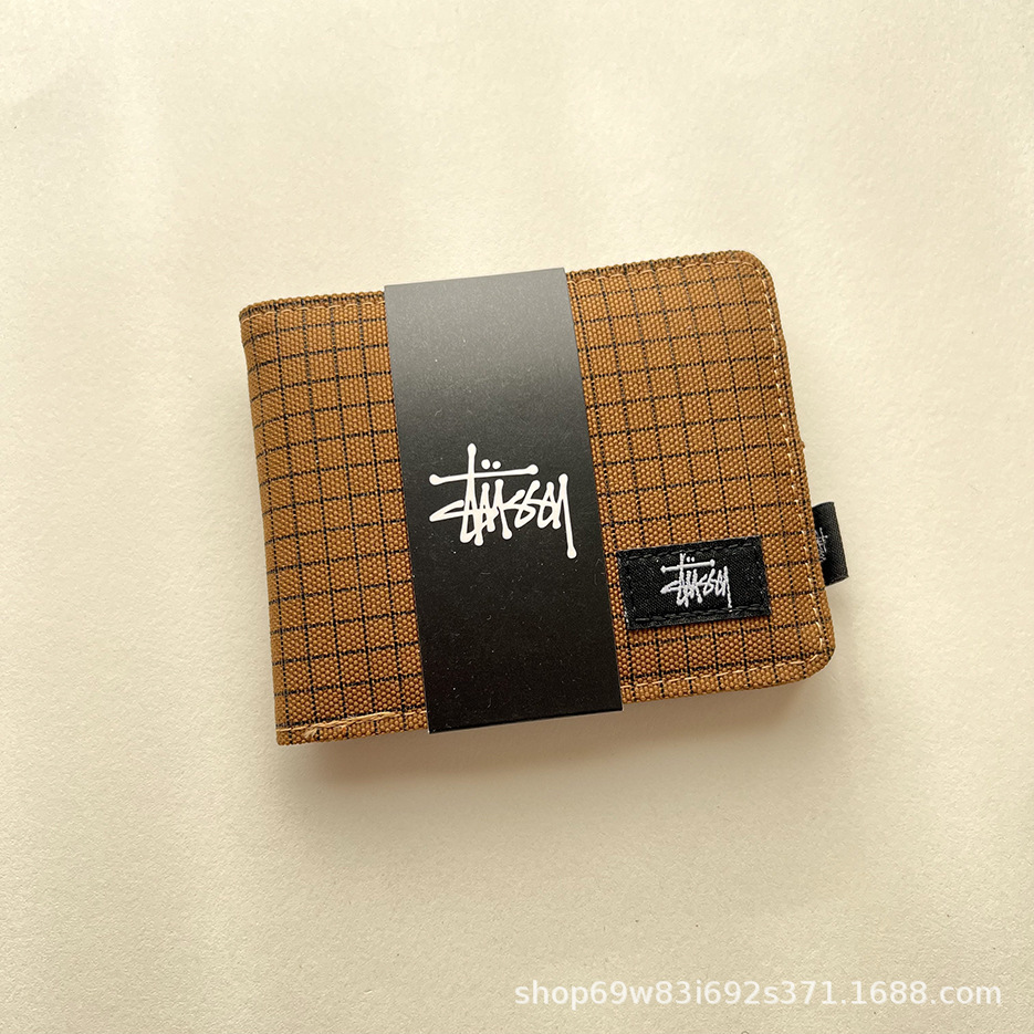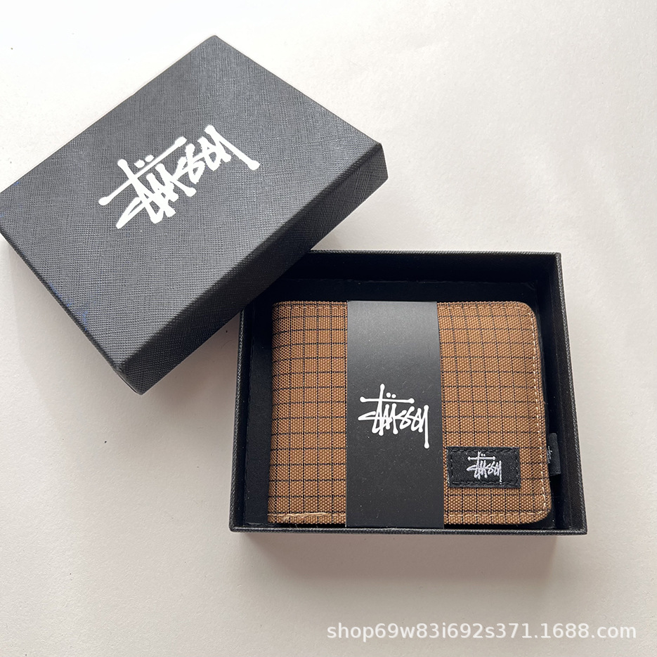 • Xitu 짧은 지갑 체크 무늬 브라운 플러스 박스