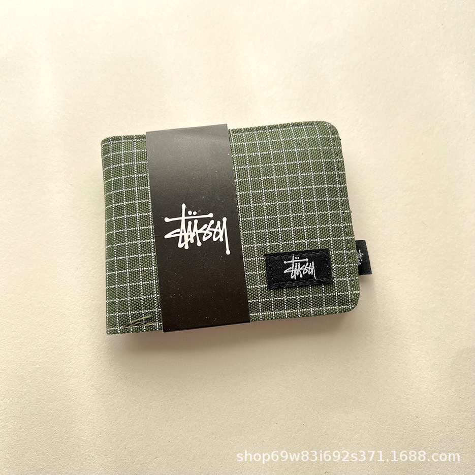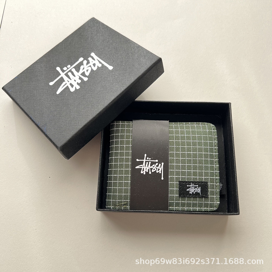 • Xitu 짧은 지갑 격자 무늬 녹색 플러스 박스
