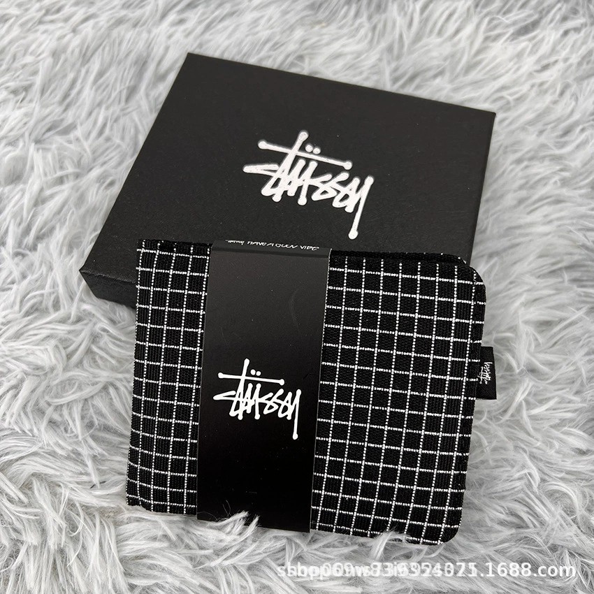 • Xitu 짧은 지갑 체크 무늬 블랙 플러스 박스