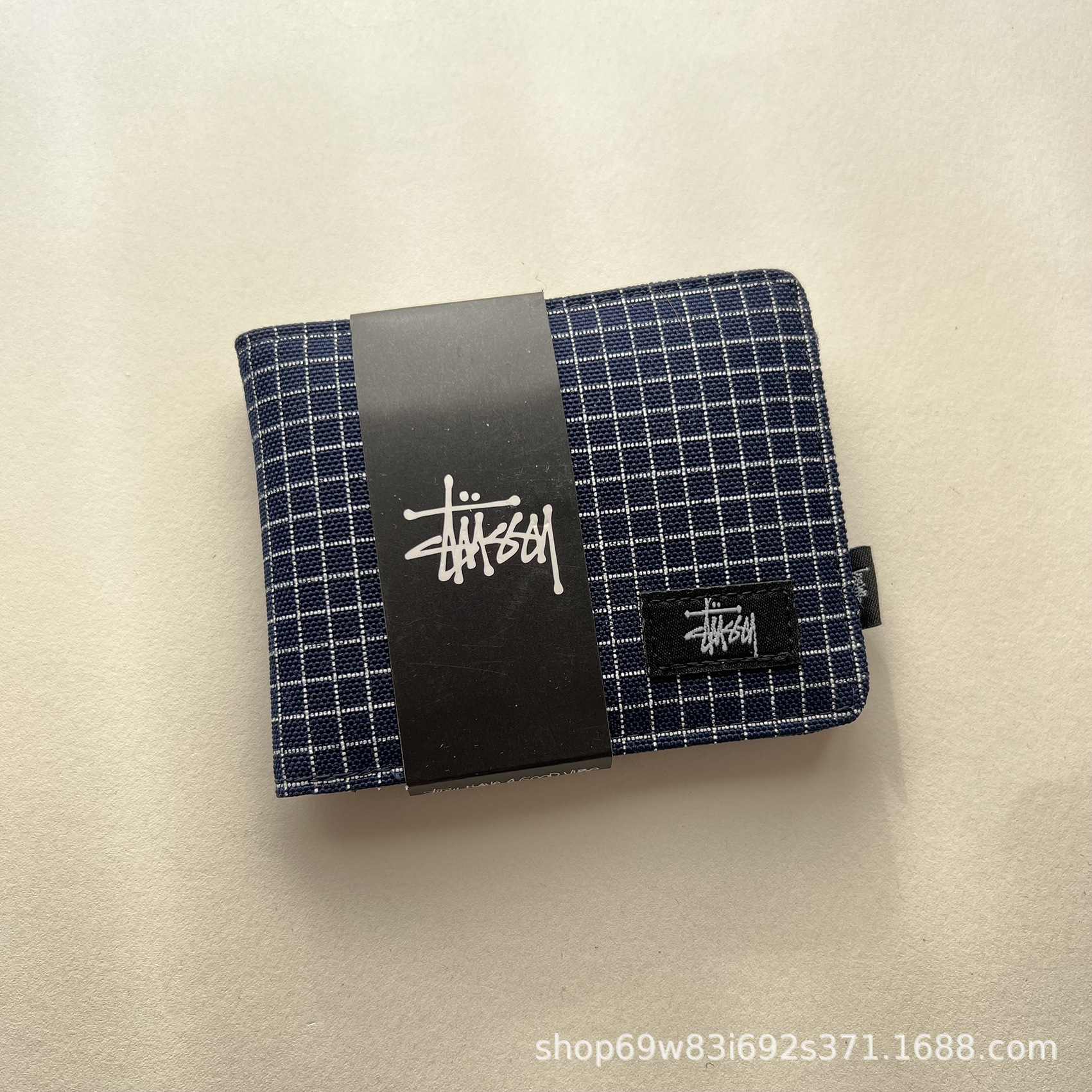 • Xitu 짧은 지갑 체크 무늬 블루 플러스 박스