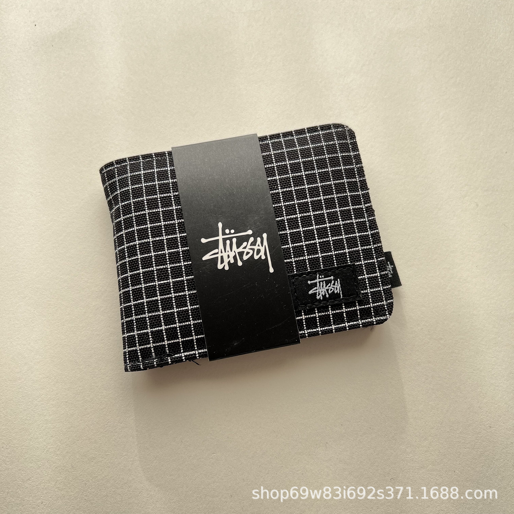 • Xitu 짧은 지갑 체크 무늬 블랙 상자 없음