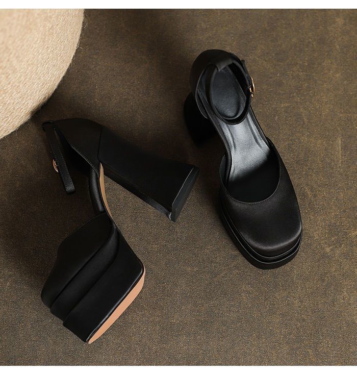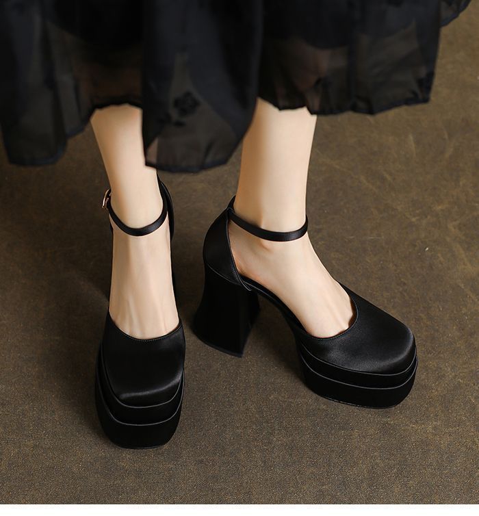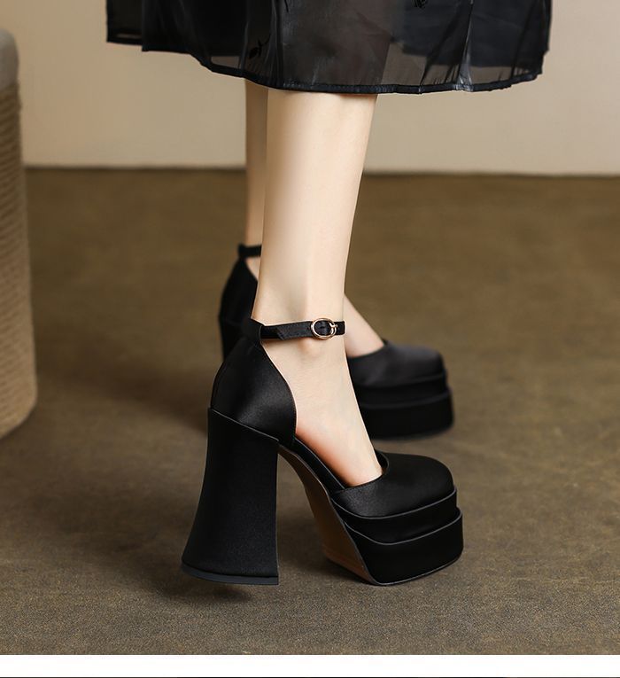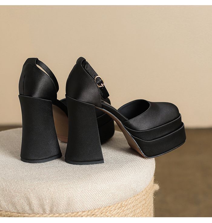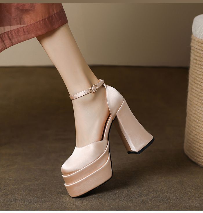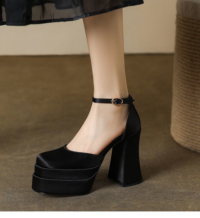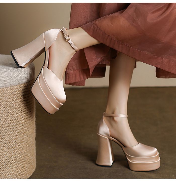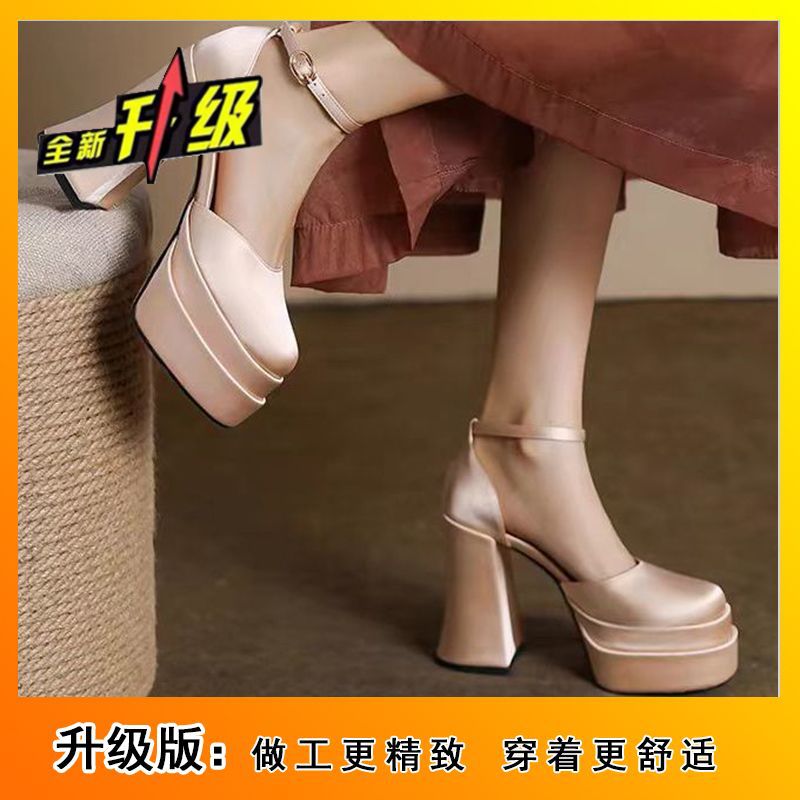 12cm 웨딩 신발 웨딩 원피스 아티팩트 작은 두꺼운 힐 플랫폼 하단 방수 플랫폼 메리 제인 하이힐 2024 가을 새로운스토어 가기
